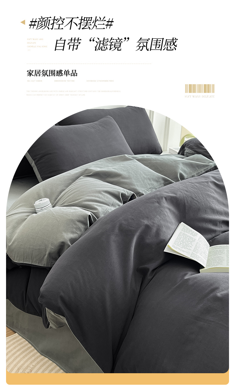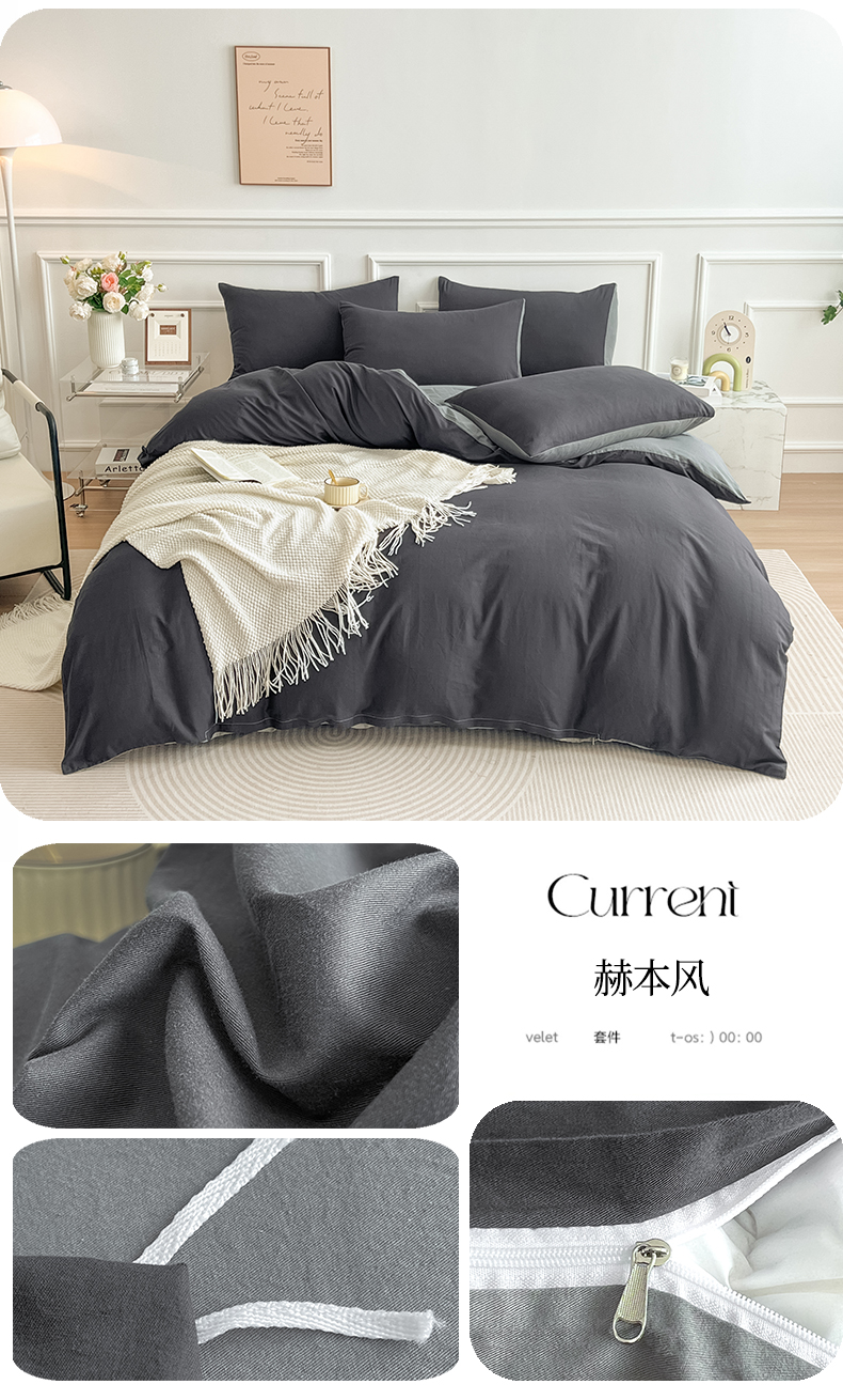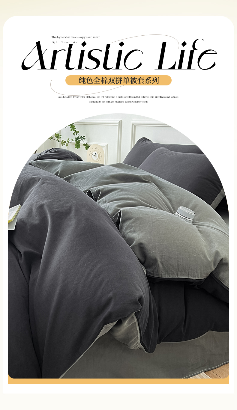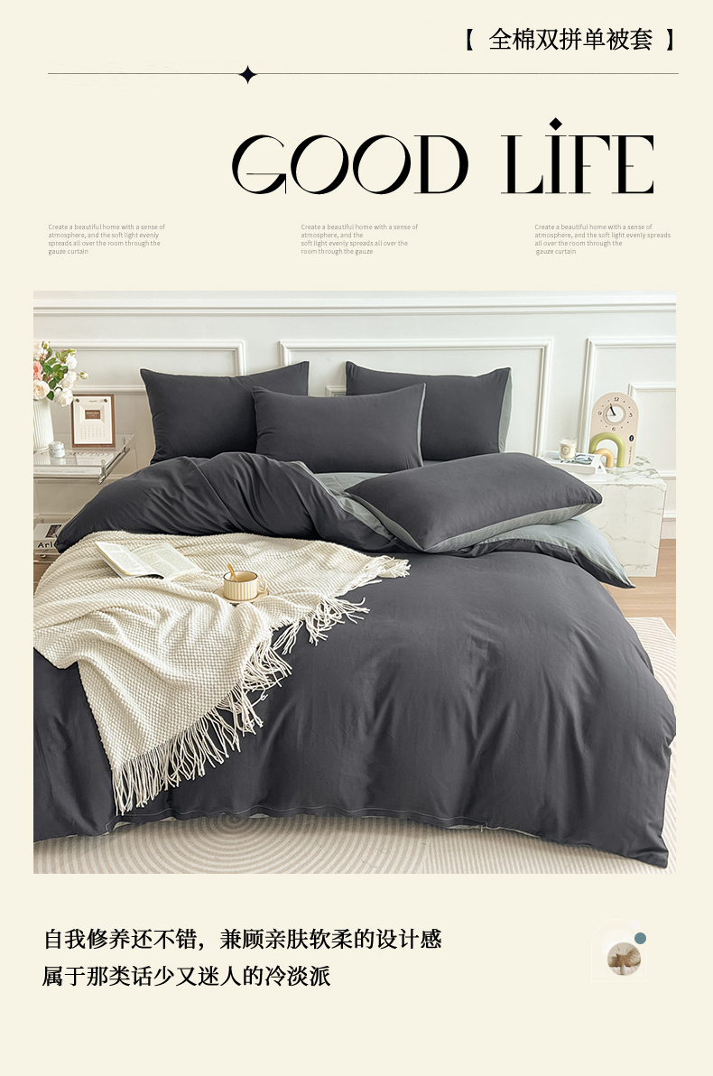 商品名称:多品家纺 2024新款日式无印风纯色双拼全棉单被套 赫本风