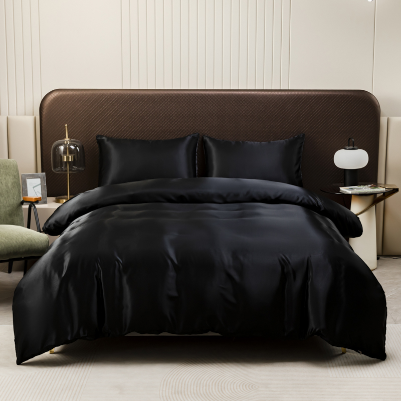 商品名称:2025款仿真丝色丁被套+枕套套装 床上用品三件套跨境外贸纯色水洗真丝爆款可定制 银灰