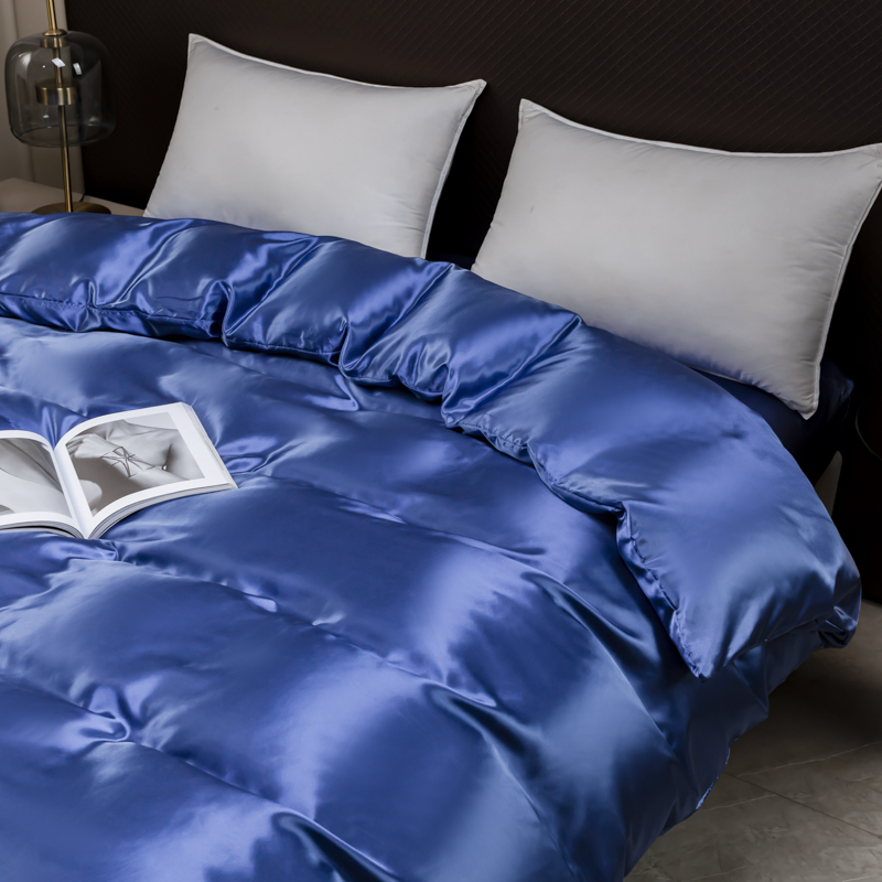 商品名称:2025款仿真丝色丁被套单件跨境外贸纯色单品被套爆款单件床上用品可定制 宝蓝