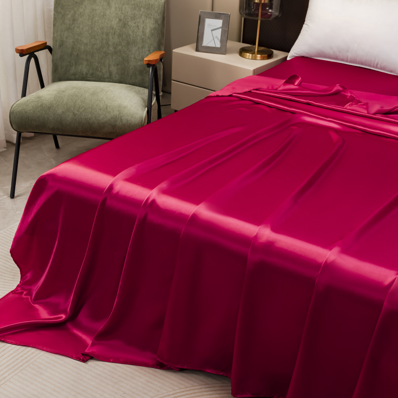 商品名称:2025款仿真丝色丁床单+枕套三件套跨境外贸纯色床单爆款床上用品 可定制 紫色