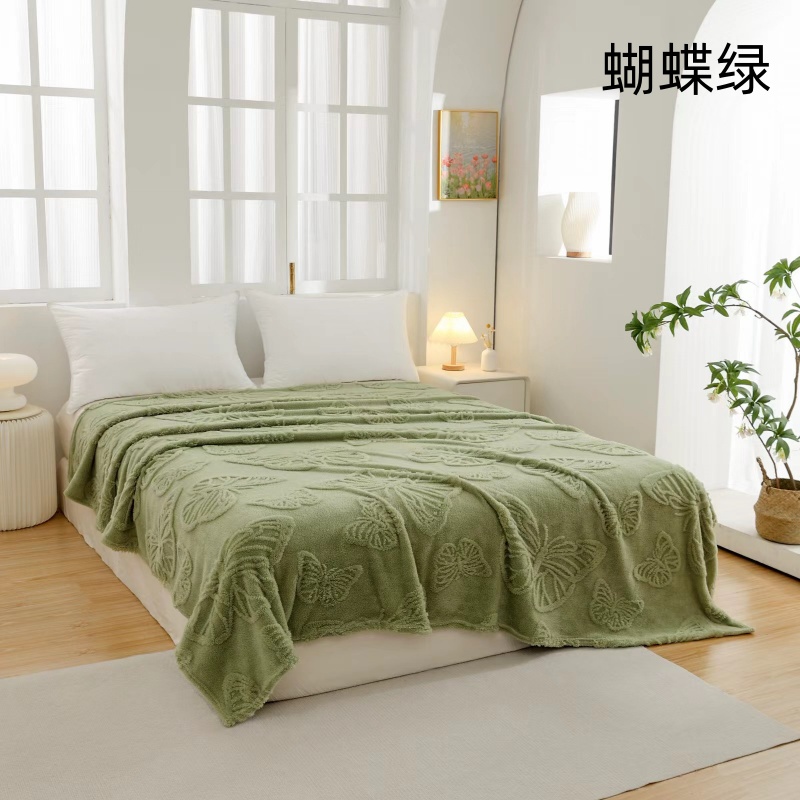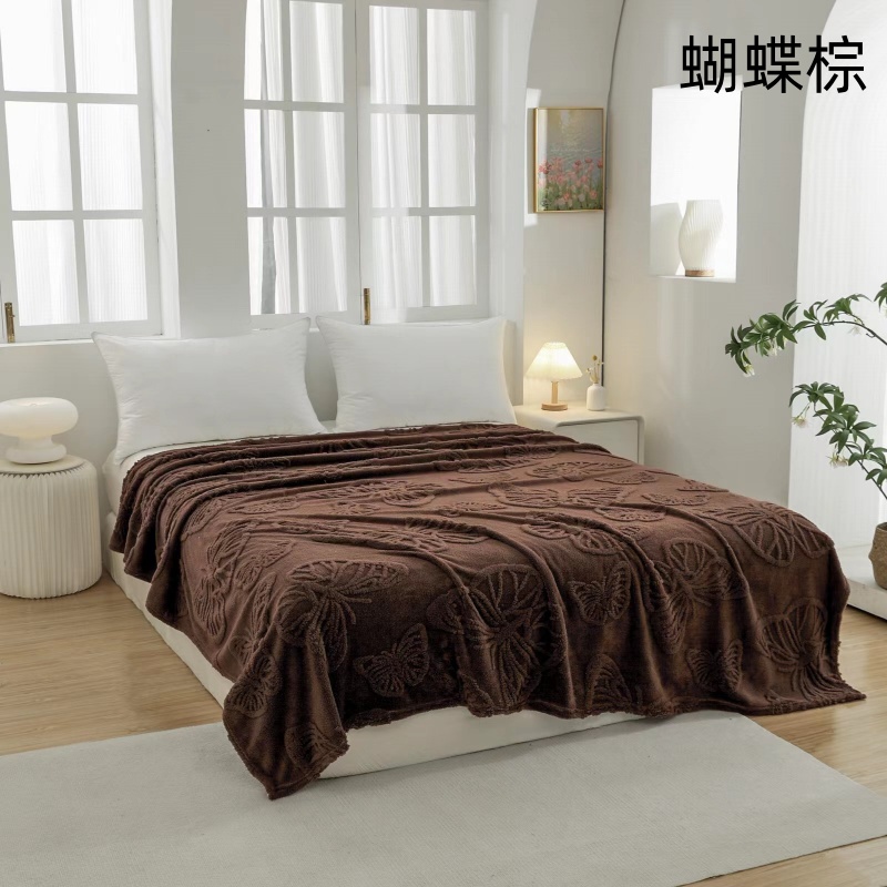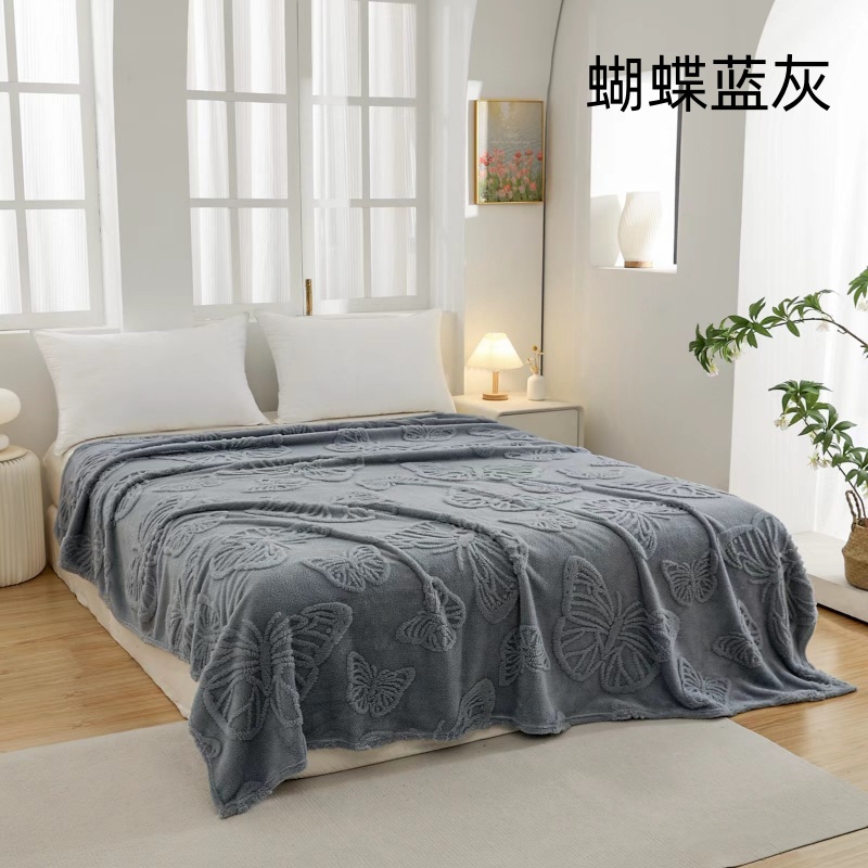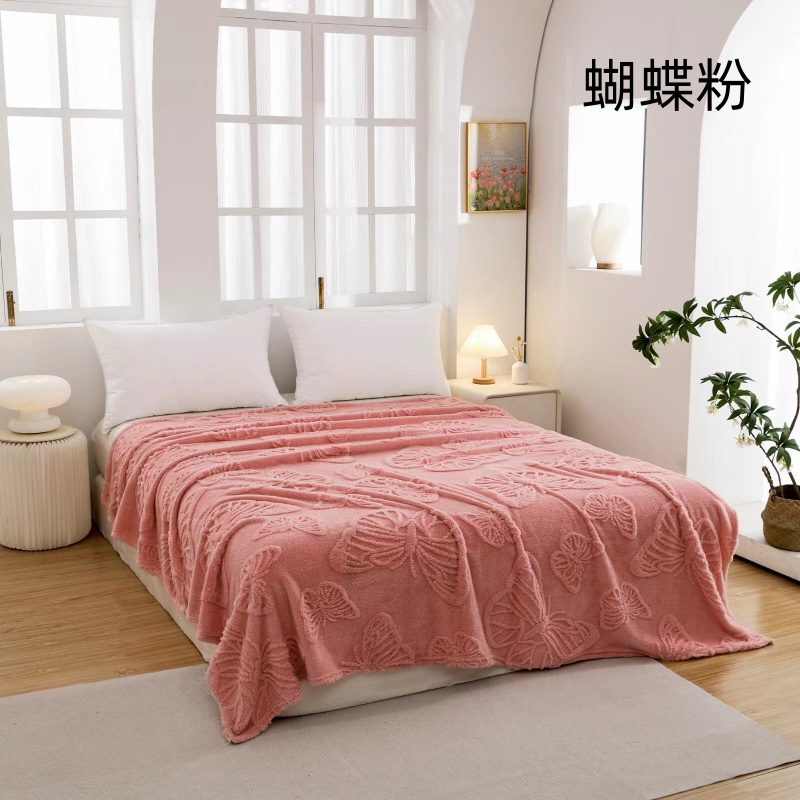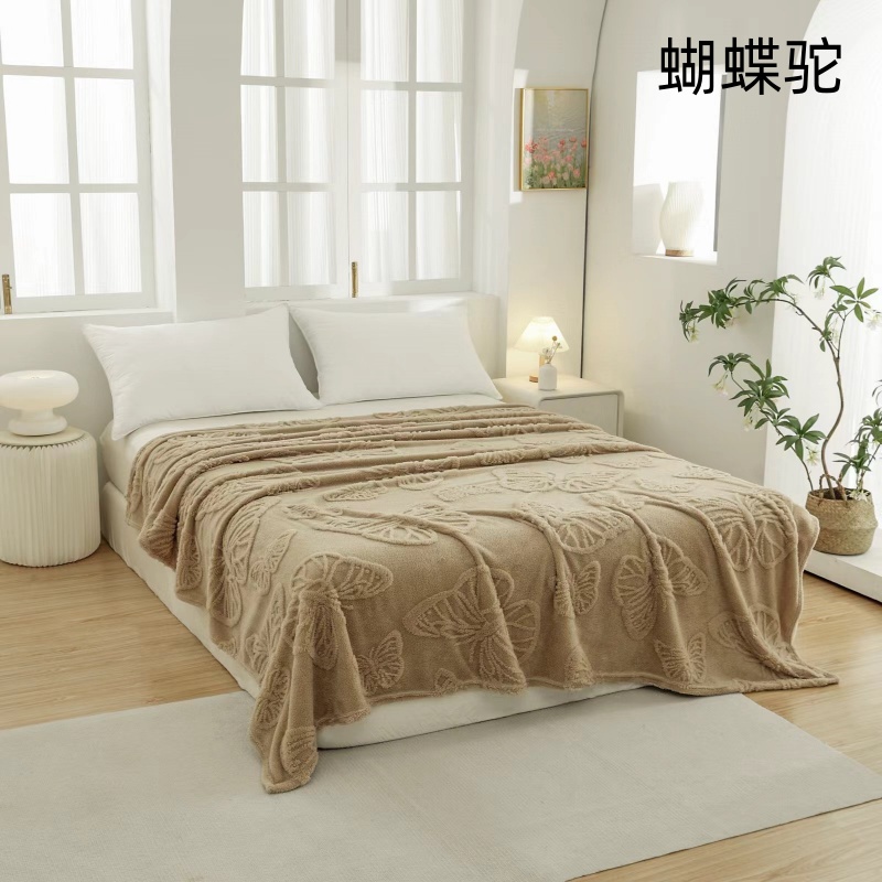商品名称:(总)羋多 2024新款跨境舒棉绒纯色提花多功能盖毯毛毯提花蝴蝶款