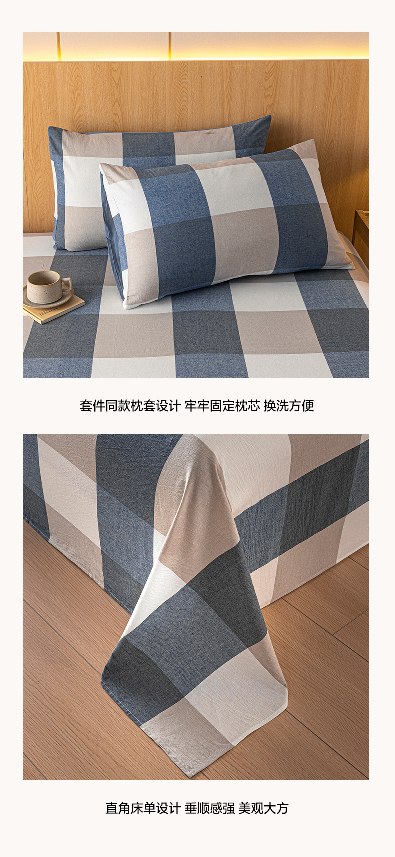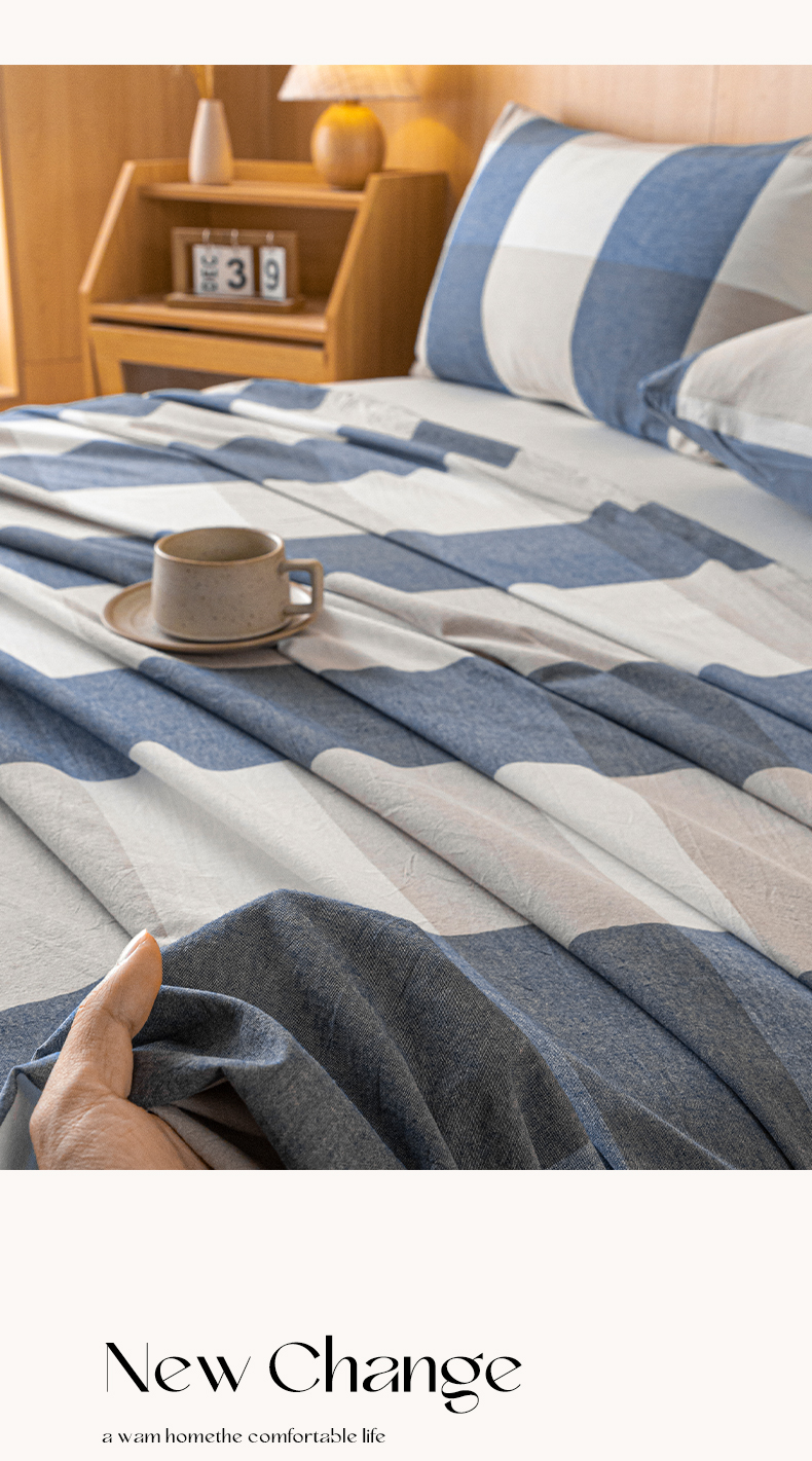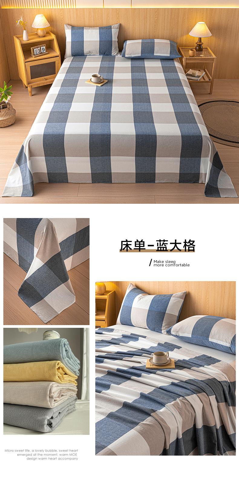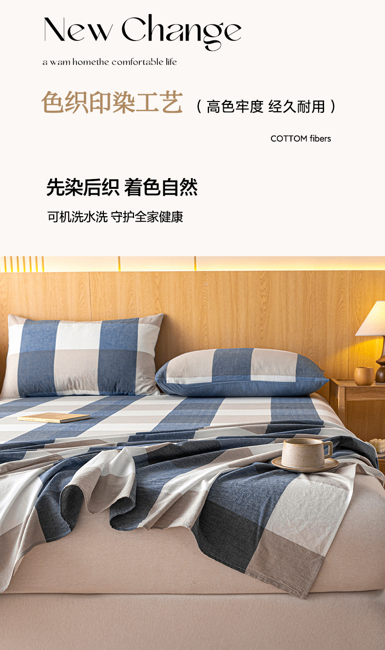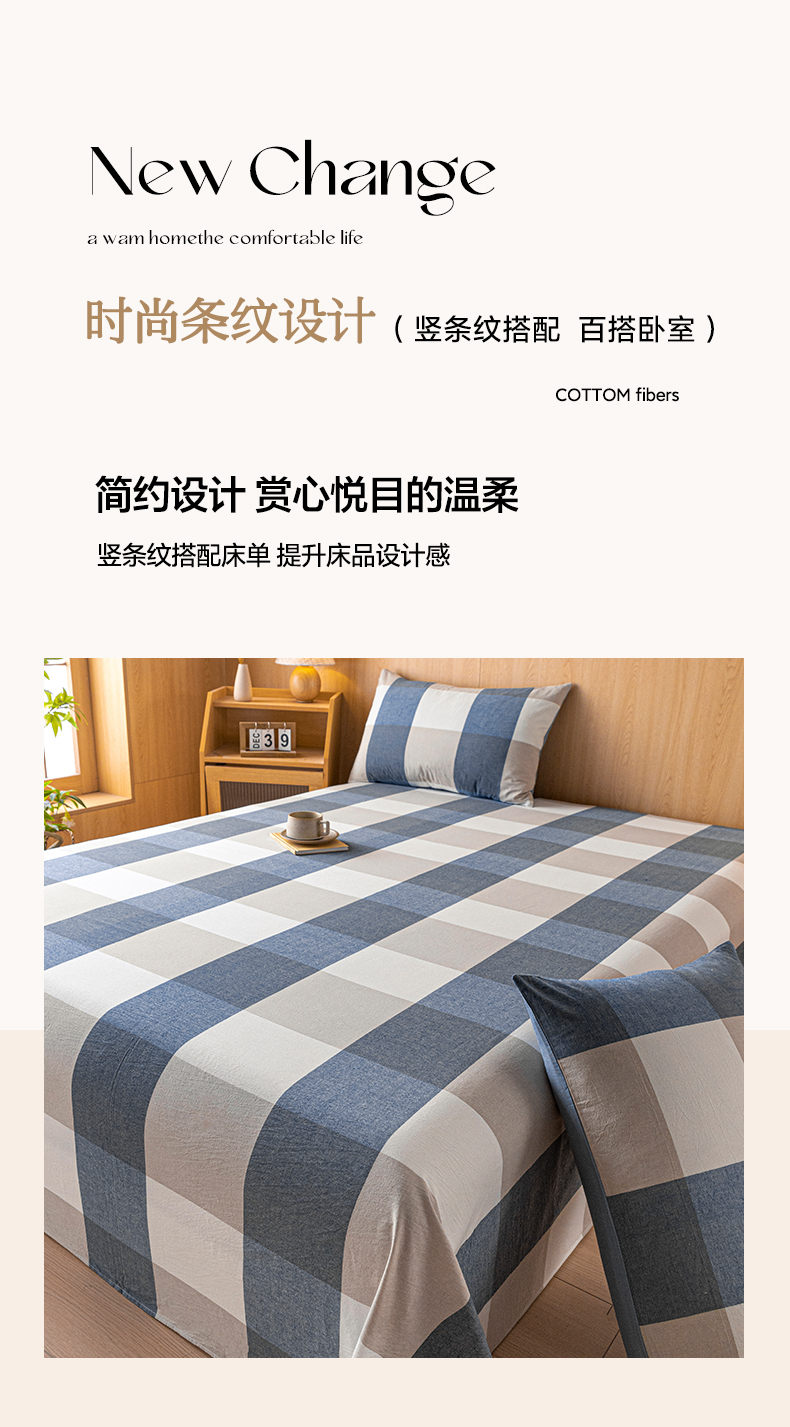 商品名称:雅居纺家纺 2024新款全棉色织水洗棉单床单 床单-蓝大格