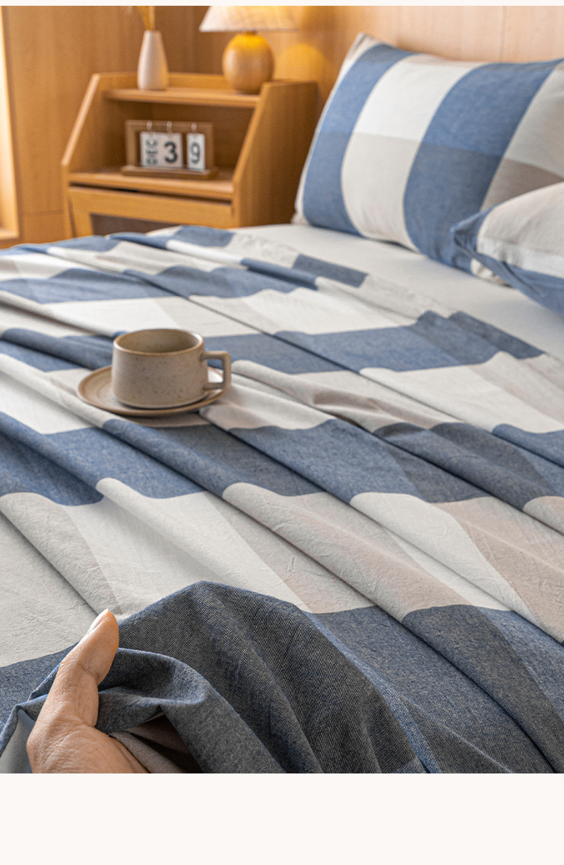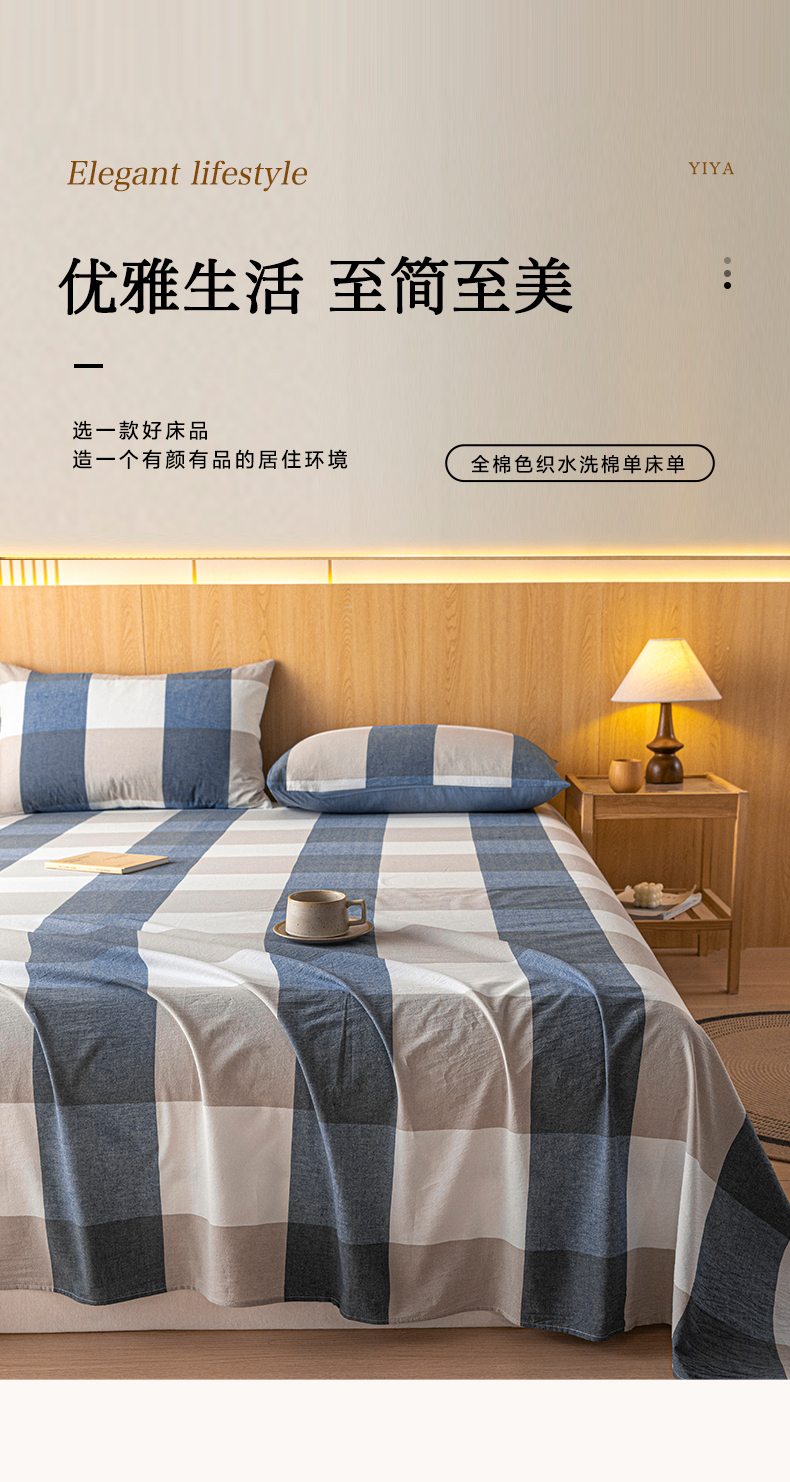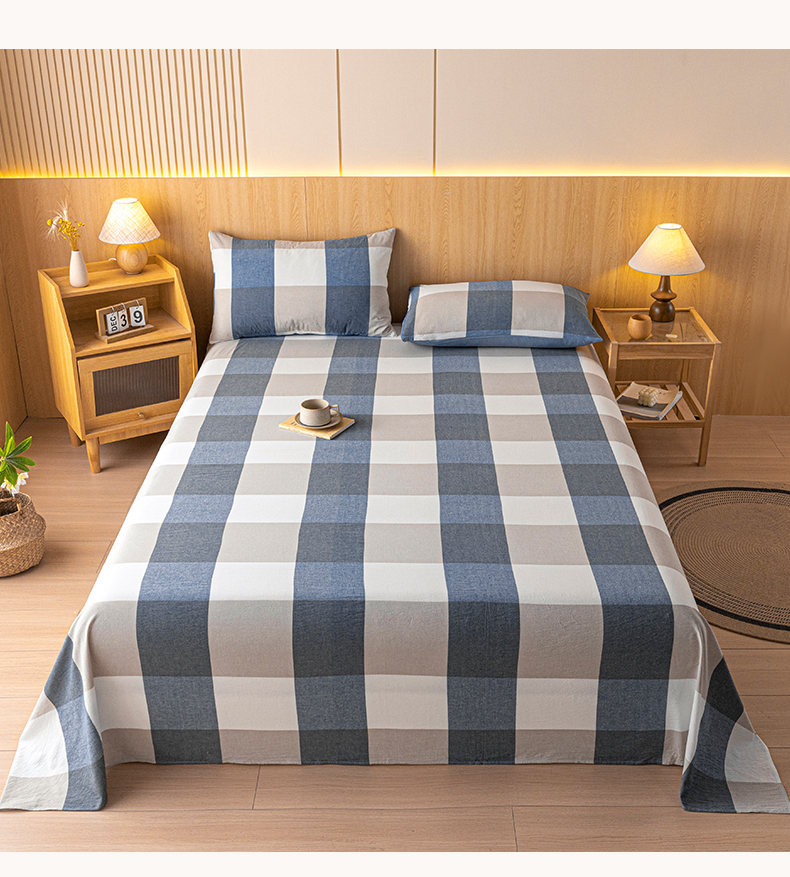 雅居纺家纺 2024新款全棉色织水洗棉单床单 床单-蓝大格