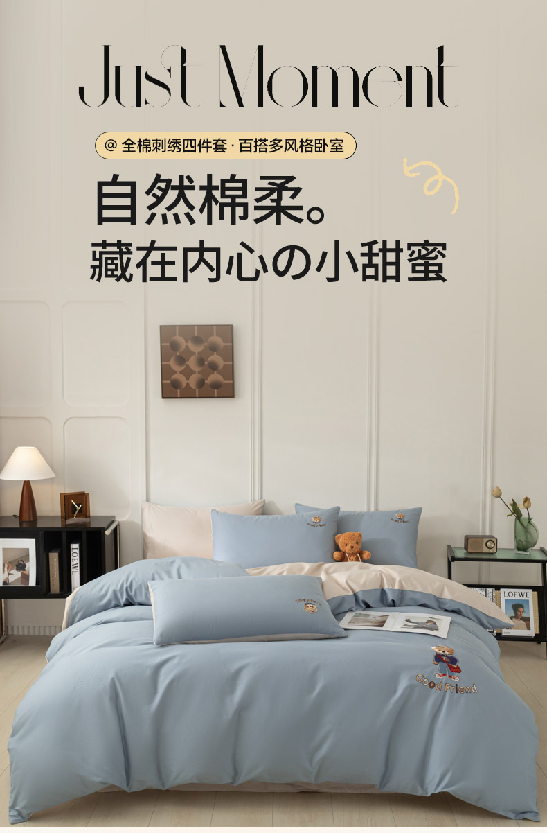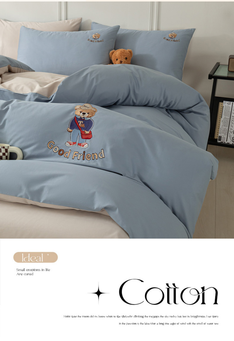 当前位置: 91家纺网 > 商品网购 > 床品套件 > 四件套 > 全棉活性四件套 > 万盛家纺 2025新款全棉喷气13372刺绣卡通四件套 fashion熊-深蓝咖