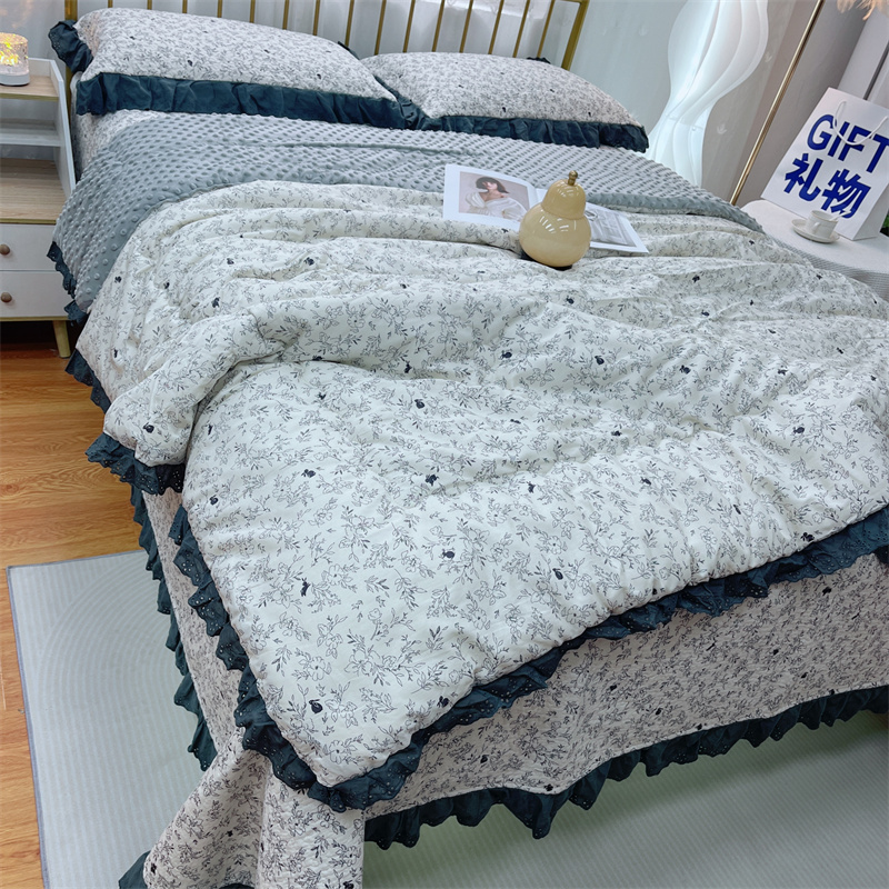 (总)暖居 2026新款一面纯棉一面绒床盖+同款纯棉豆豆被跑量,兰意,冰淇淋,绿芽,奶油波罗,森系绿野,疏影,樱桃密果,黑巧豹纹,小花,星月