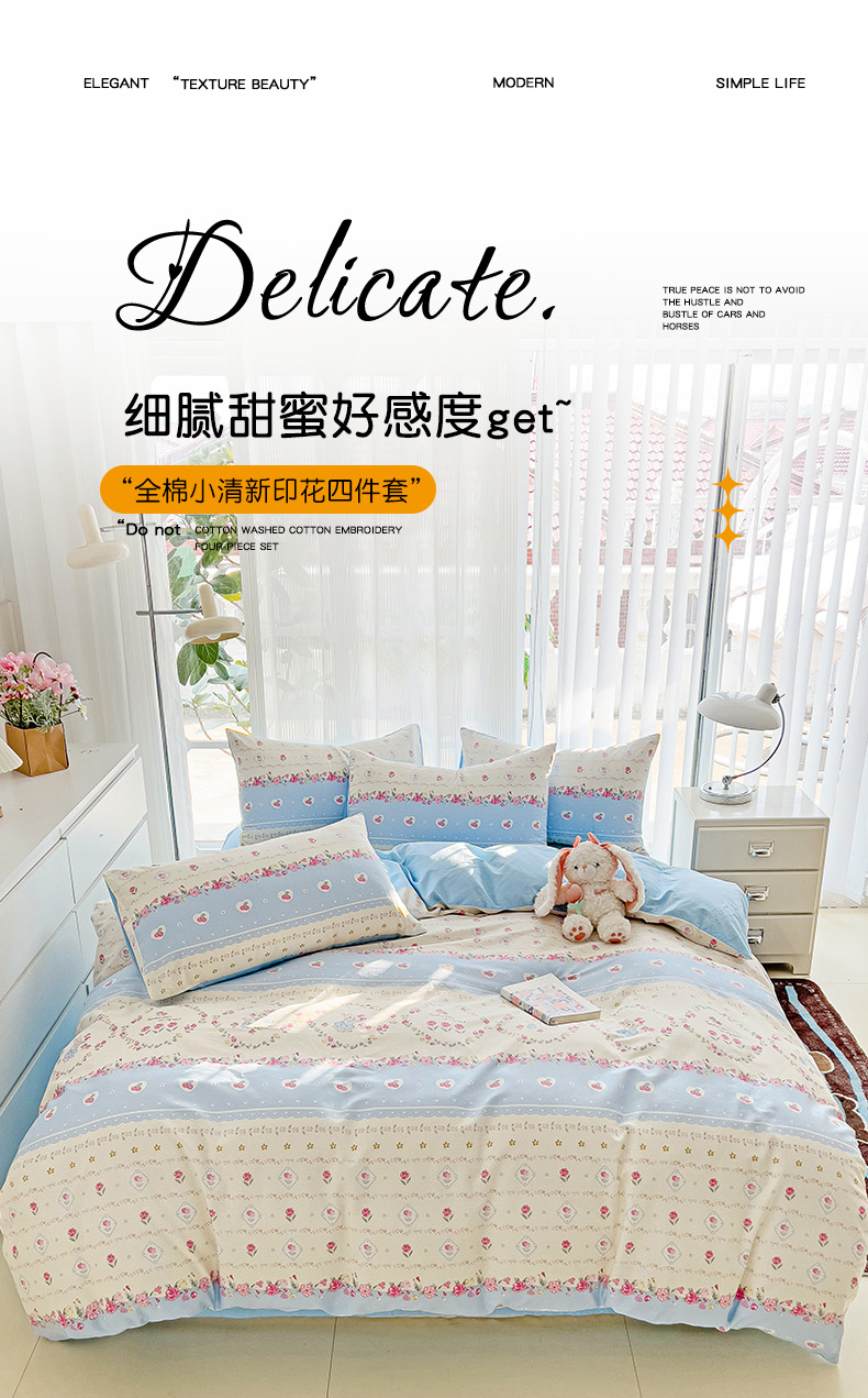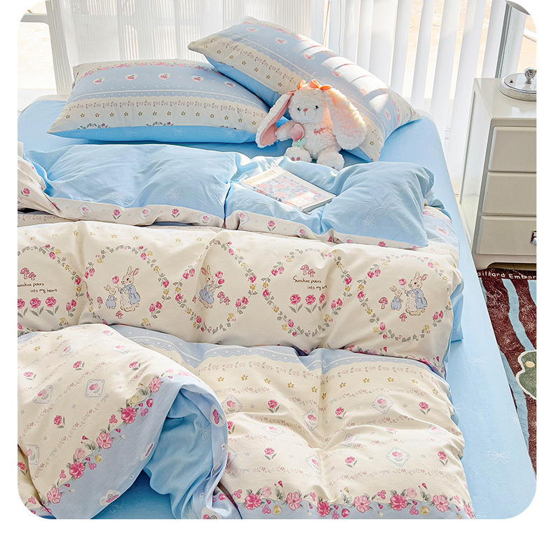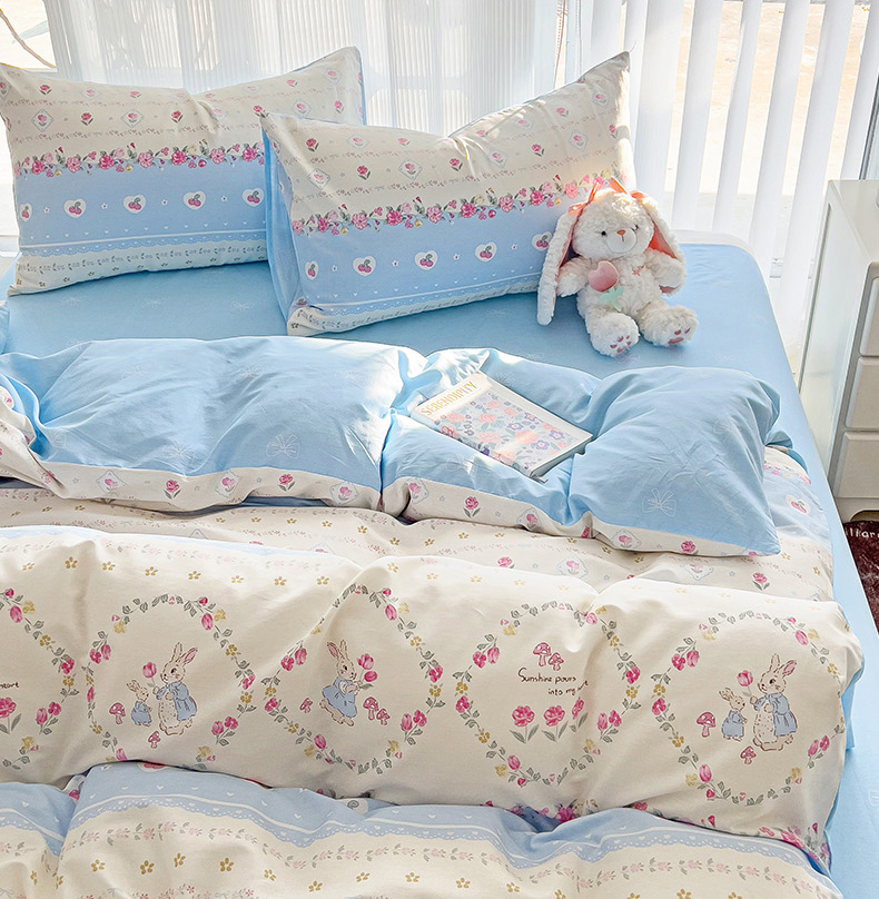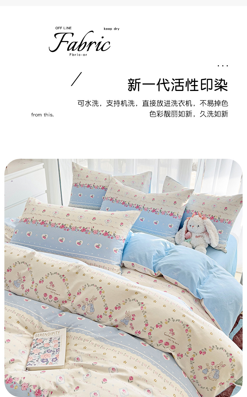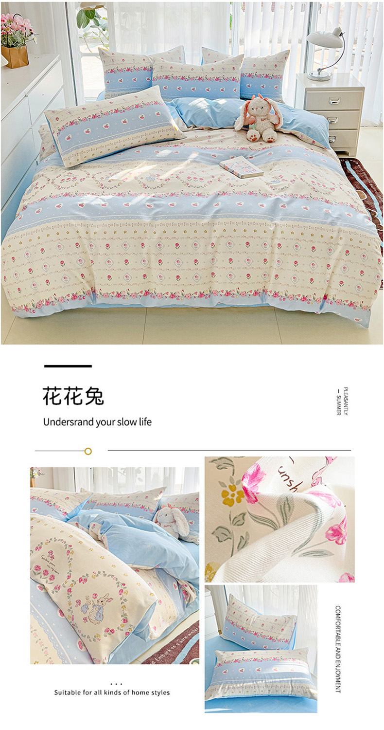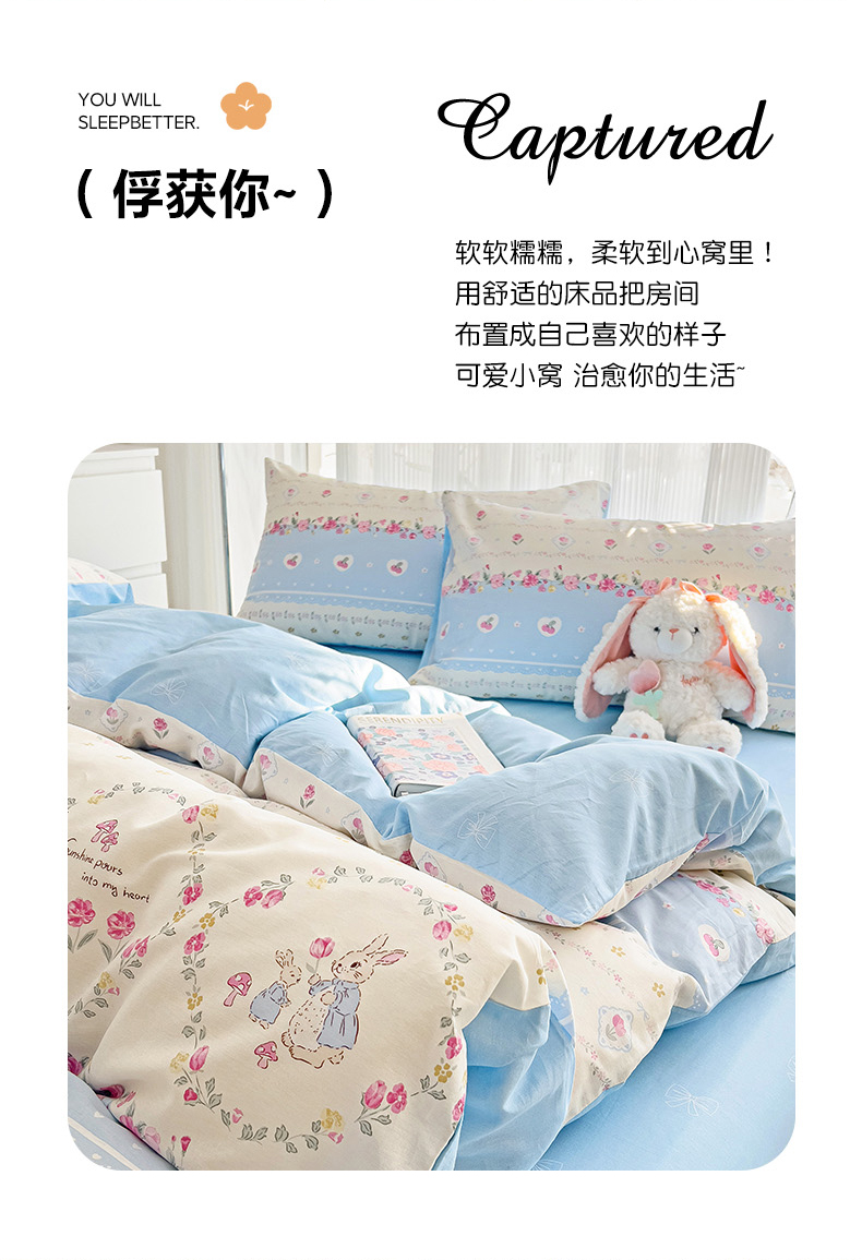 当前位置: 91家纺网 > 商品网购 > 床品套件 > 四件套 > 全棉普通四件套 > 优选良品 2025直播爆款全棉12868印花四件套纯棉学生三件套床笠 花花兔