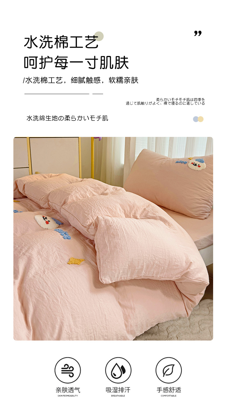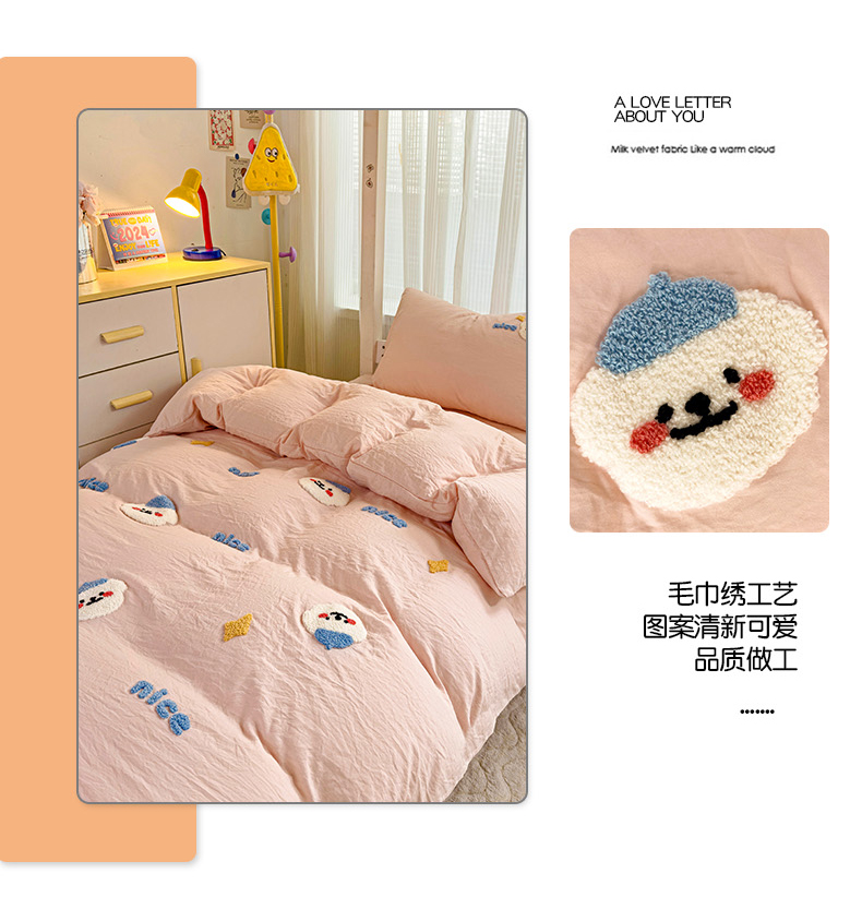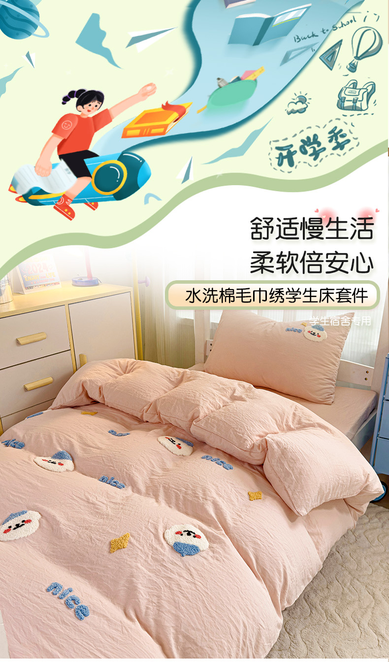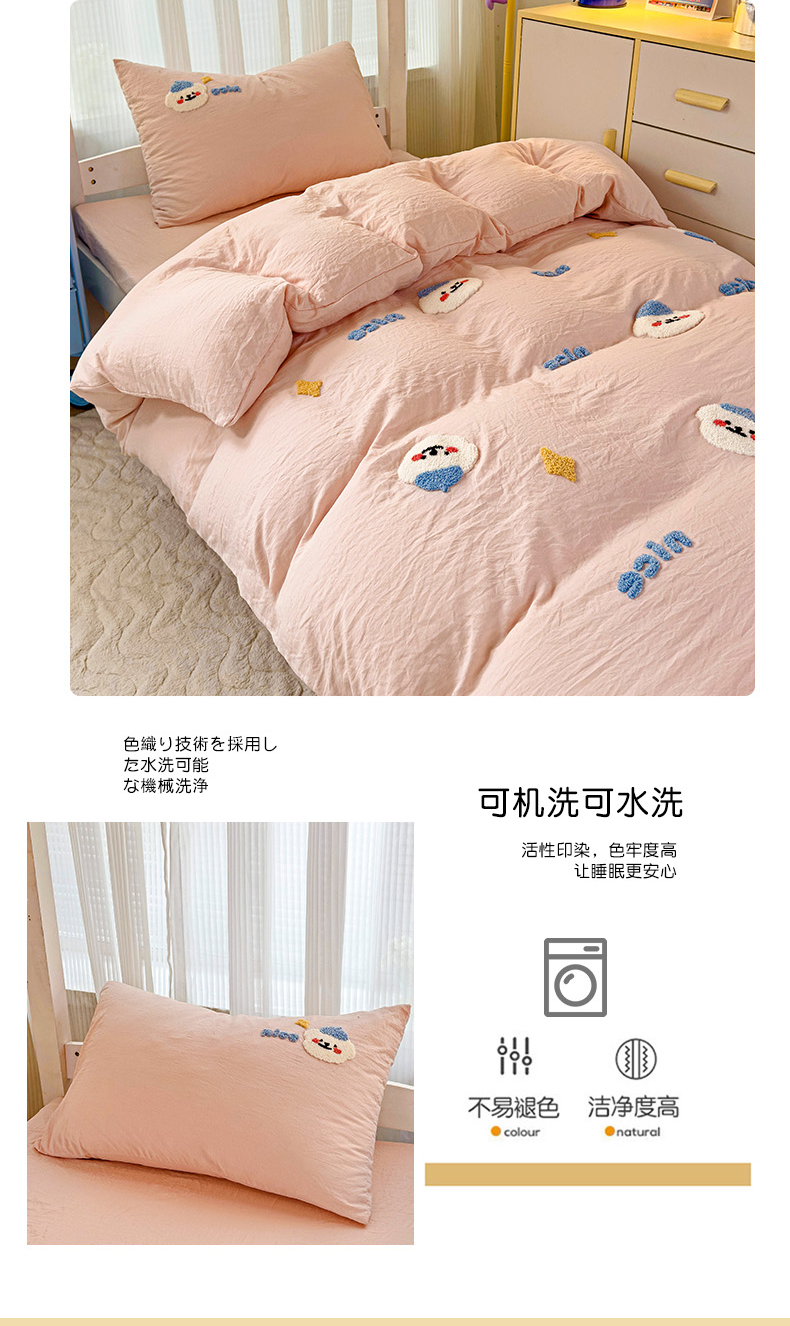当前位置: 91家纺网 > 商品网购 > 床品套件 > 三件套 > 韩巢家纺 2024新款学生宿舍寝室上下铺超柔水洗棉床单被套三件套-哈哈狗(提供卖家秀) 哈哈狗浅粉