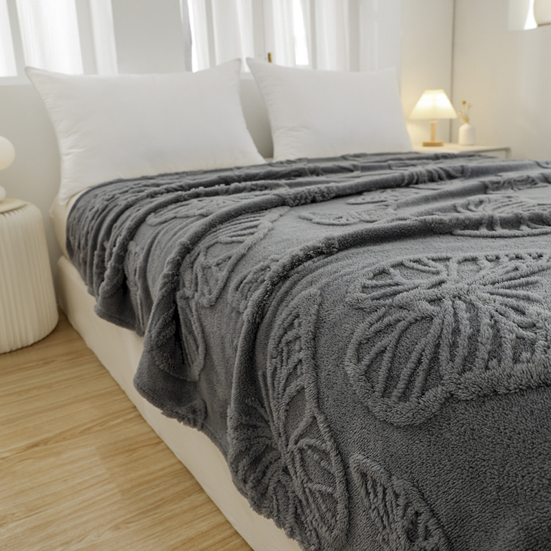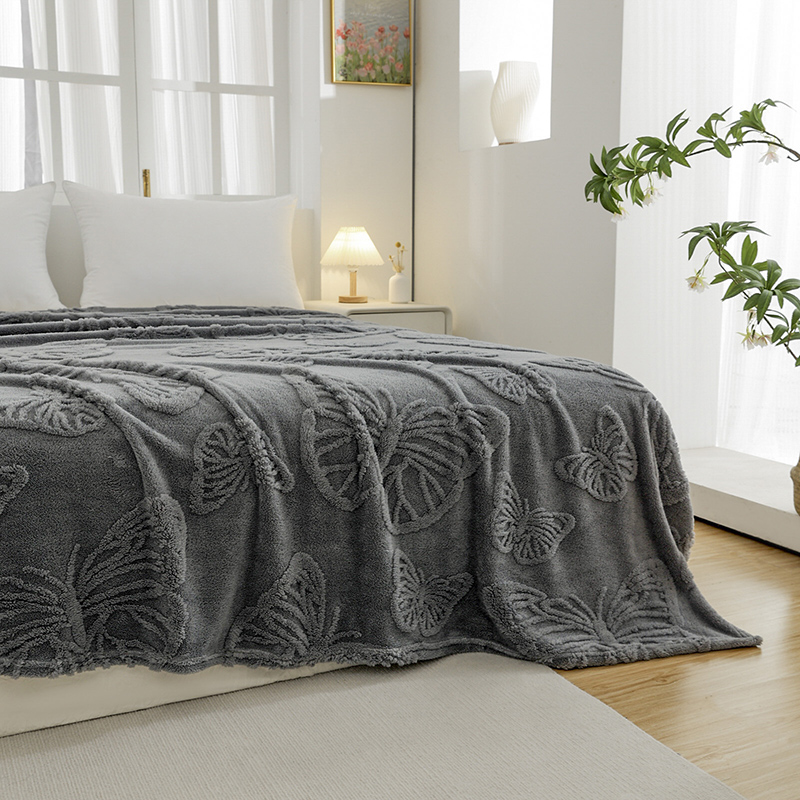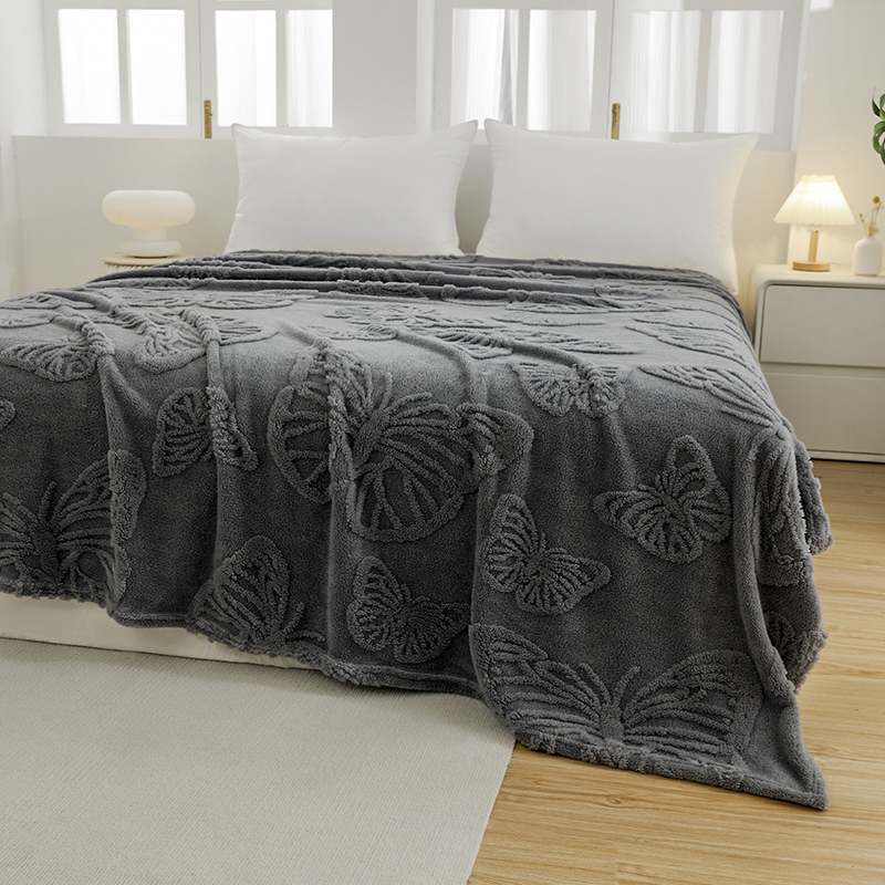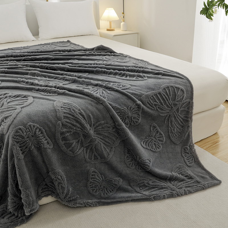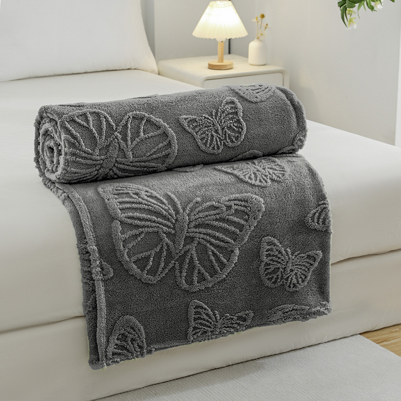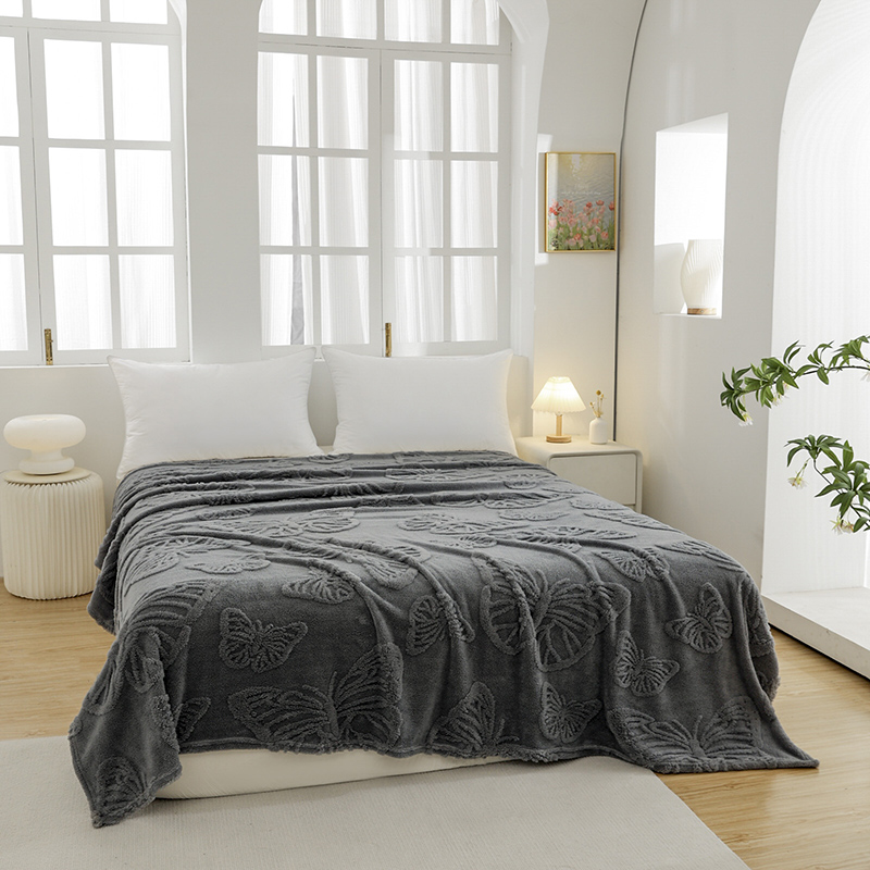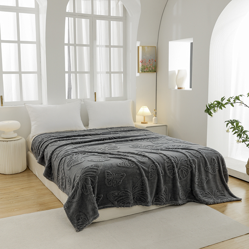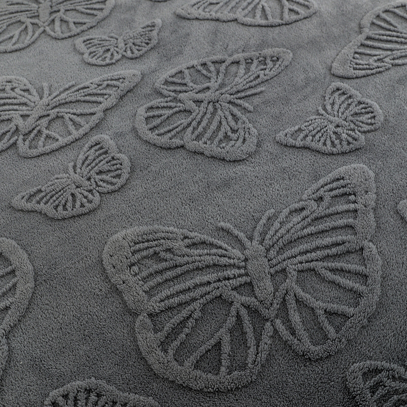 商品名称:金来家纺 2024新款单层双面塔芙绒蝴蝶花提花毛毯 蝴蝶深灰
