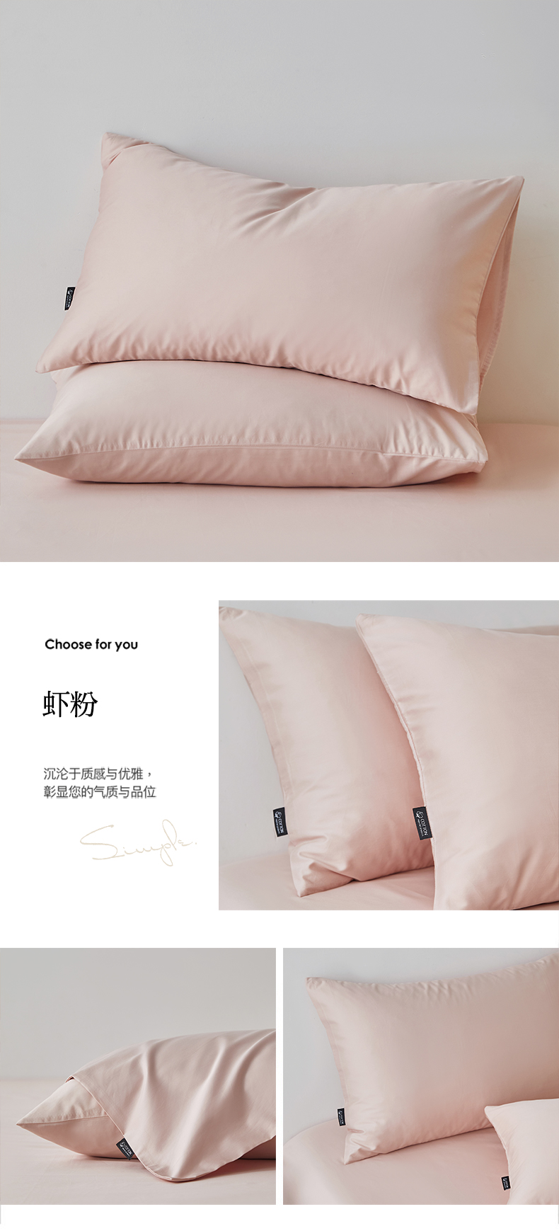商品名称:安莱生活 2024新款100s全棉贡缎单枕套 虾粉