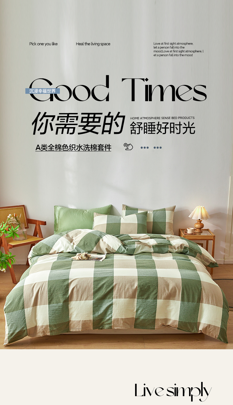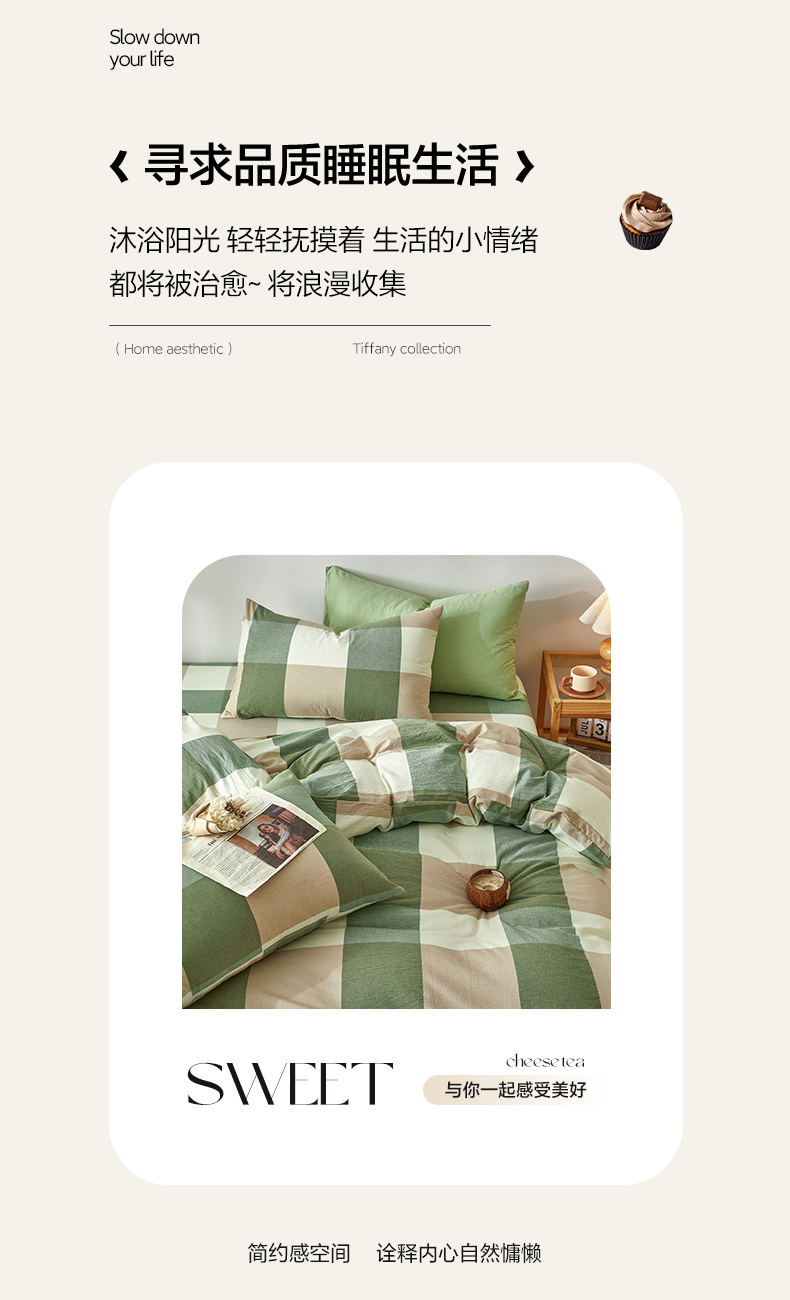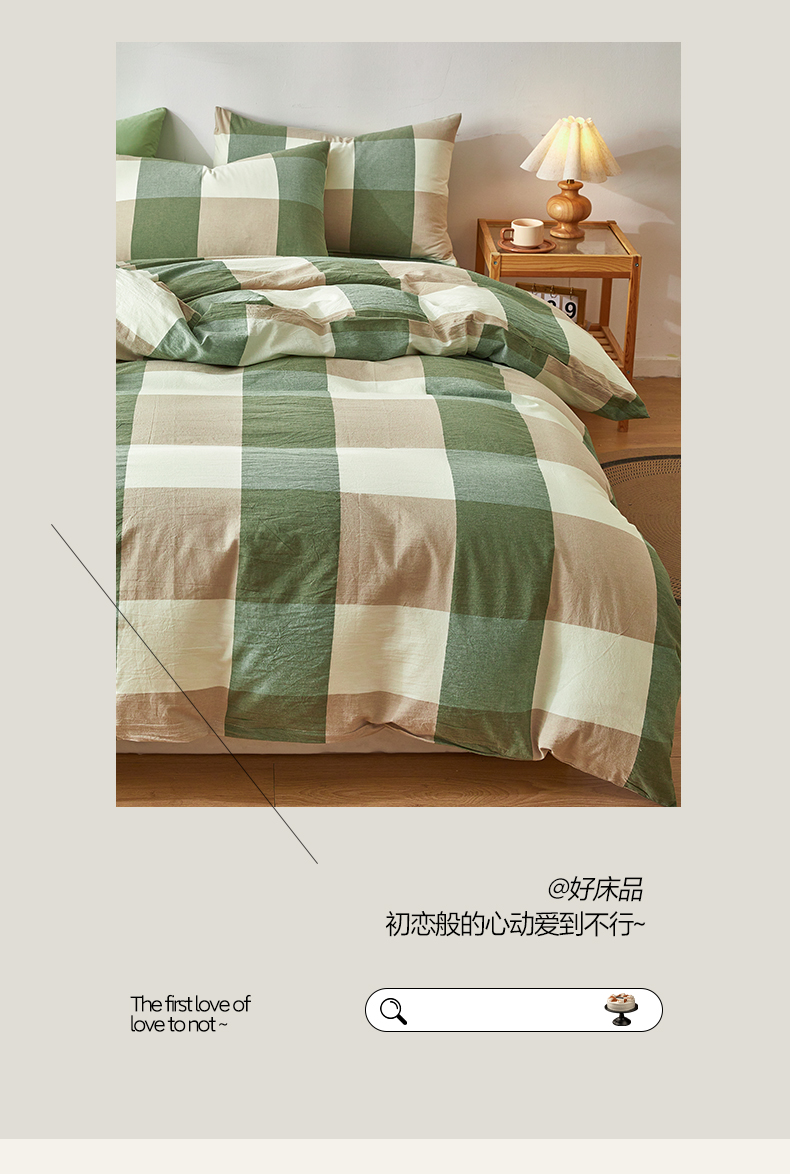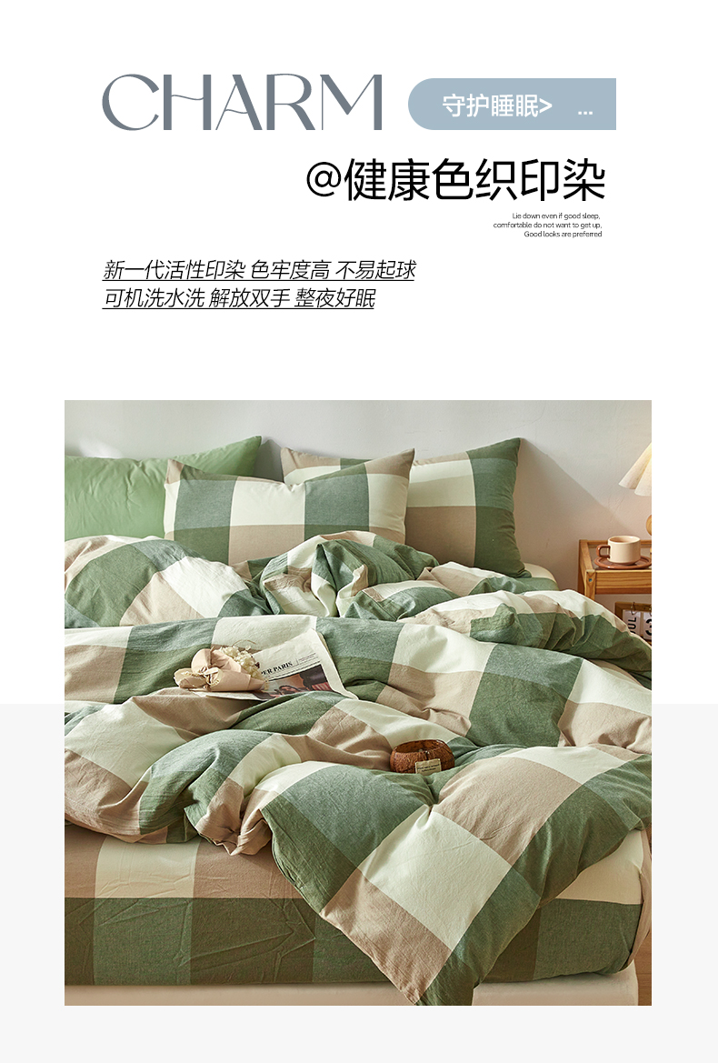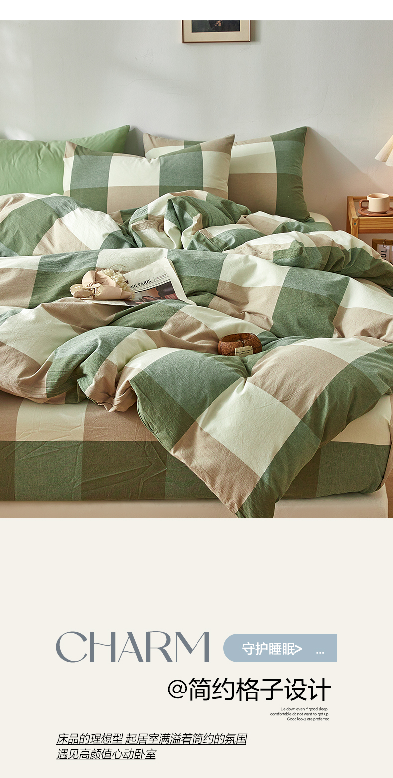 当前位置: 91家纺网 > 商品网购 > 床品套件 > 四件套 > 全棉普通四件套 > 2025新款全棉色织水洗棉四件套被套三件套系列 绿大格
