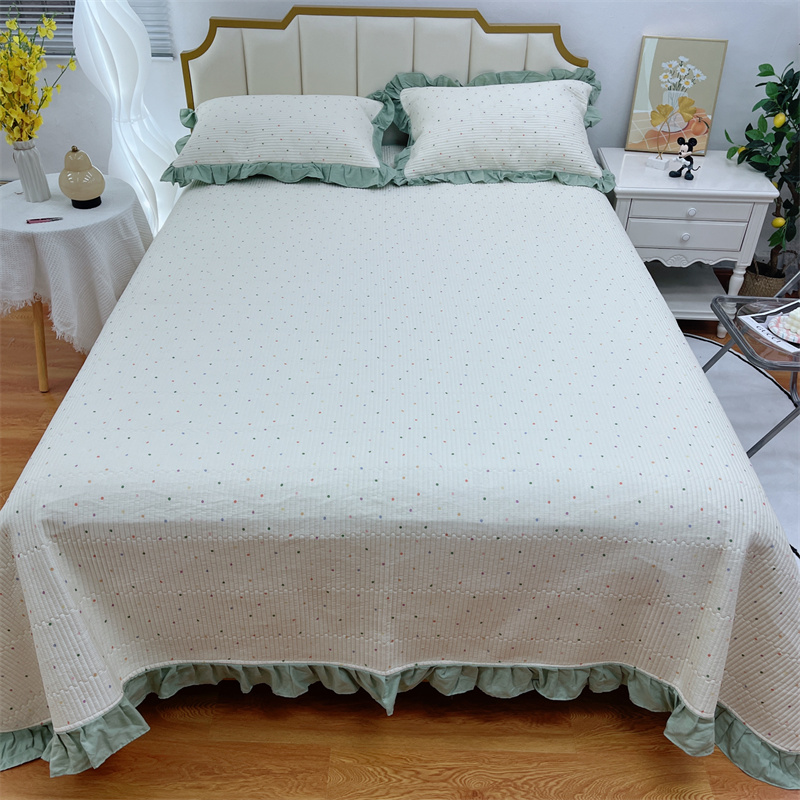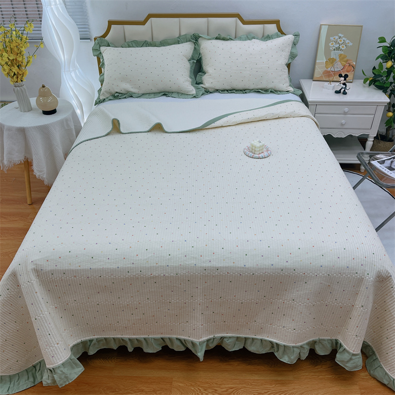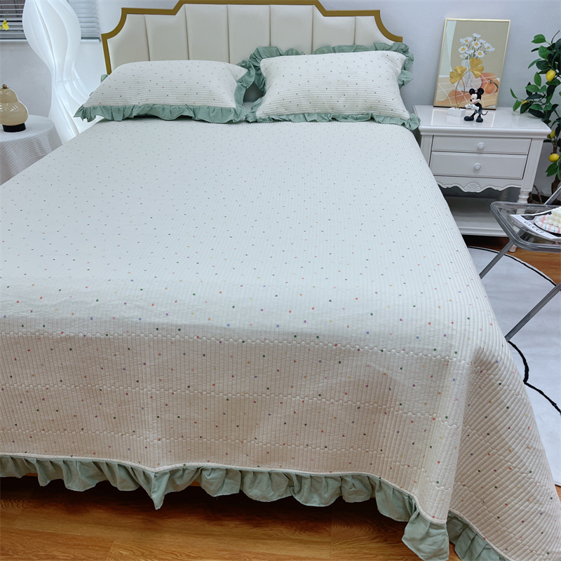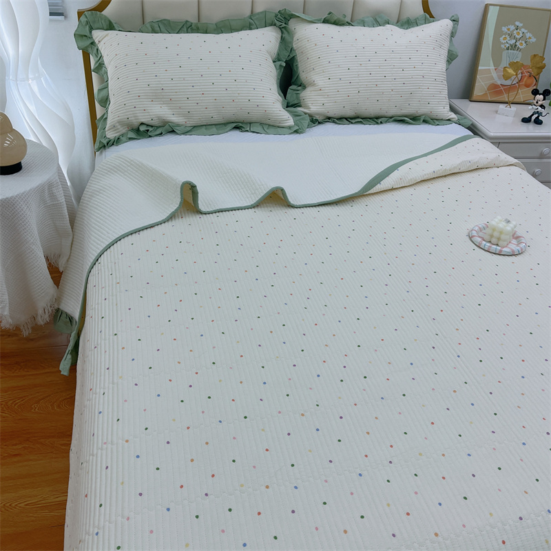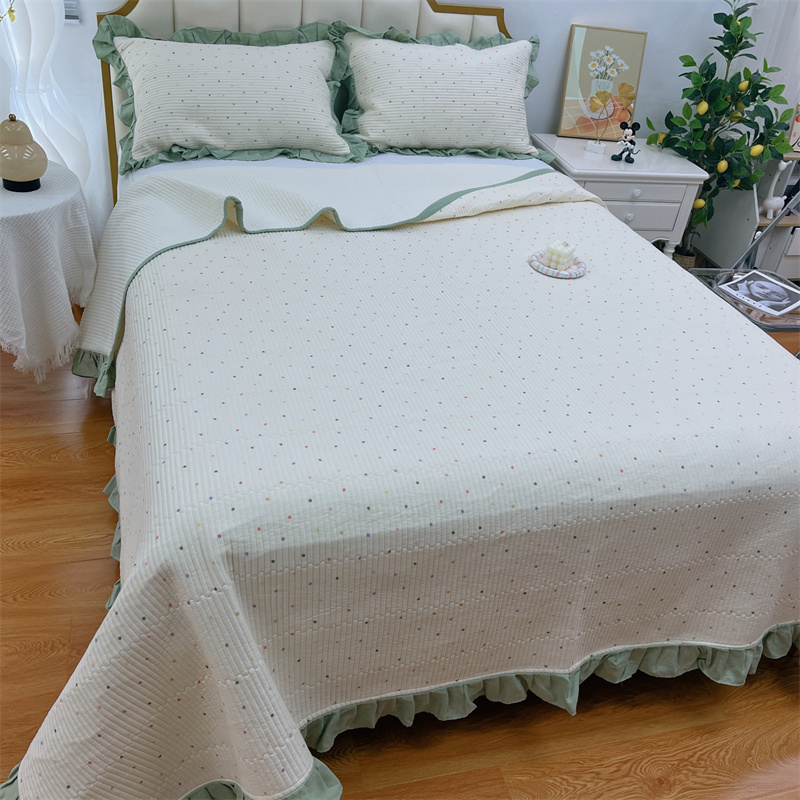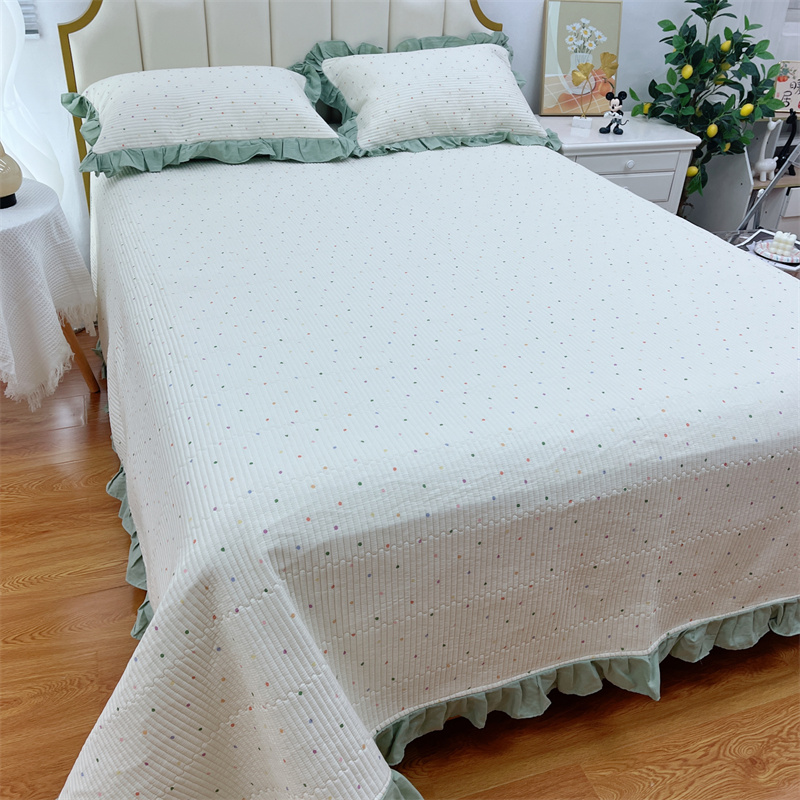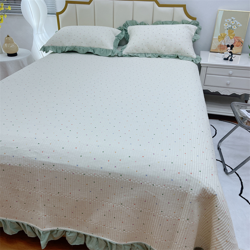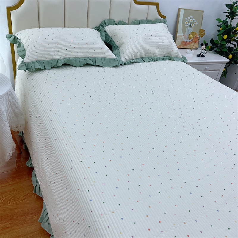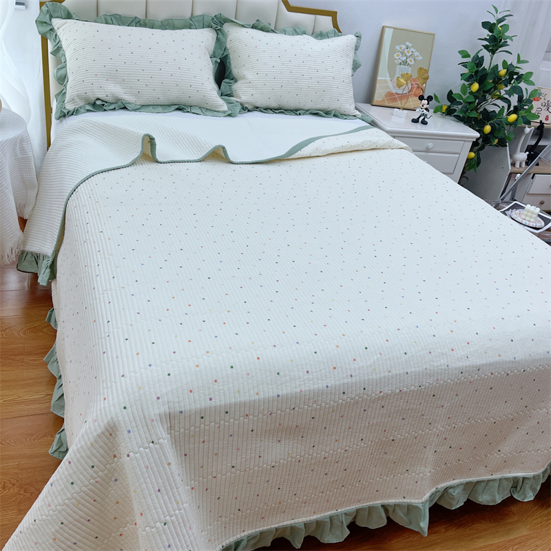 商品名称:暖居 2024新款A类双层纱全棉床盖三件套防滑不跑床绗缝加厚纯棉床单 奶油波点