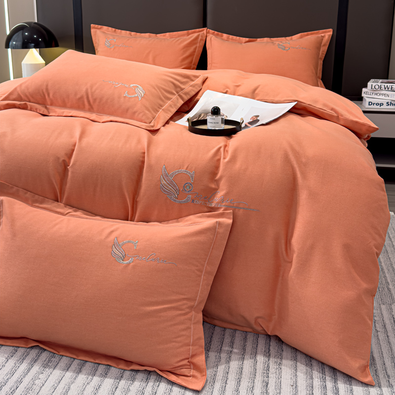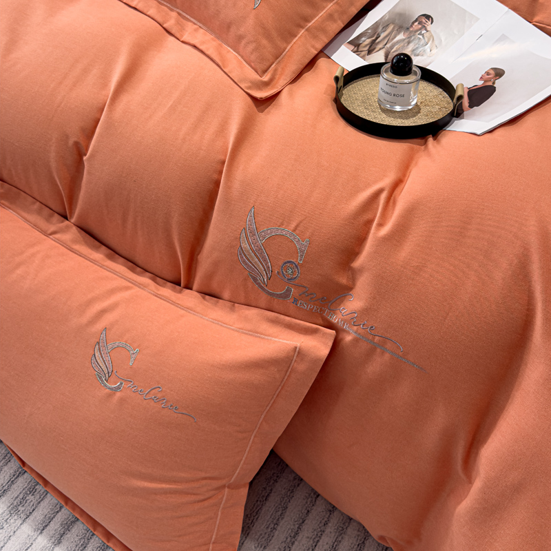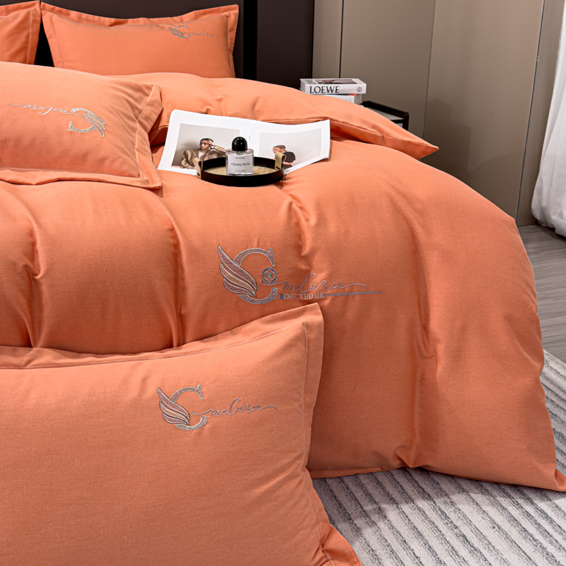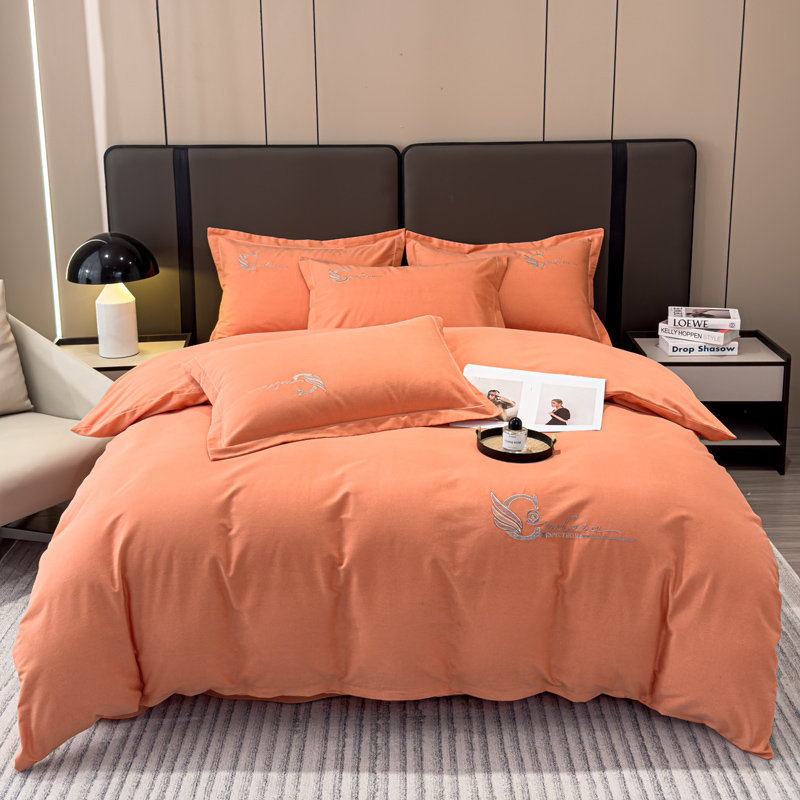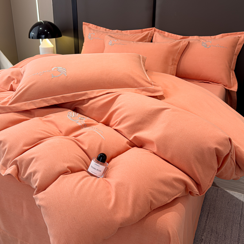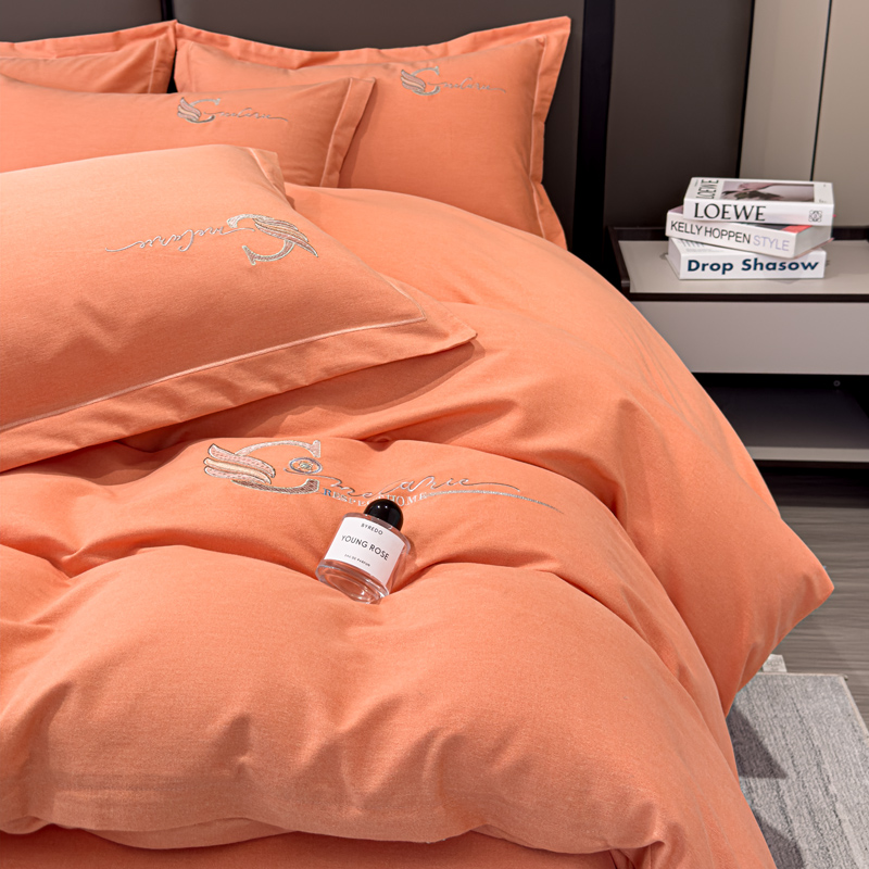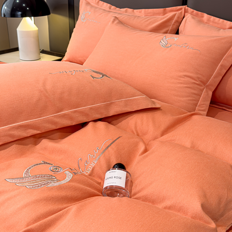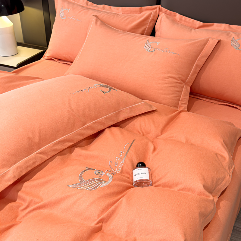 当前位置: 91家纺网 > 商品网购 > 床品套件 > 四件套 > 普通磨毛四件套 > U品汇 2024新品生态加厚长绒棉纯棉绣花全棉磨毛刺绣四件套直播 飞羽-活力桔