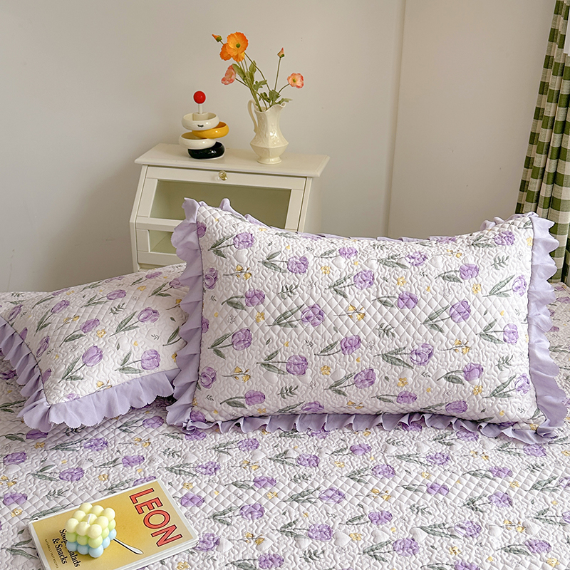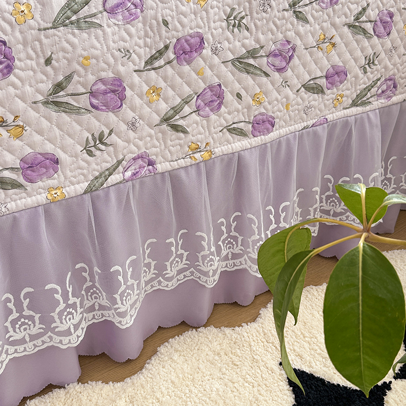 商品名称:富瑞阁 2024新款A类水洗棉麻法式花边款床盖床盖款三件套 紫色郁金香