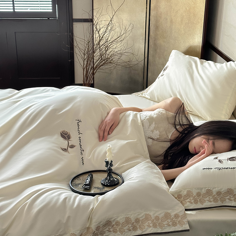新款100s澳棉法式优雅系列四件套-巴黎暖阳 棉巴黎暖阳-仙女白