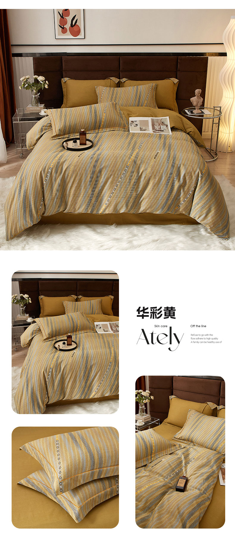 商品名称:2025新款全棉精梳磨毛印花四件套 华彩黄