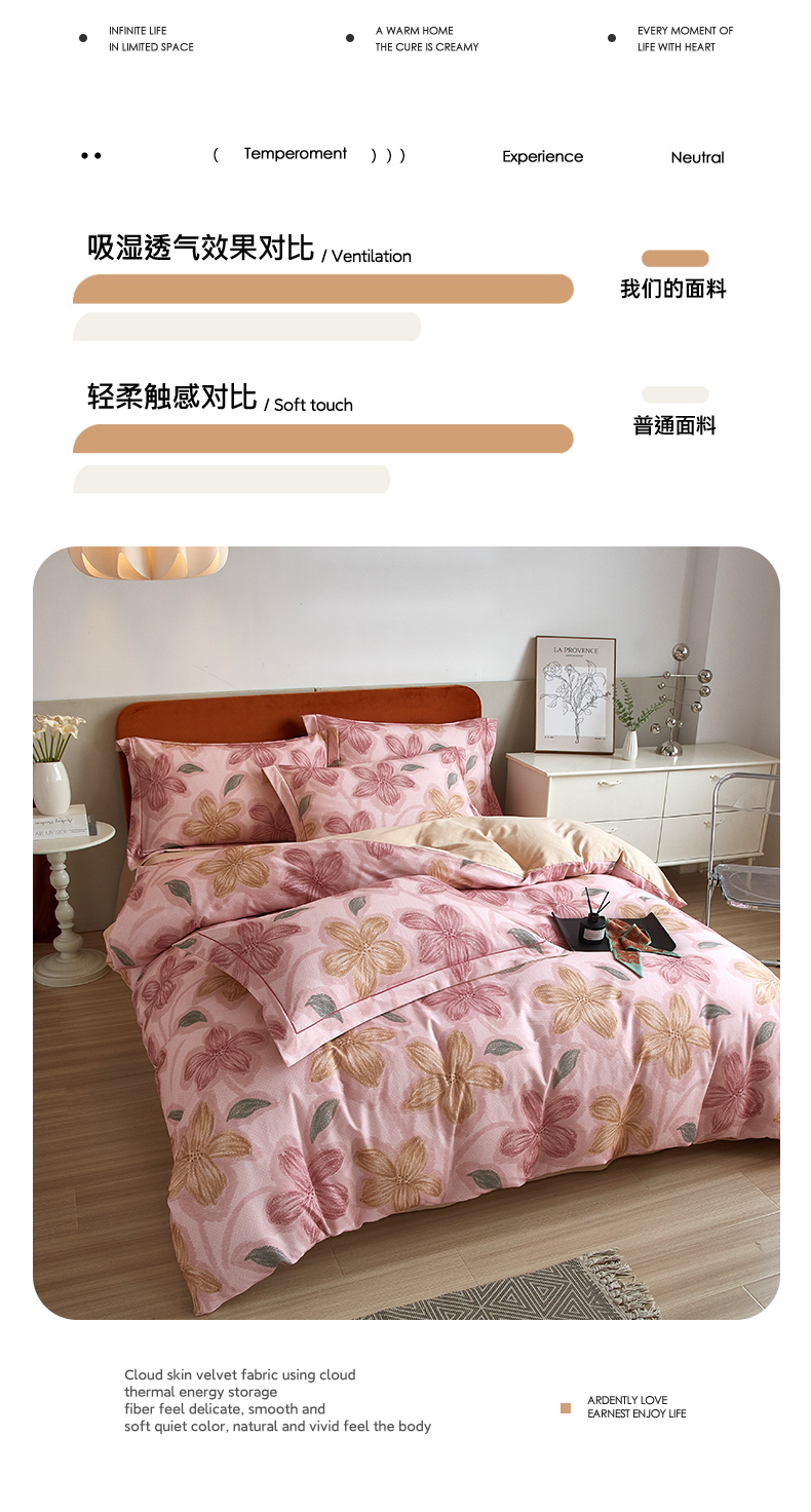商品名称:2025新款全棉精梳磨毛印花四件套 迷人花香粉