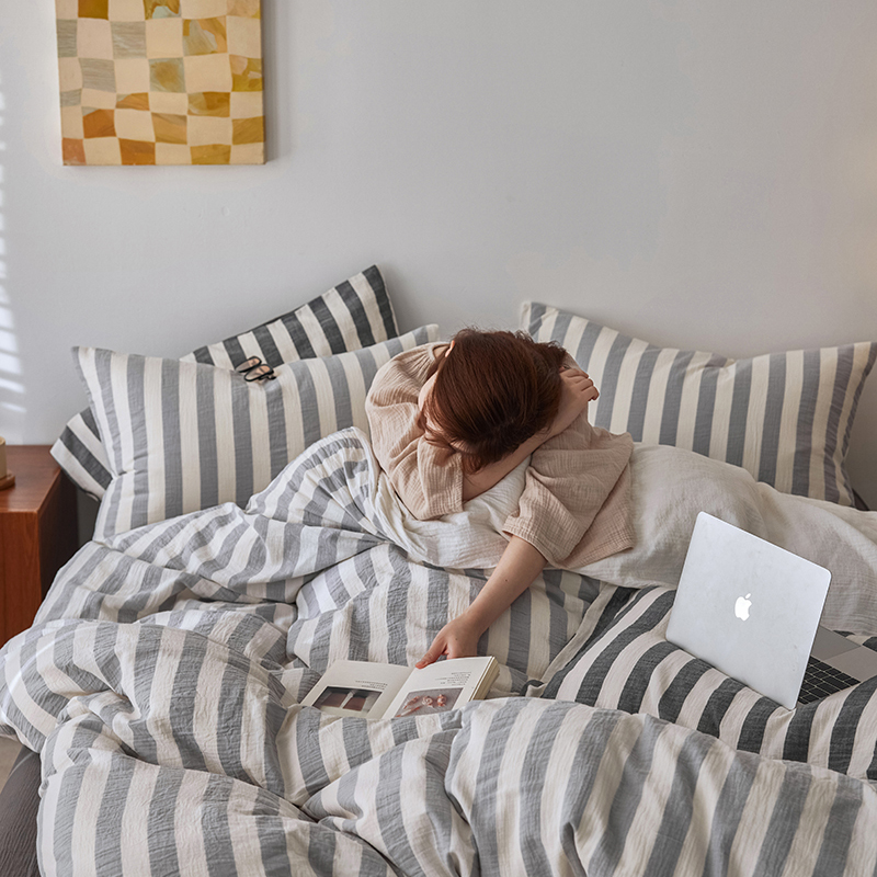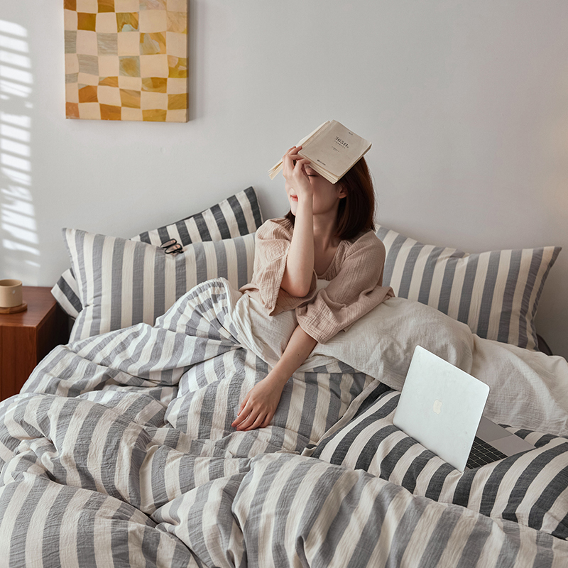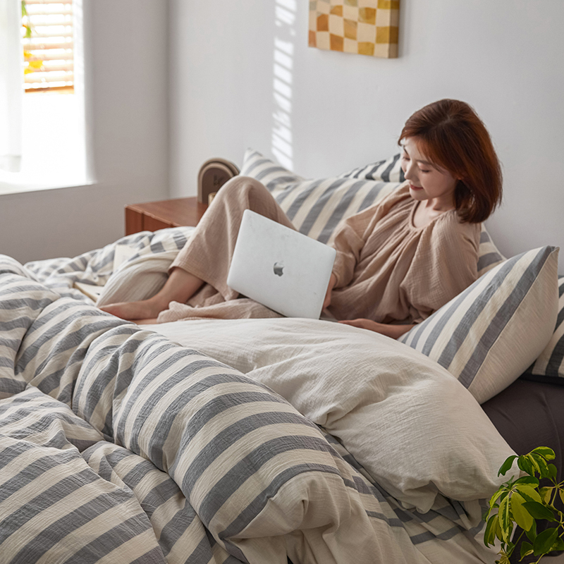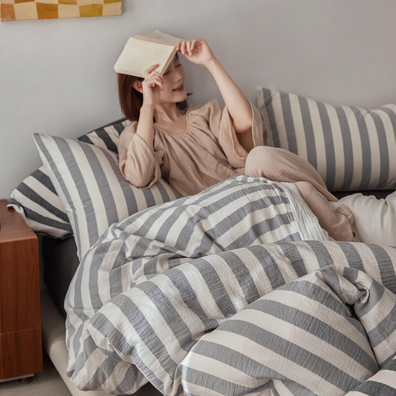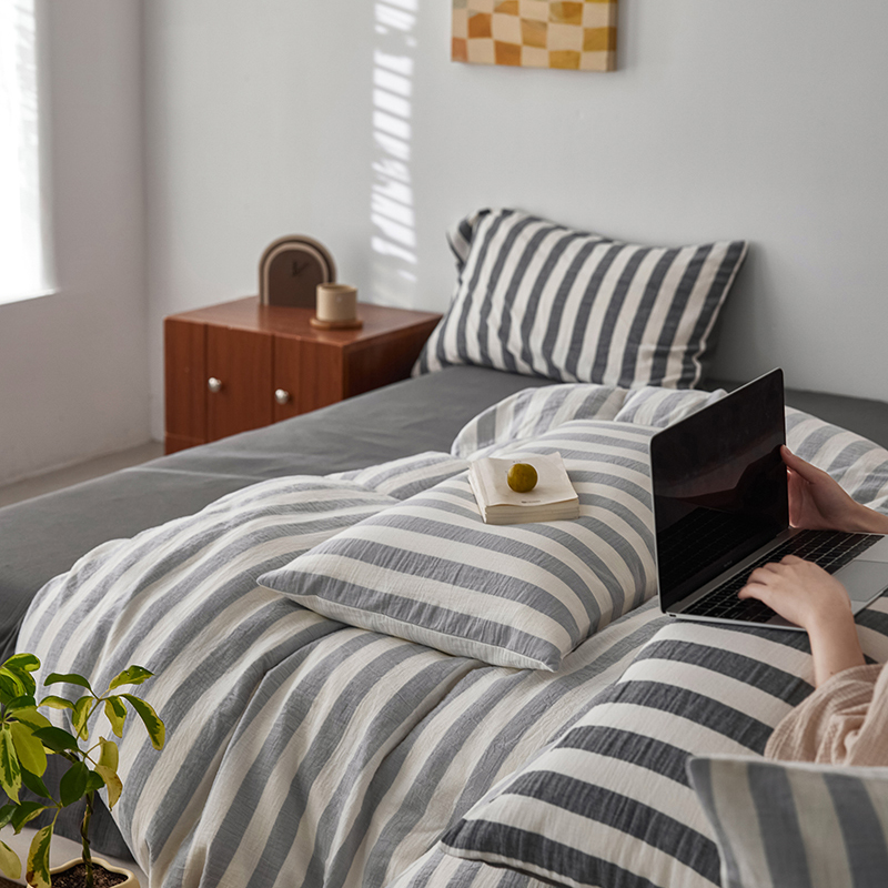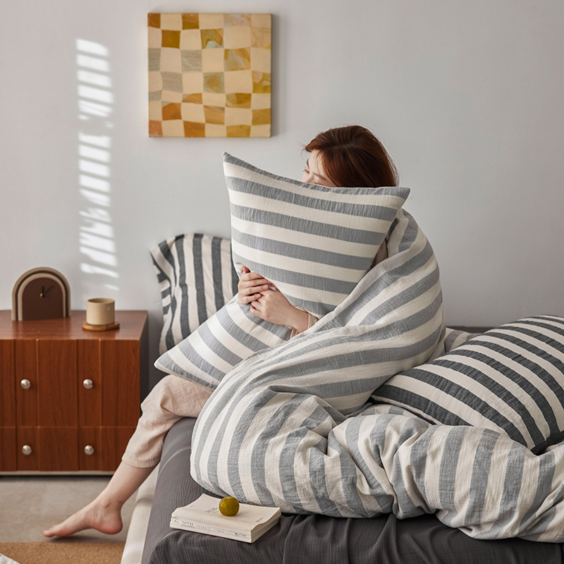 当前位置: 91家纺网 > 商品网购 > 床品套件 > 四件套 > 全棉普通四件套 > 2025新品尚美色织条纹绉纱系列--尚美宽条系列 尚美-银灰宽条