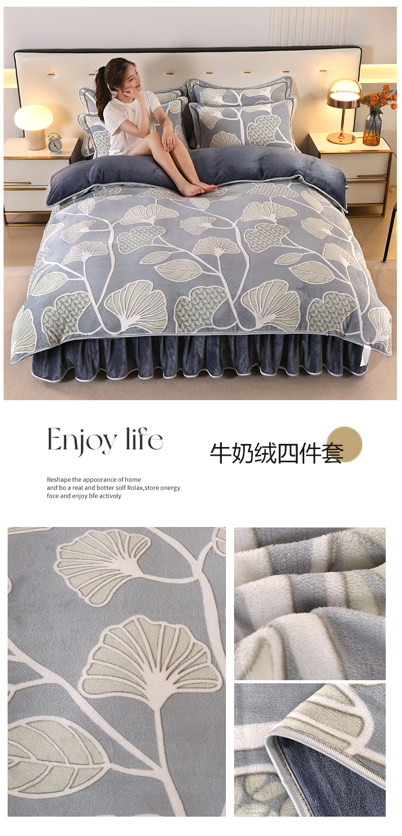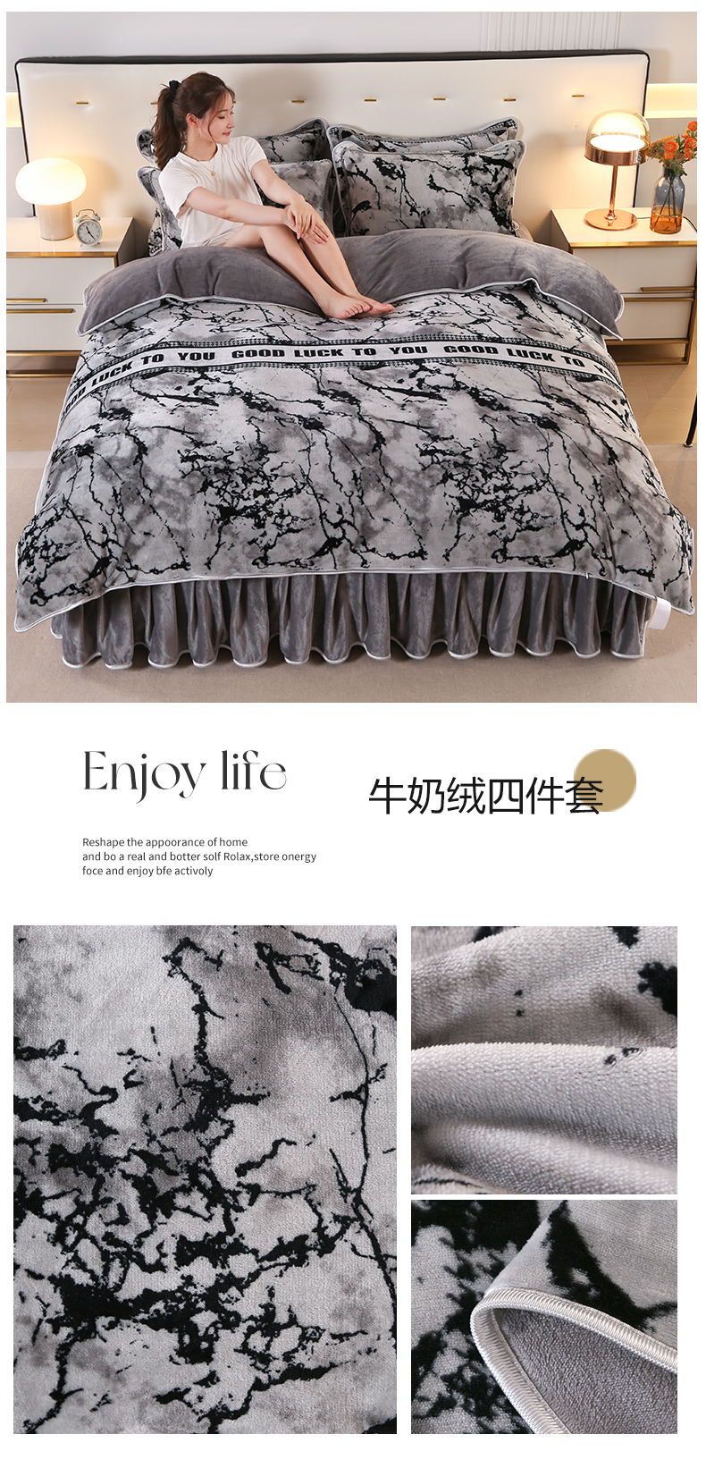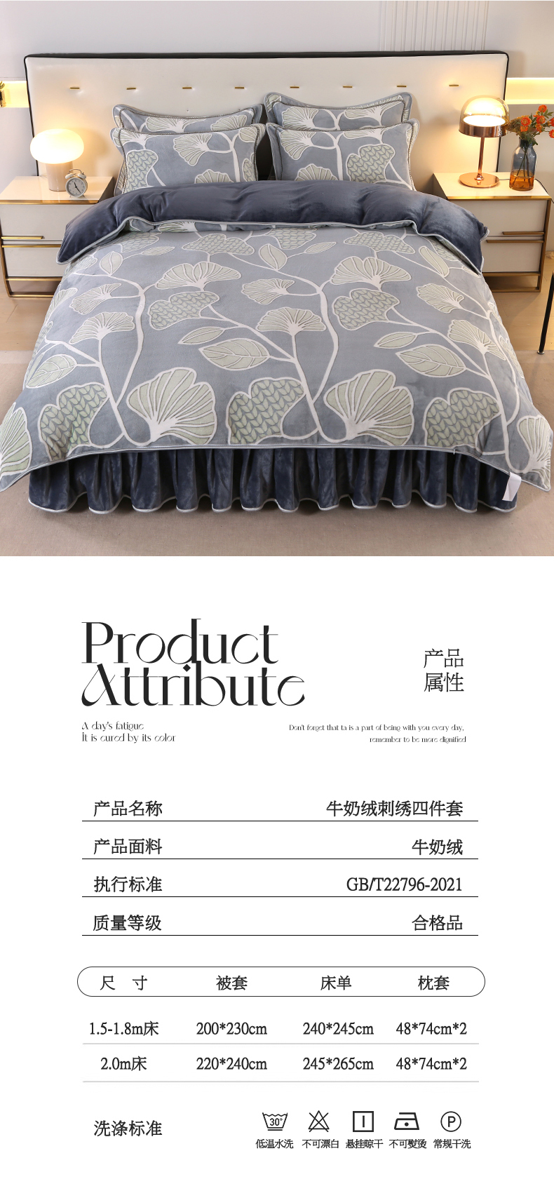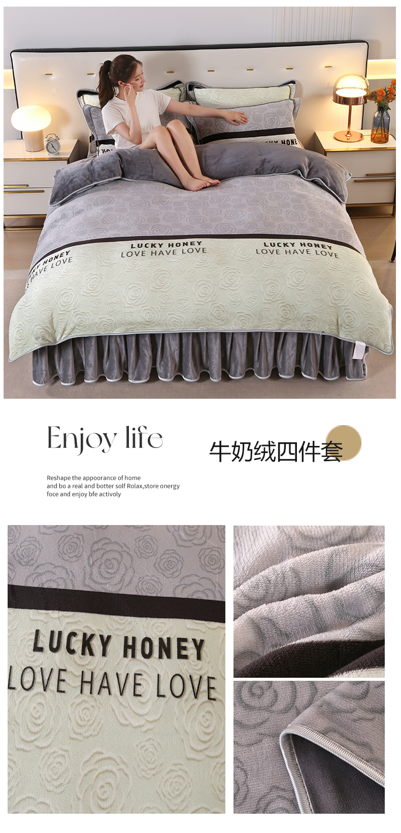 商品名称:雨洋 2025新款牛奶绒低克重吸湿透气印花床裙四件套 素色主义-灰
