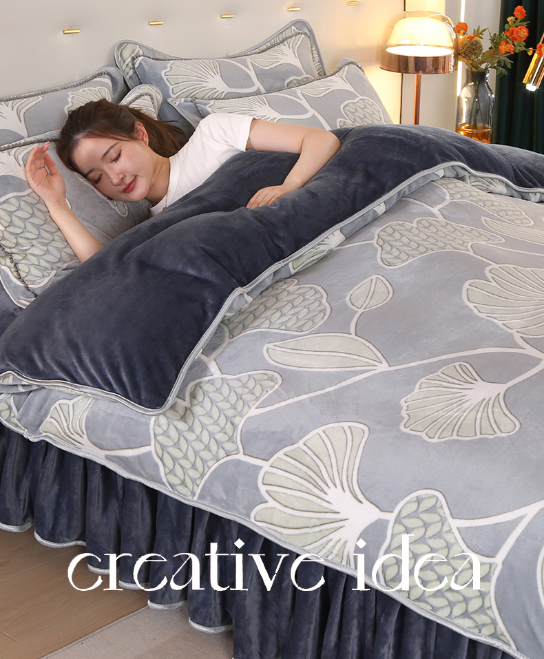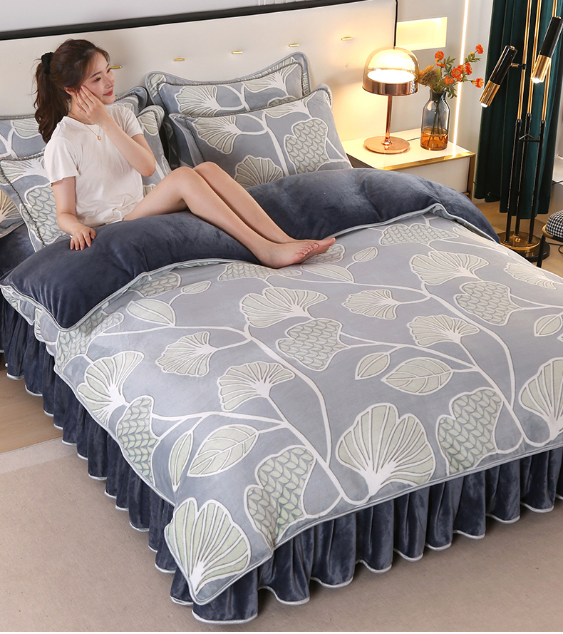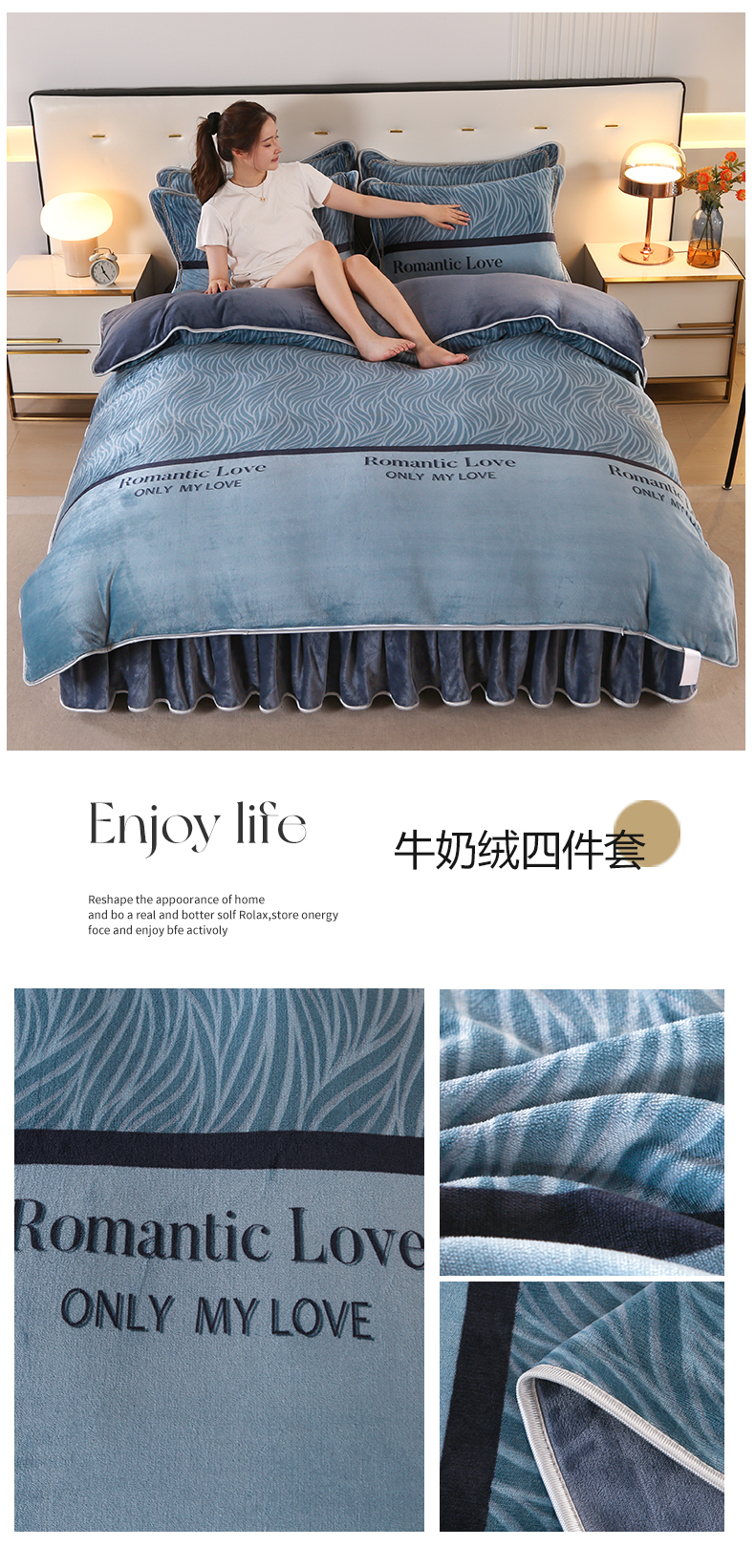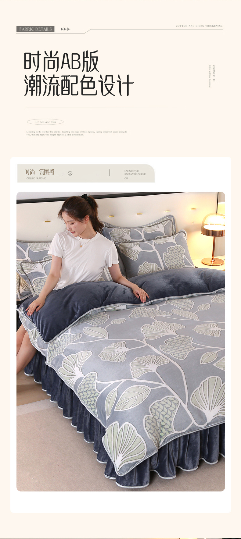 商品名称:雨洋 2025新款牛奶绒低克重吸湿透气印花床裙四件套 素色主义-灰