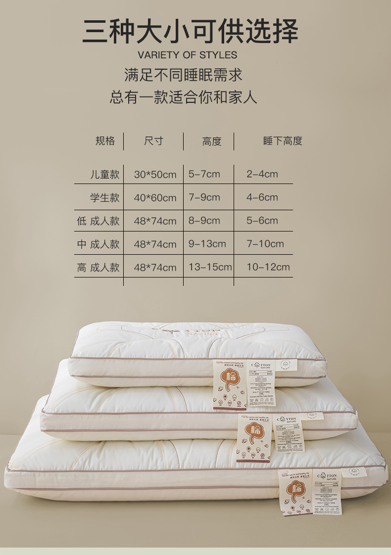 (总)贵夫人 2025春夏新款100%纯棉花枕枕头枕芯—亲子系列,本色 30x50cm/只,本色 40x60cm/只,本色 48x74cm/只 低枕,本色 48x74cm/只 中枕,本色 48x74cm/只 高枕