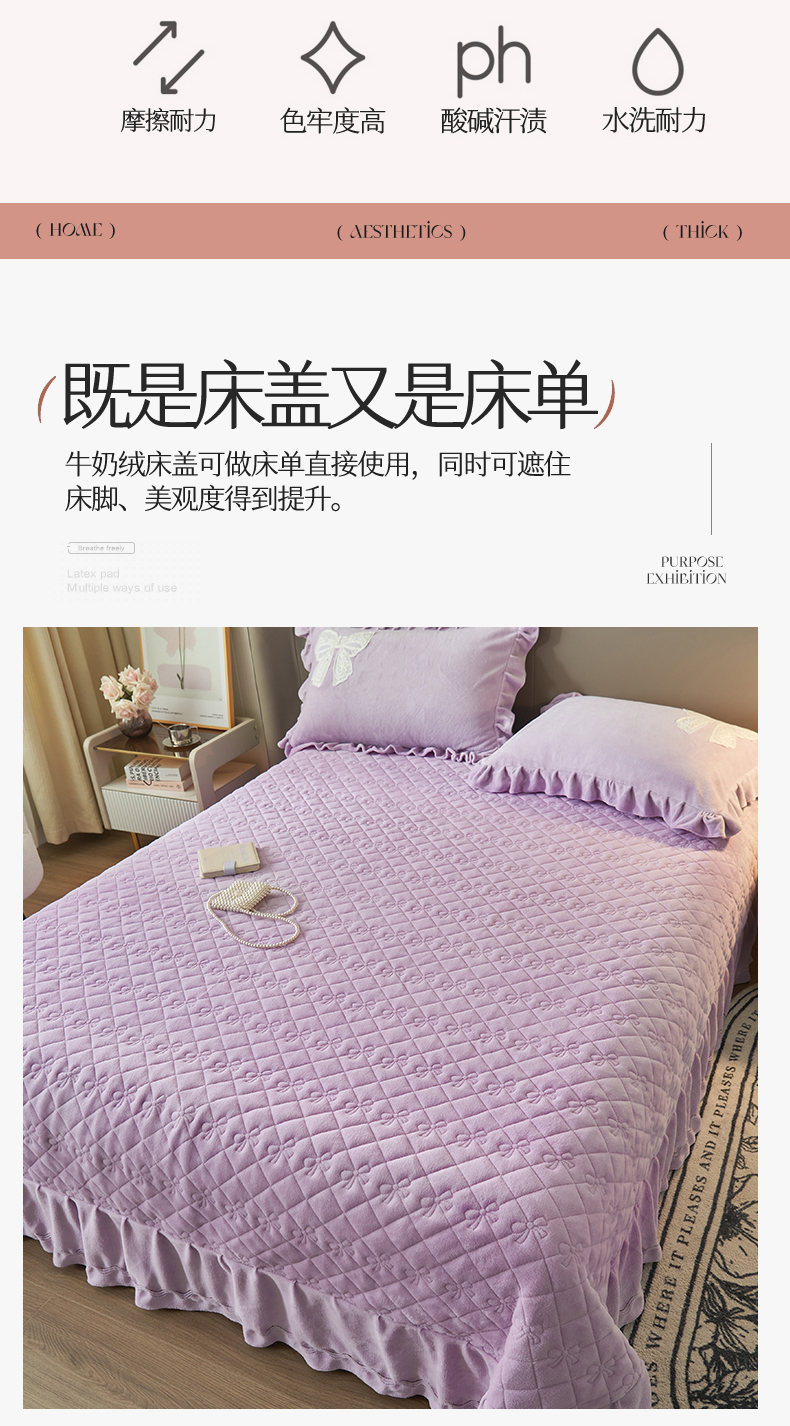 • 91家纺网 家纺一手货源 找家纺 2024新款A类幸福约定牛奶绒单床盖 浅紫