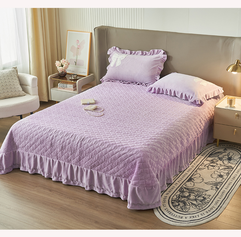 2024新款A类幸福约定牛奶绒单床盖 浅紫