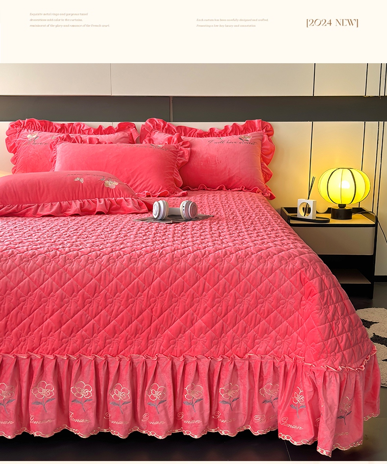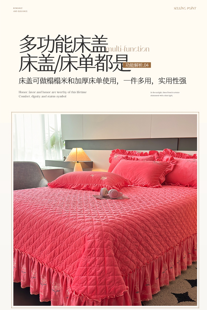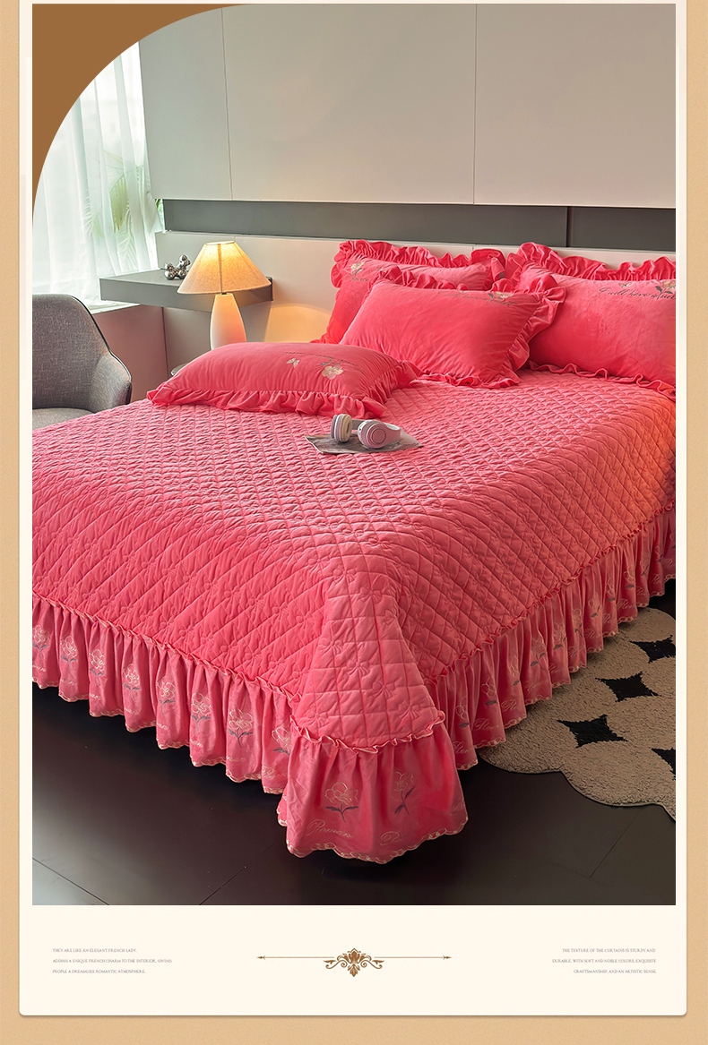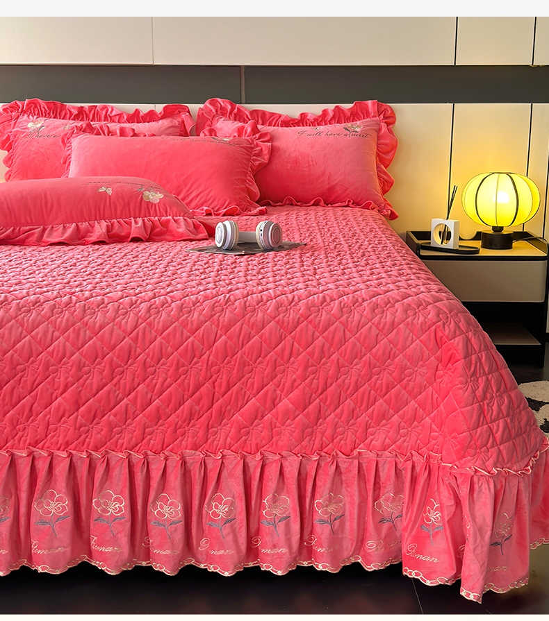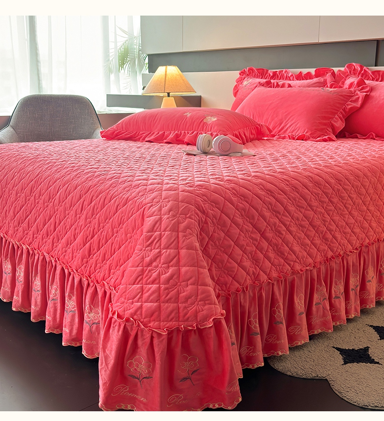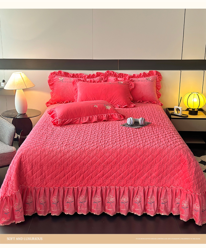 2024新款A类依恋宝宝绒韩版床盖 西瓜红
