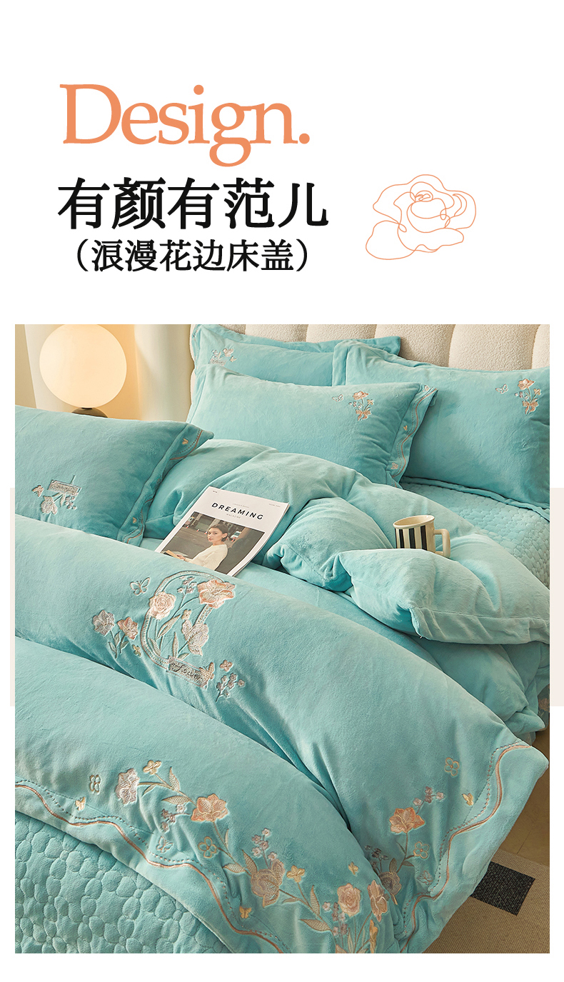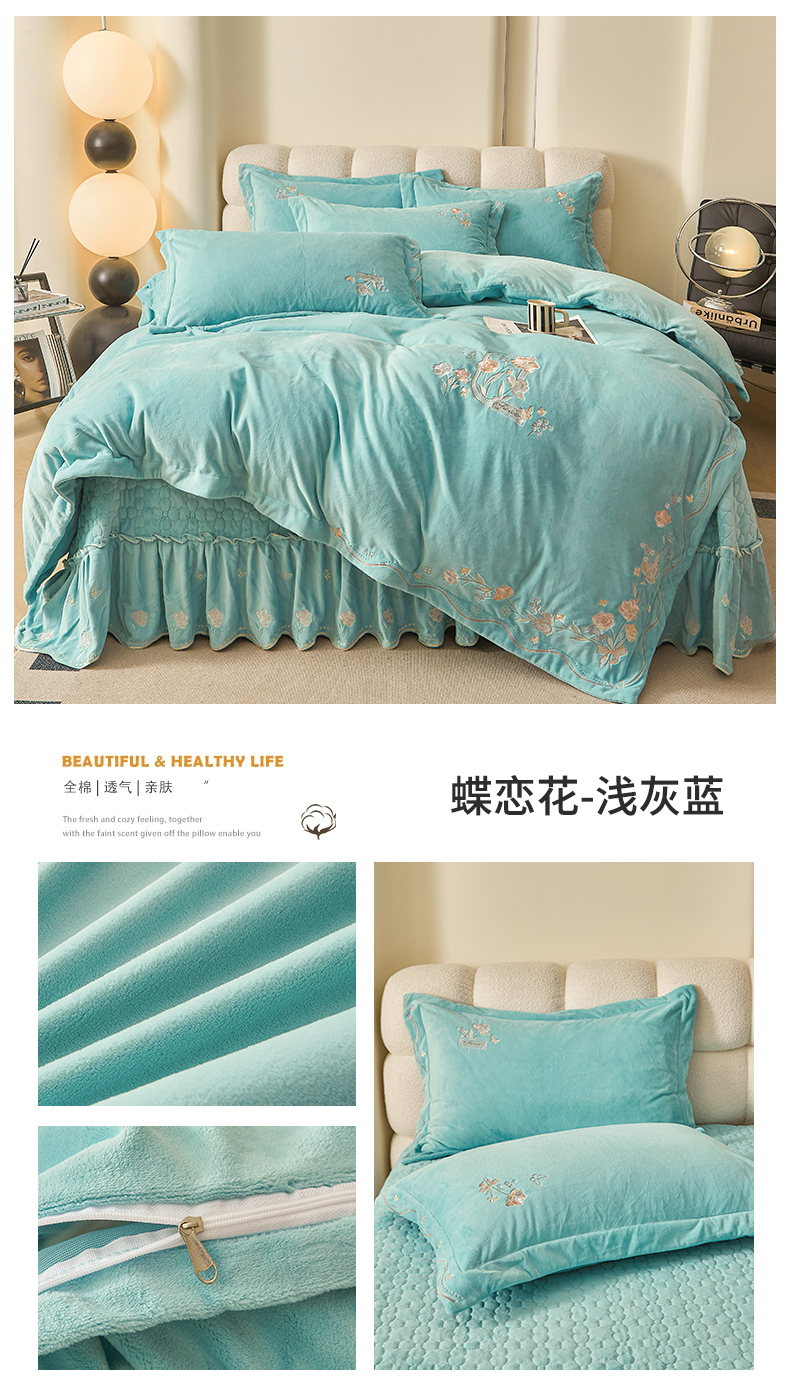 当前位置: 91家纺网 > 商品网购 > 床品套件 > 四件套 > 其它四件套 > 2024新款锦肤绒蝶恋花床盖款四件套 蝶恋花-浅灰蓝
