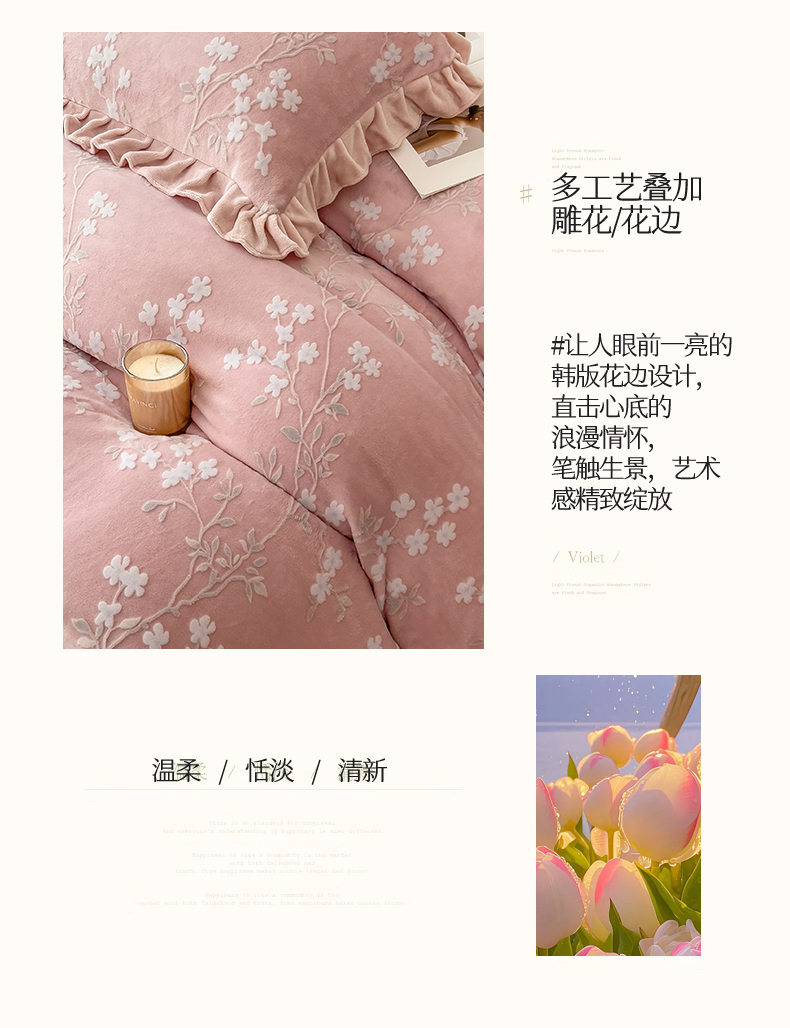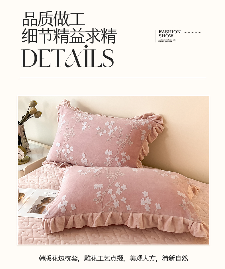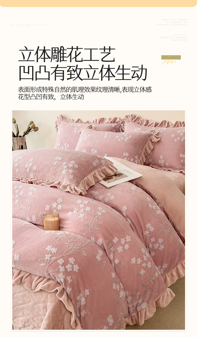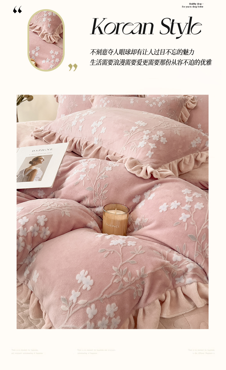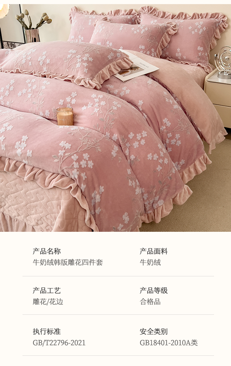 商品名称:2024新品A类牛奶绒韩版雕花四件套 梨花海棠-豆沙