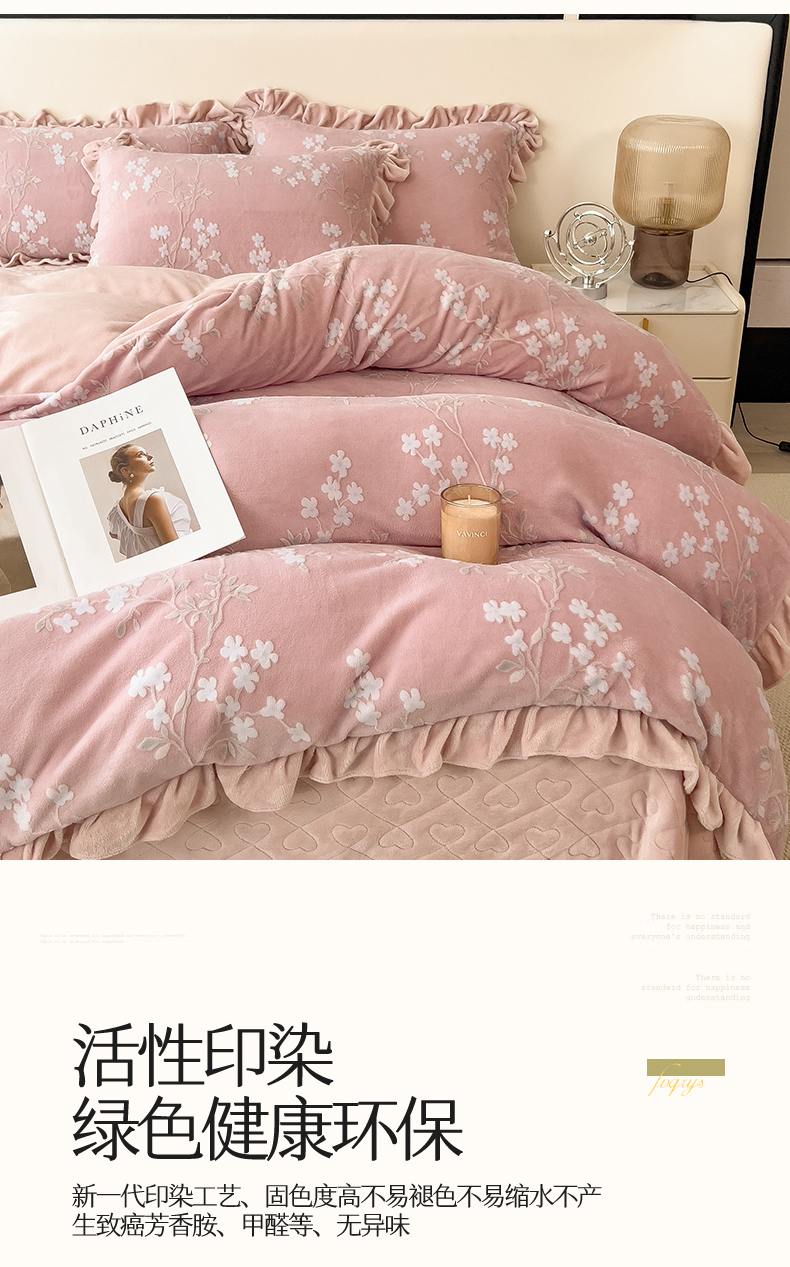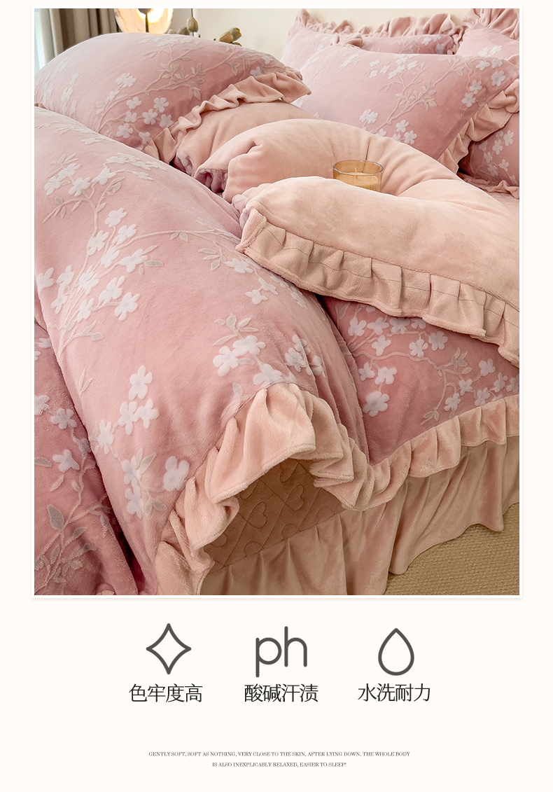 (总)恒爱 2022秋冬水晶绒翩翩花舞夹棉床裙四件套,大红色,豆沙红,橄榄绿,公主粉,桔色,咖啡色,孔雀绿,拉菲红,罗兰紫,玫红色,美人玉,米白色,米驼色,抹茶绿,浅灰色,紫色