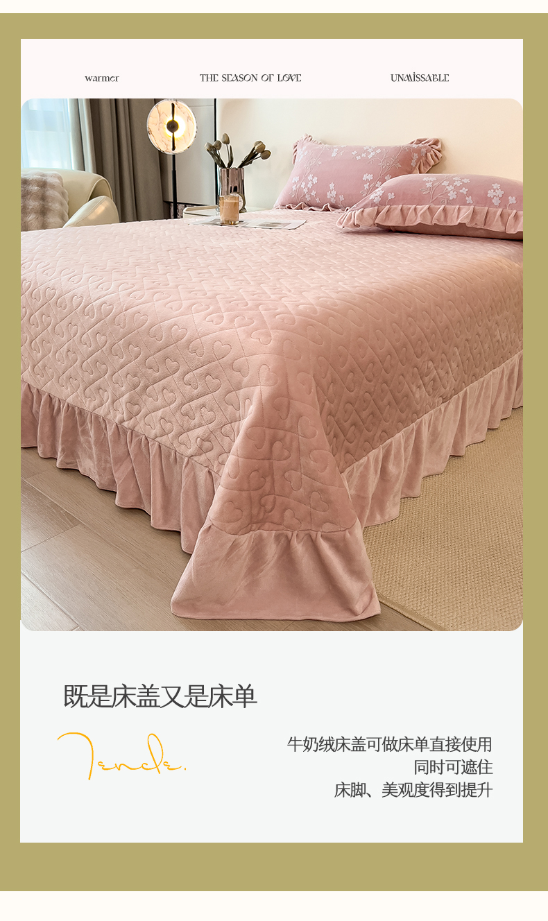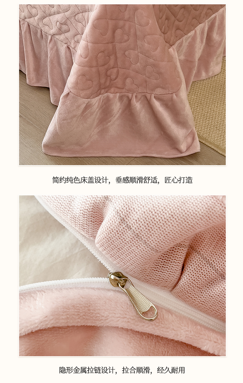 (总)恒爱家纺 2025新款牛奶绒贴布绣夹棉床裙四件套,豆沙红,浪漫紫,天空蓝,温馨粉,象牙白