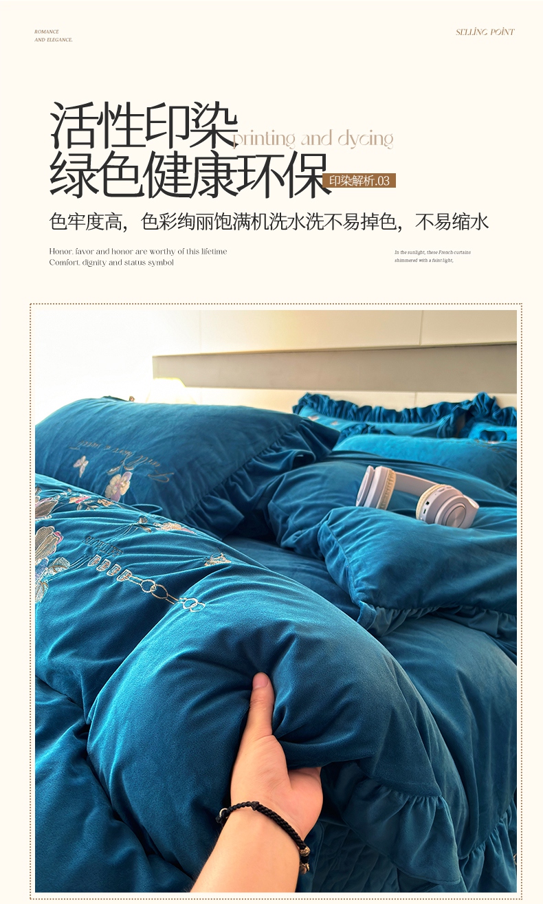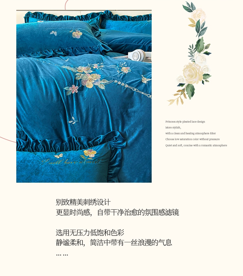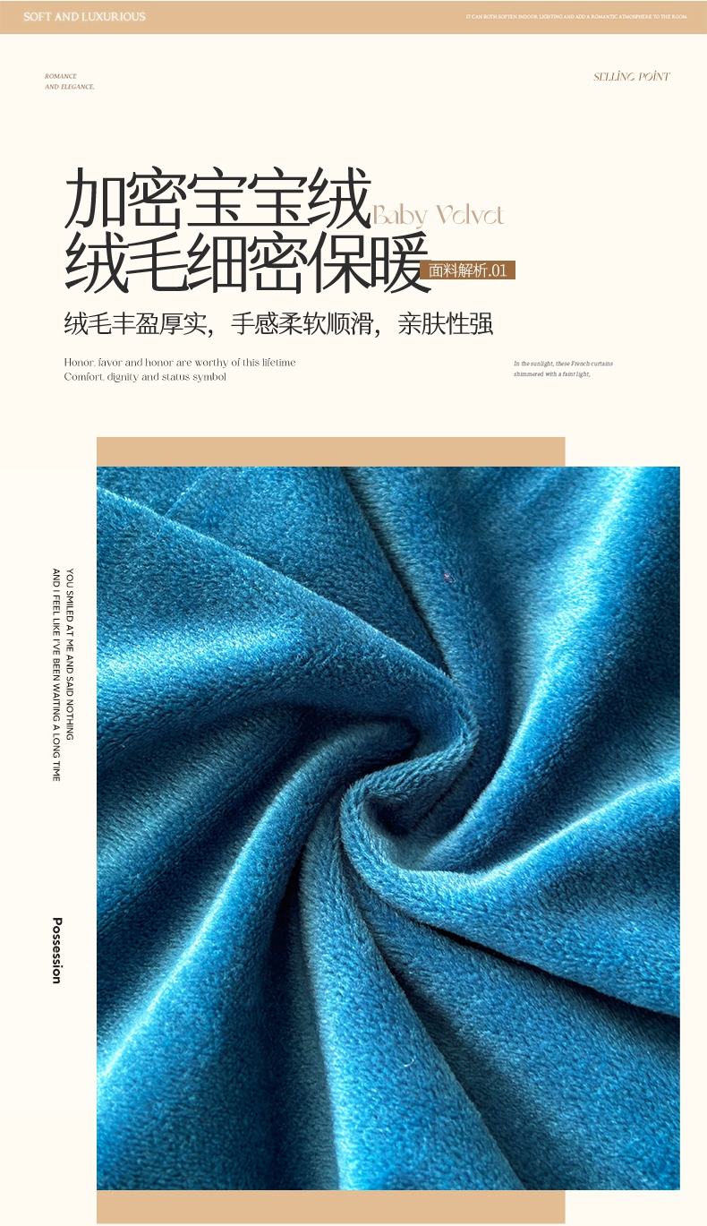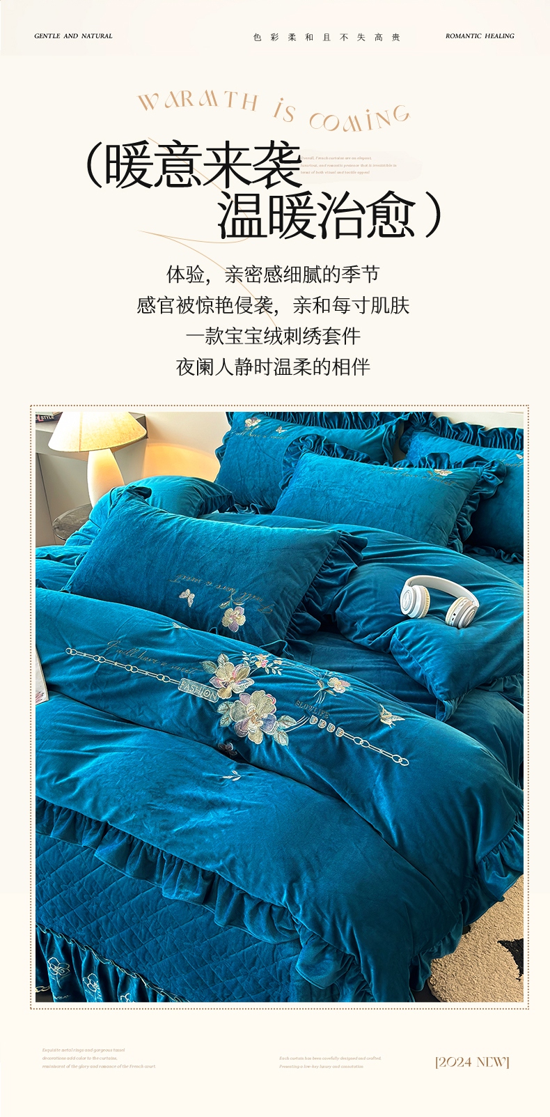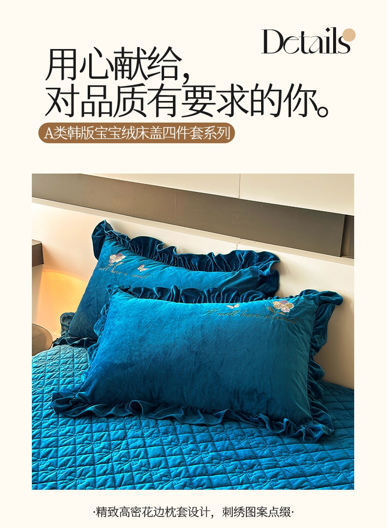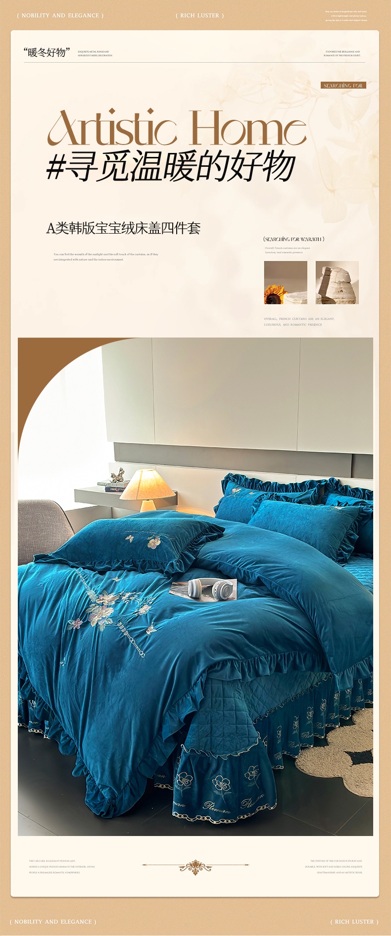 当前位置: 91家纺网 > 商品网购 > 床品套件 > 四件套 > 宝宝绒四件套 > 2024新品A类依恋宝宝绒韩版四件套 宝利蓝
