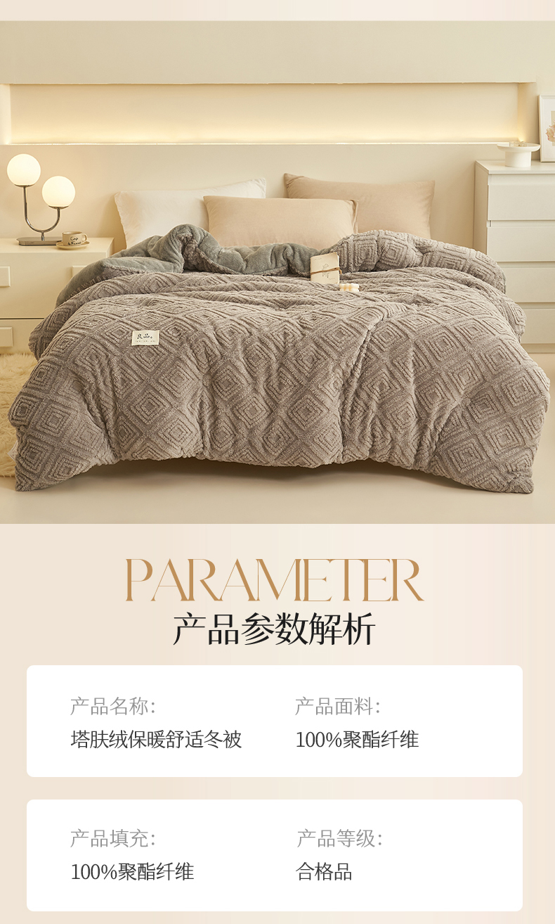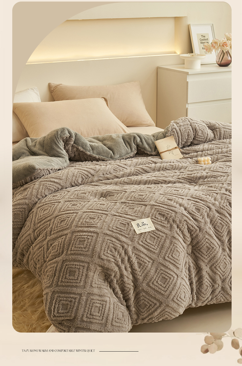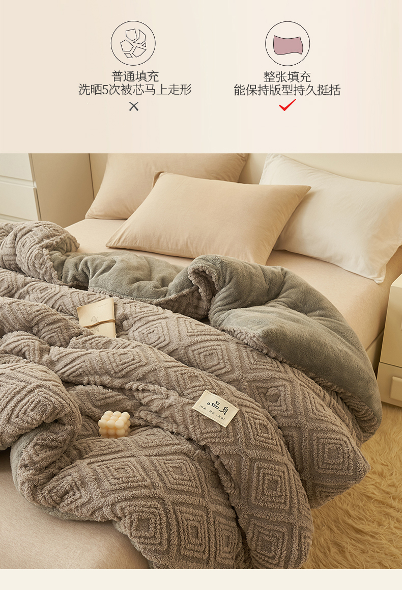 • 91家纺网 家纺一手货源 找家纺 2024新品塔肤绒保暖舒适冬被子被芯 菱形-灰