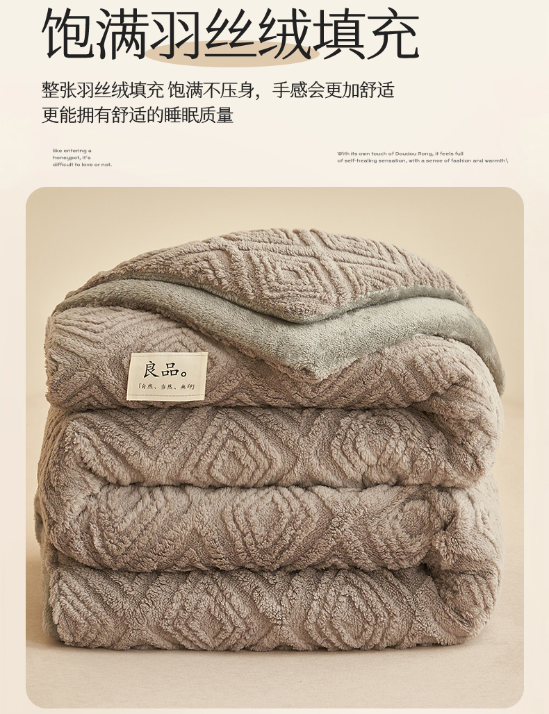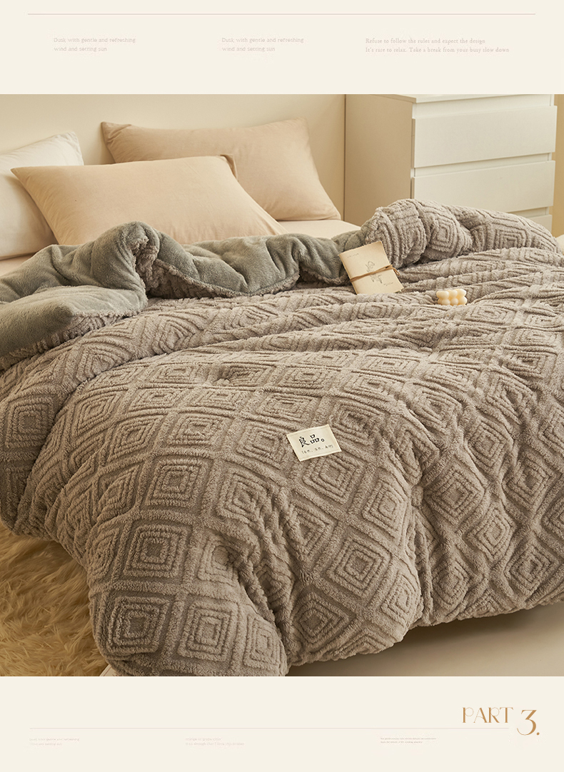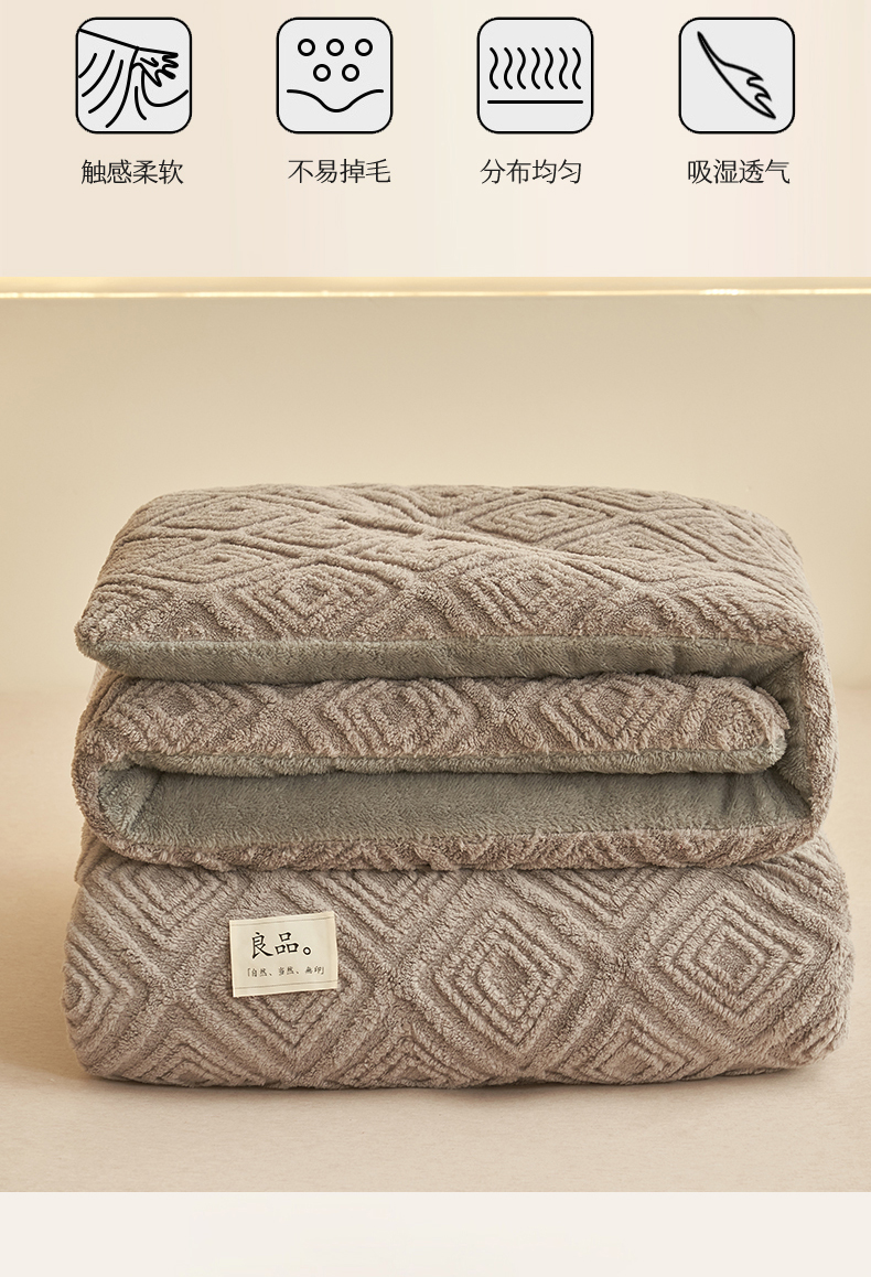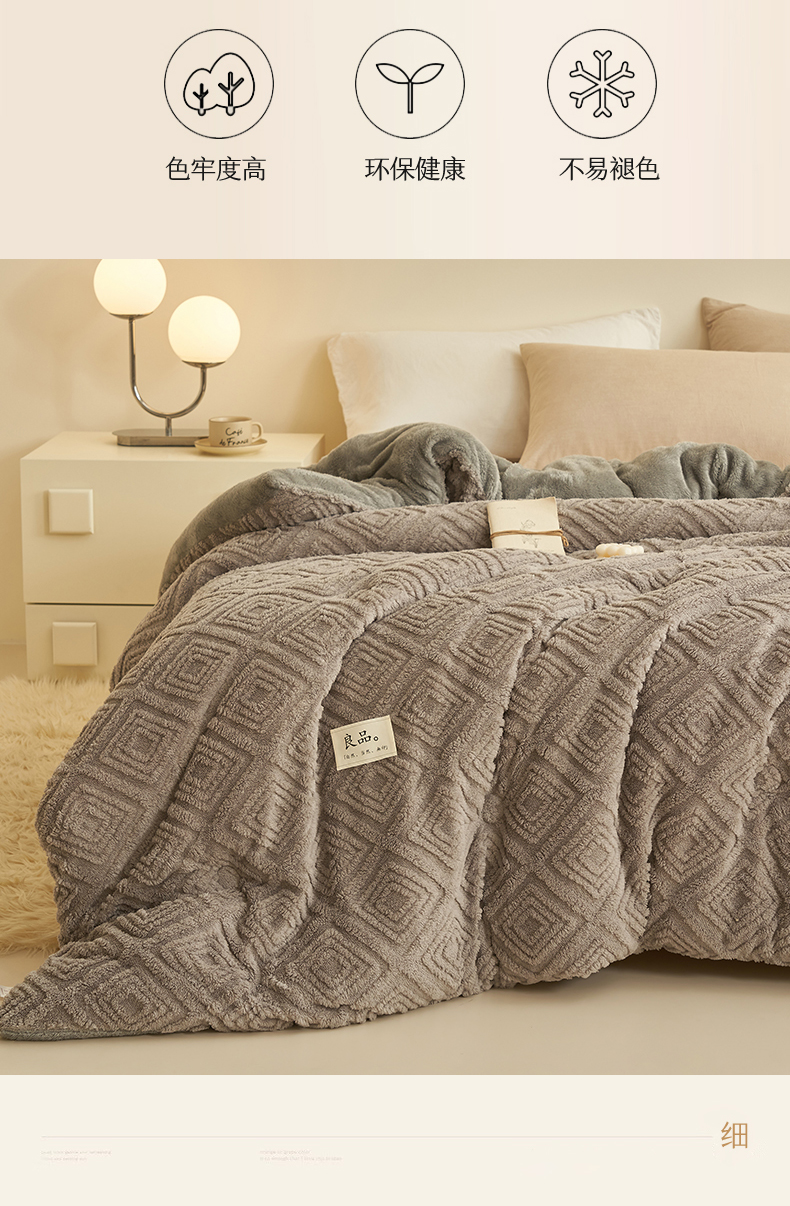 • 91家纺网 家纺一手货源 找家纺 2024新品塔肤绒保暖舒适冬被子被芯 菱形-灰