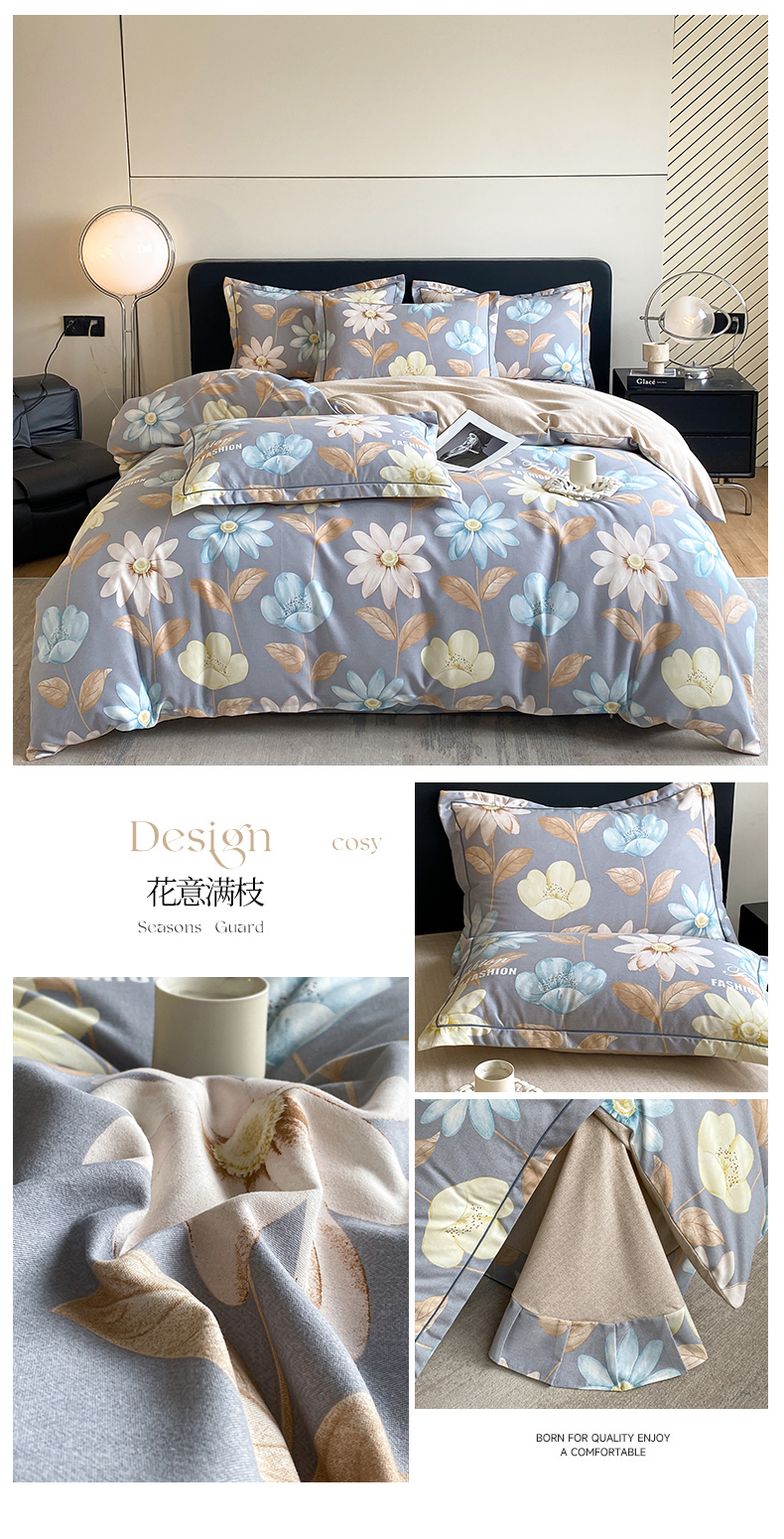 莱通家纺 2024秋冬新款超柔喷气加厚磨毛四件套 花意满枝