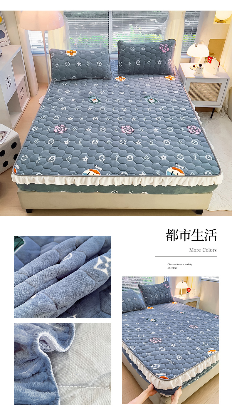 情煊家纺 2024新款保暖牛奶绒夹棉床笠-花边款 都市生活-花边款