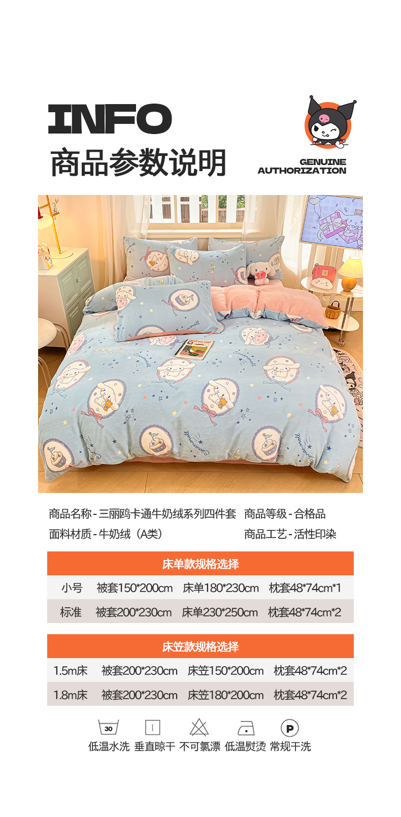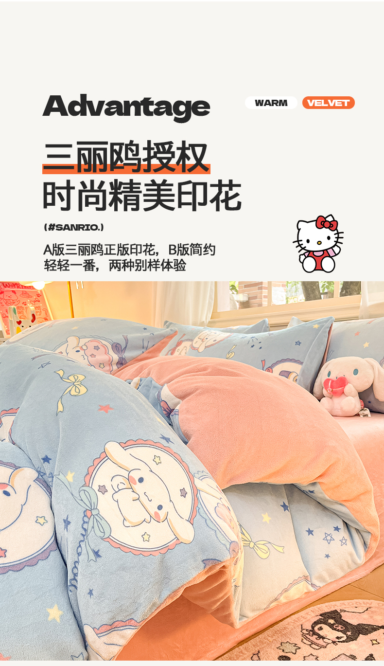 当前位置: 91家纺网 > 商品网购 > 床品套件 > 四件套 > 牛奶绒四件套 > 桃子家居 2024新款三丽鸥卡通加厚高克重200克牛奶绒系列四件套 绒三丽鸥-星星玉桂狗