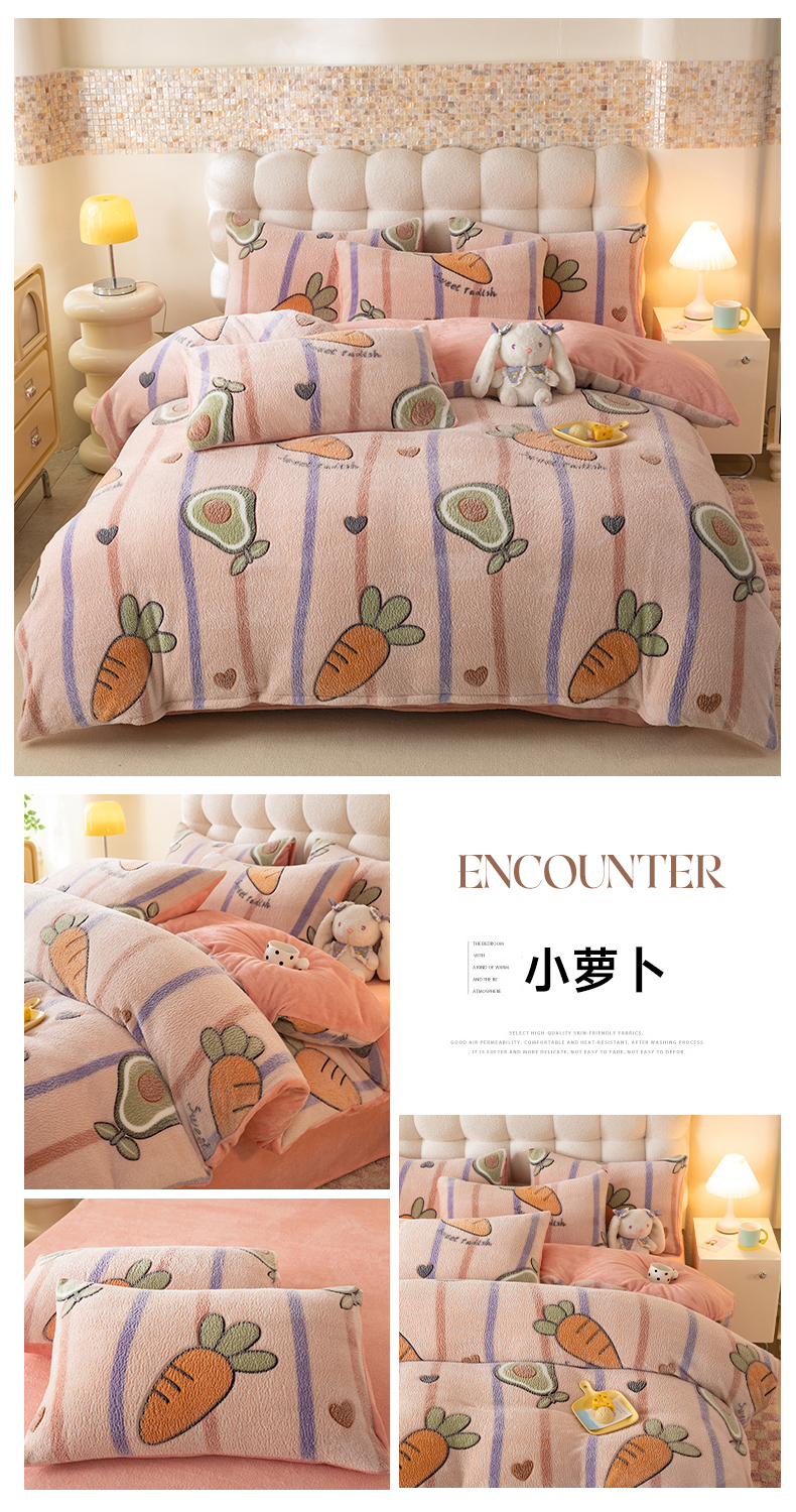 当前位置: 91家纺网 > 商品网购 > 床品套件 > 四件套 > 其它四件套 > 慕梵家居 2024新款雪花绒卡通四件套 小萝卜