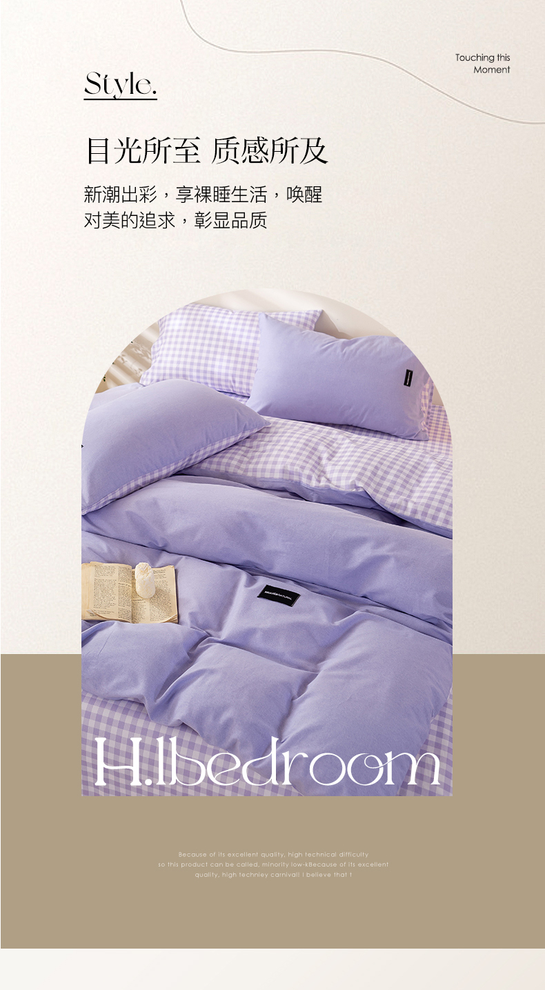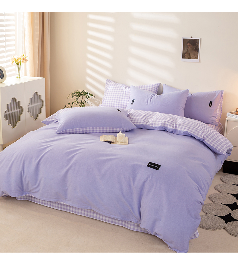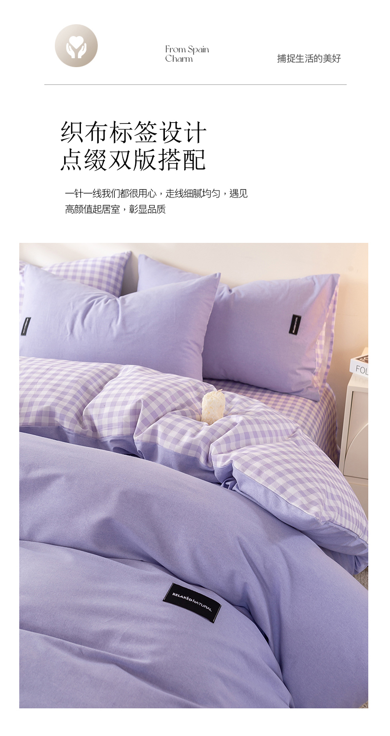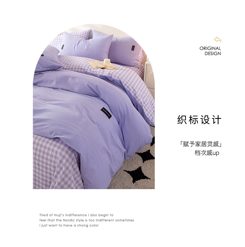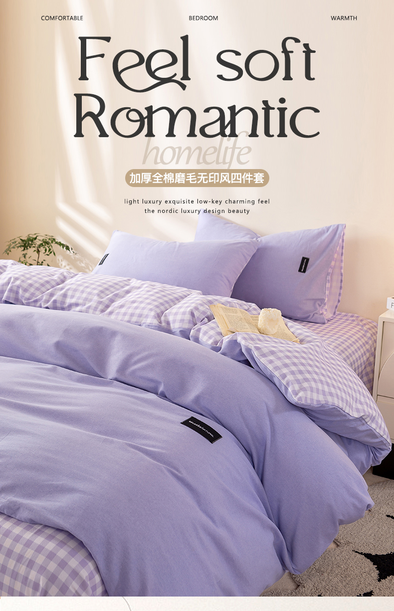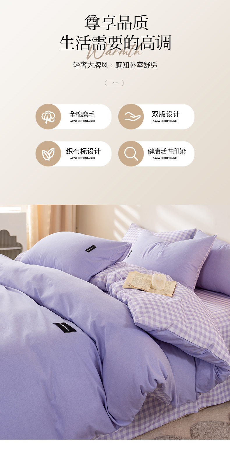 卧趣家纺 2024秋冬新品全棉磨毛贴标款四件套简约无印风系列风格一 简兮-紫
