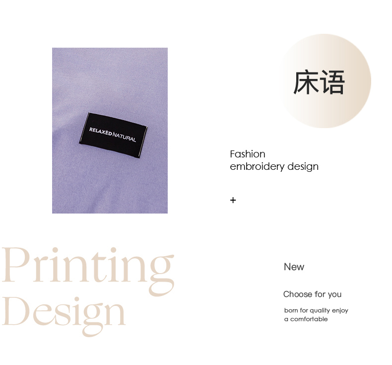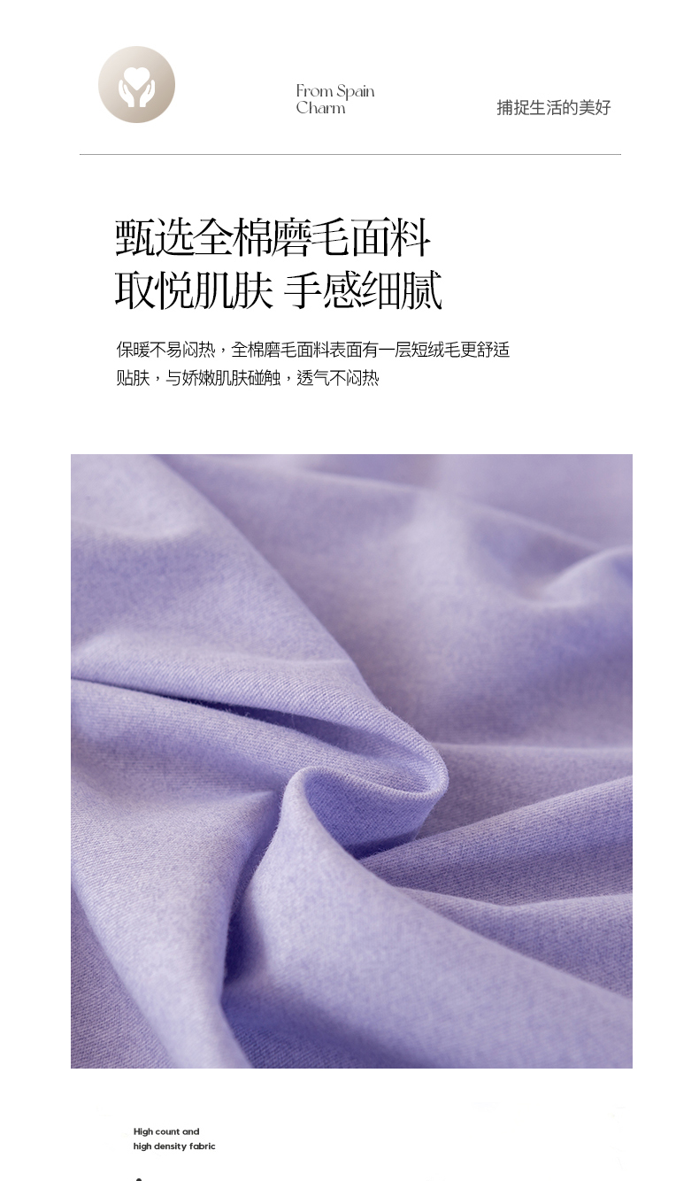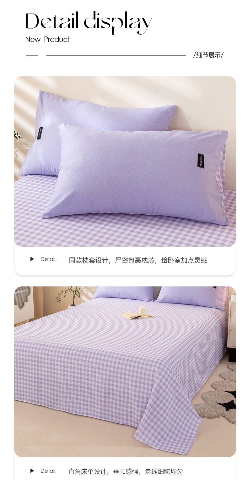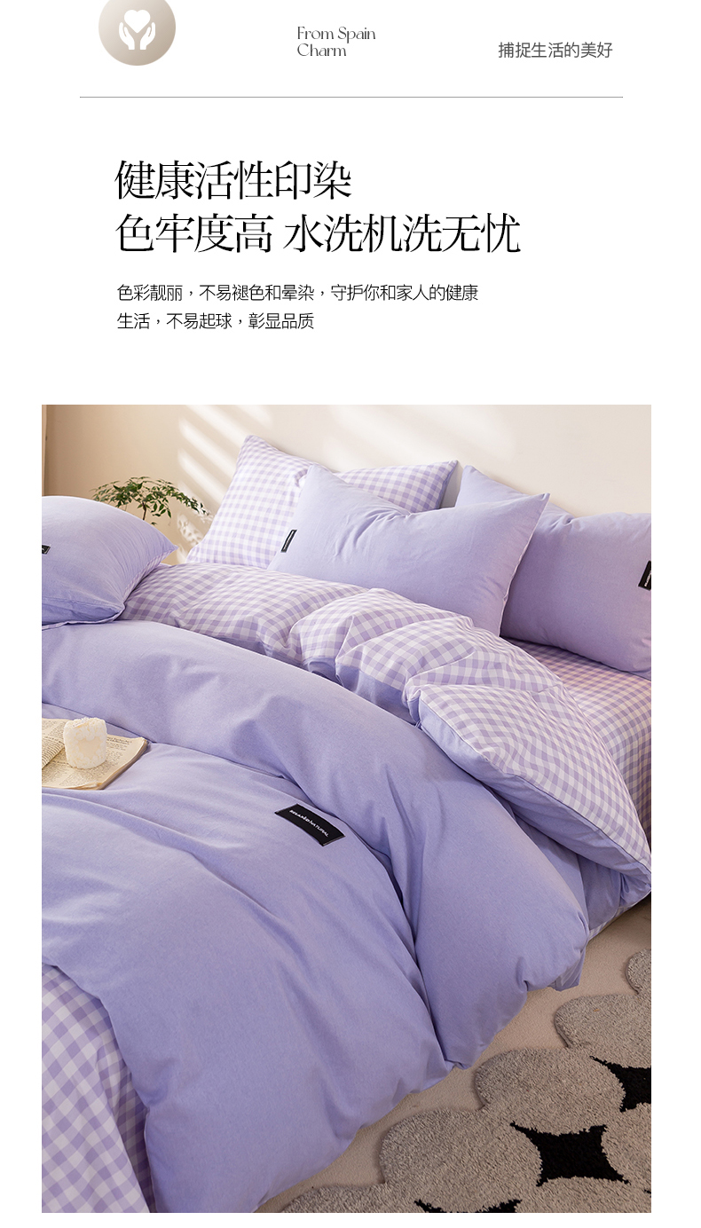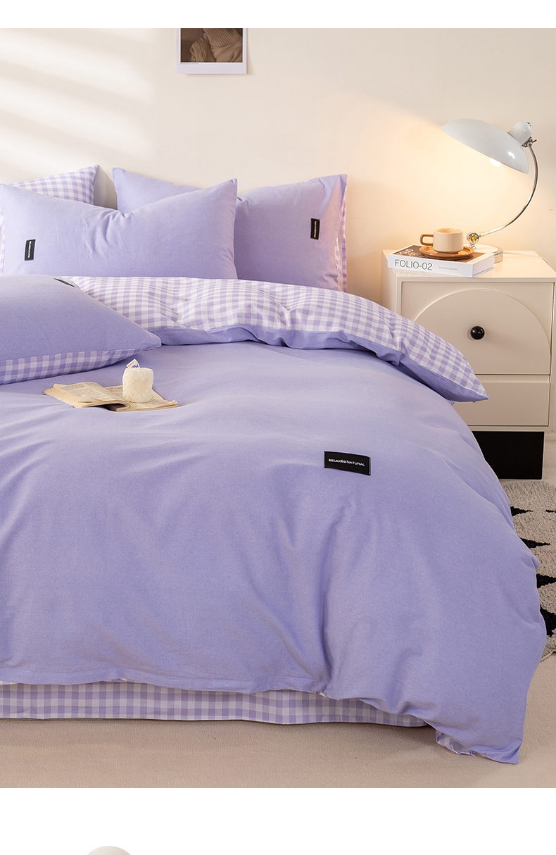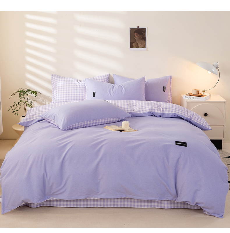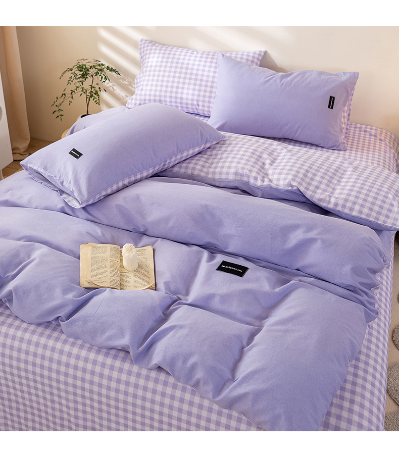卧趣家纺 2024秋冬新品全棉磨毛贴标款四件套简约无印风系列风格一 简兮-紫