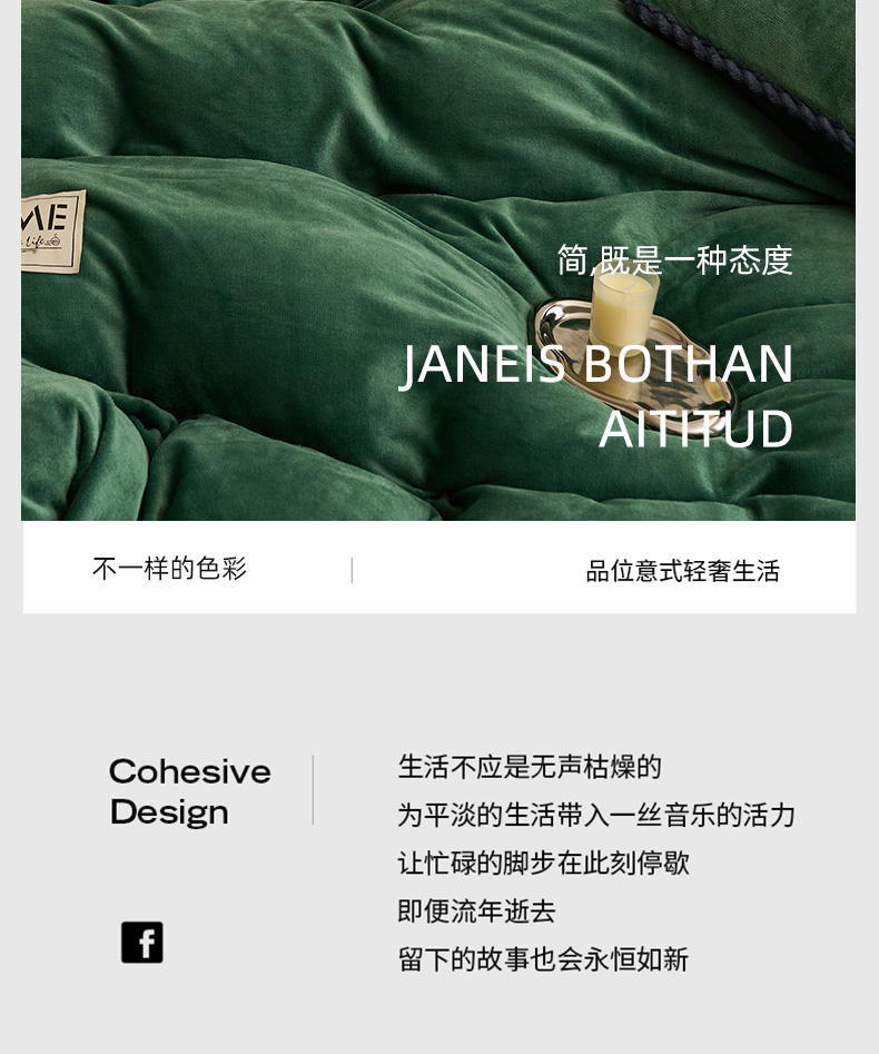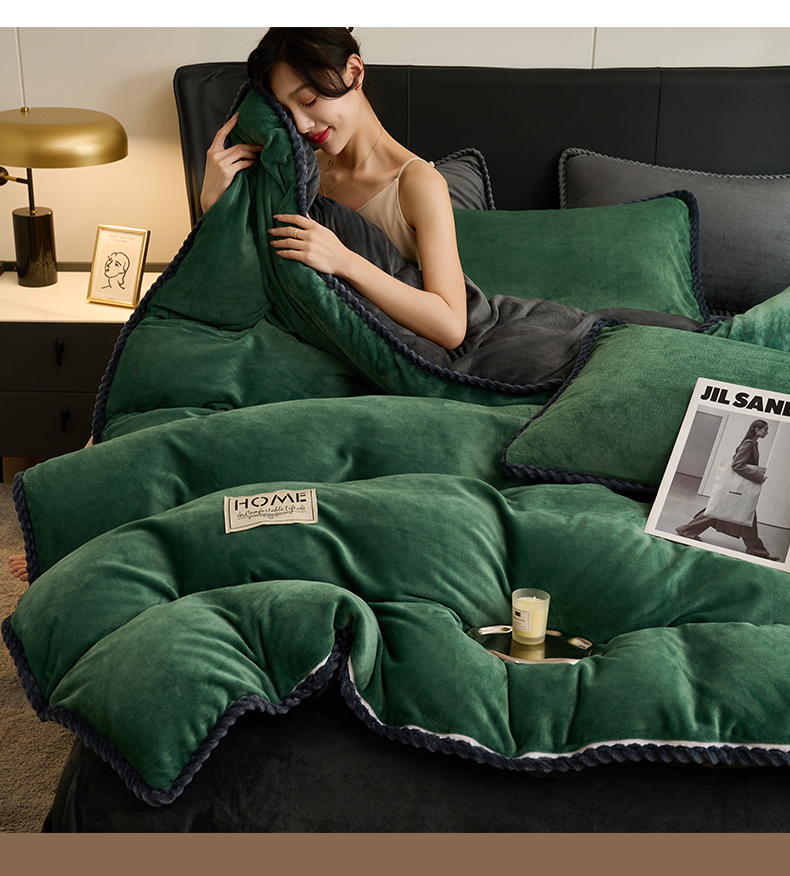 商品名称:闲鱼家纺 2025新款高克重牛奶绒四件套水晶绒金貂法莱绒臻绒欧式包边系列(新拍图)-单被套 墨绿