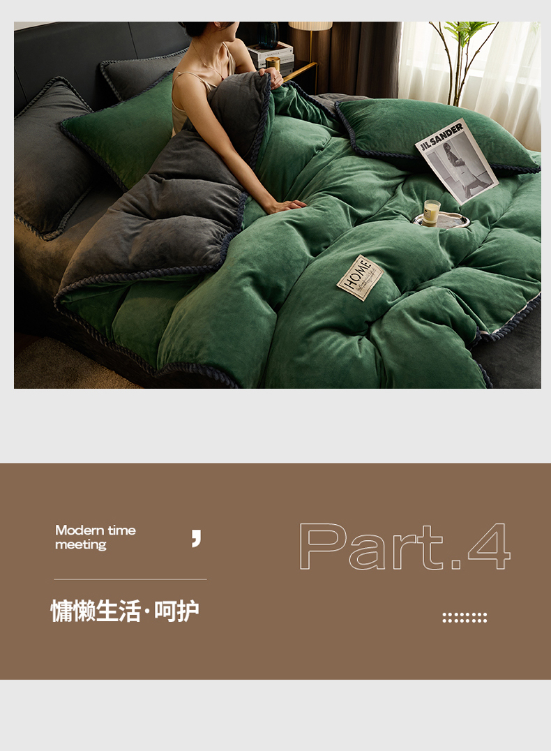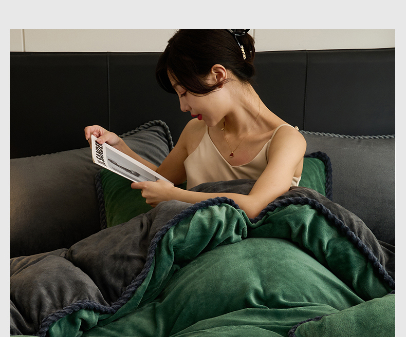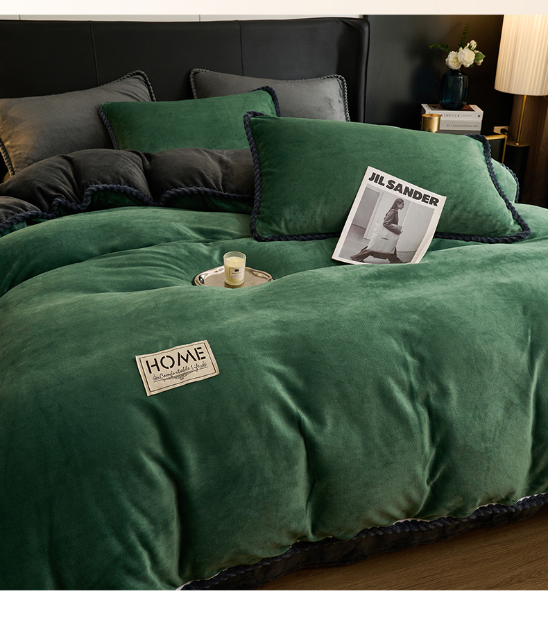 闲鱼家纺 2025新款高克重牛奶绒四件套水晶绒金貂法莱绒臻绒欧式包边系列(新拍图)-单被套 墨绿