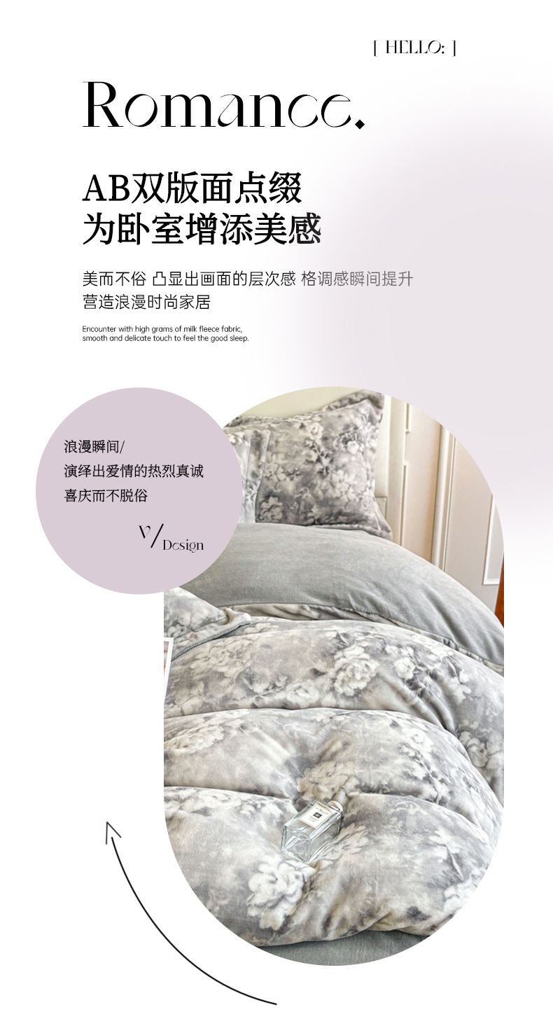 (总)菡宝2025新款工艺款贝壳边雕花绒简约良品风牛奶绒四件套-梵西系列 支持定做定制尺寸,梵西灰,梵西紫,米娅灰,米娅粉,洛璃灰,洛璃紫