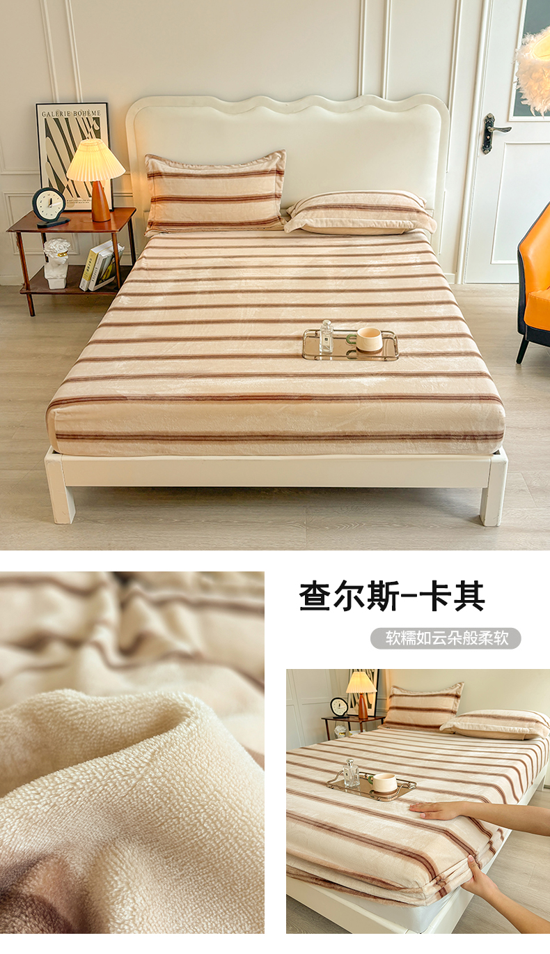 商品名称:菡宝 2024新款8斤240g全消光牛奶绒系列单床笠 查尔斯-卡其