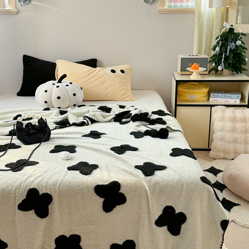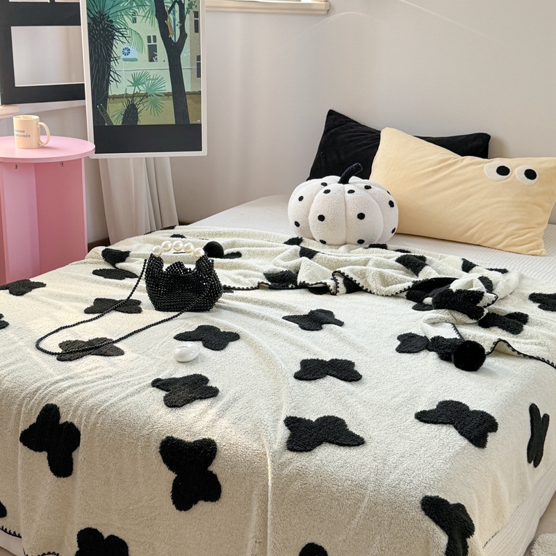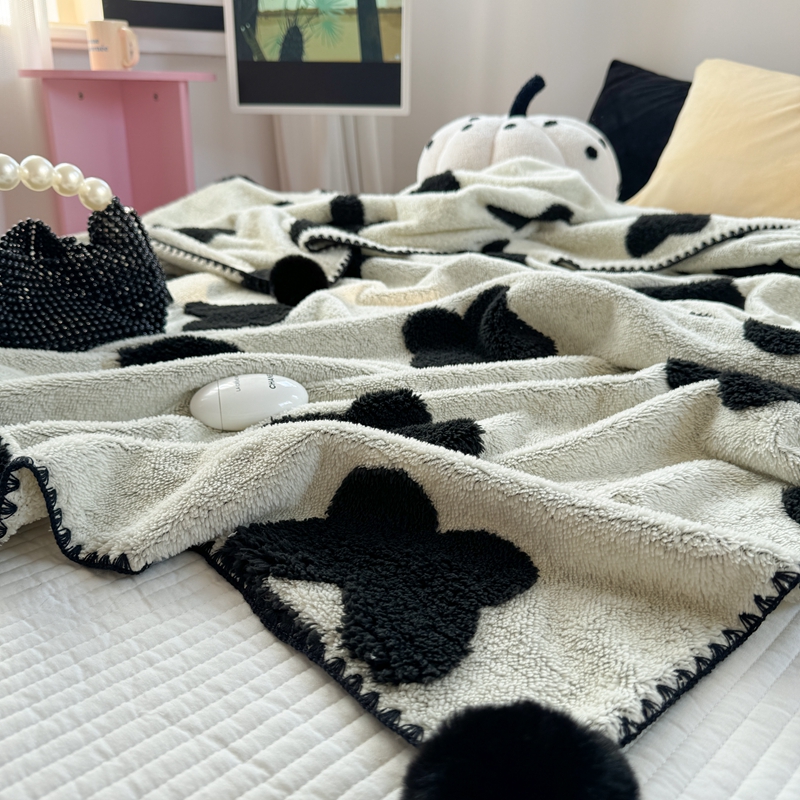 柚子YOUTH 2024新款毛球款云柔提花双面毯 米色蝴蝶