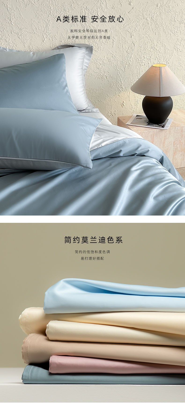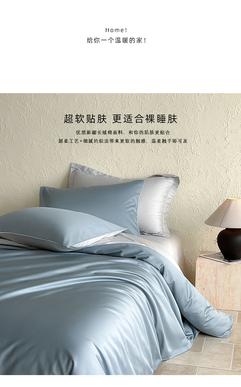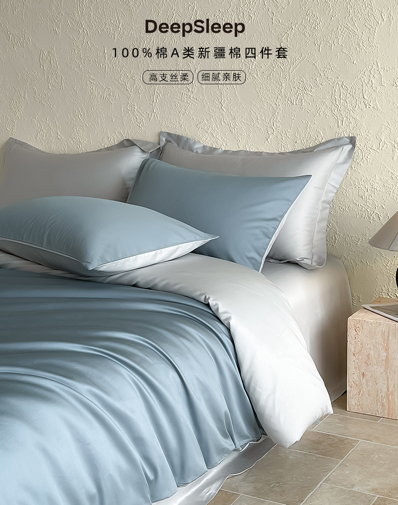 商品名称:猪先生 2024新款A类全棉高支高密纯棉单被套 清澈蓝+藕灰