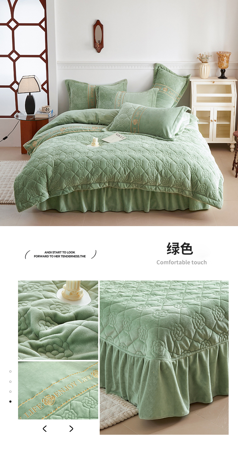 商品名称:舒梦琪家纺 2024新款加厚牛奶绒夹棉绣床盖四件套 绿色