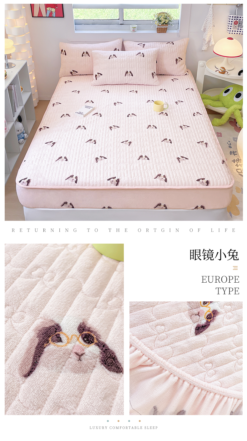 Sweet dreams甜梦 2024新款牛奶绒蝴蝶结印花夹棉床笠 眼镜小兔