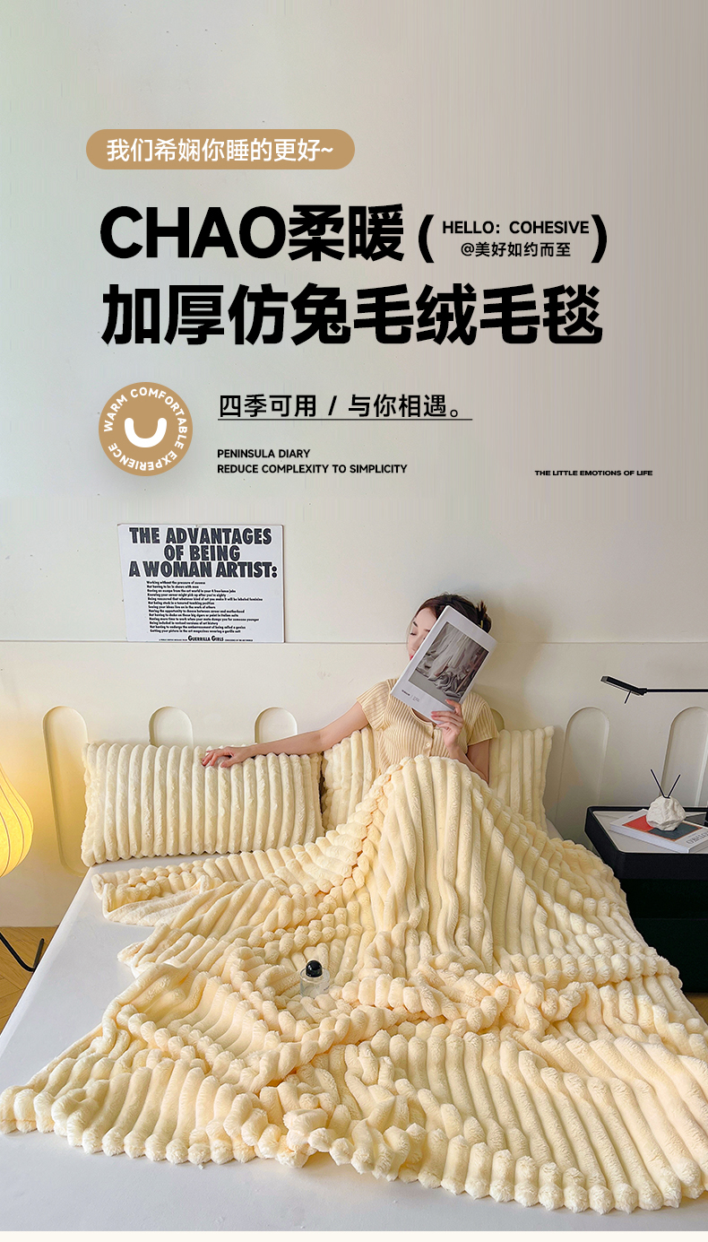 (总)寐居家纺 2024新款泡泡兔毛绒午睡毯毛毯盖毯