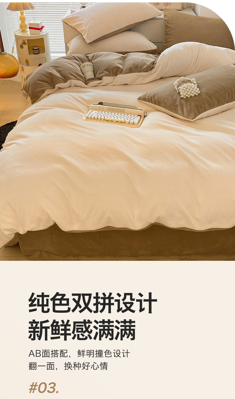 当前位置: 91家纺网 > 商品网购 > 床品套件 > 四件套 > 牛奶绒四件套 > 857家居 2024新款A类牛奶绒纯色双拼四件套 巧克力奶昔